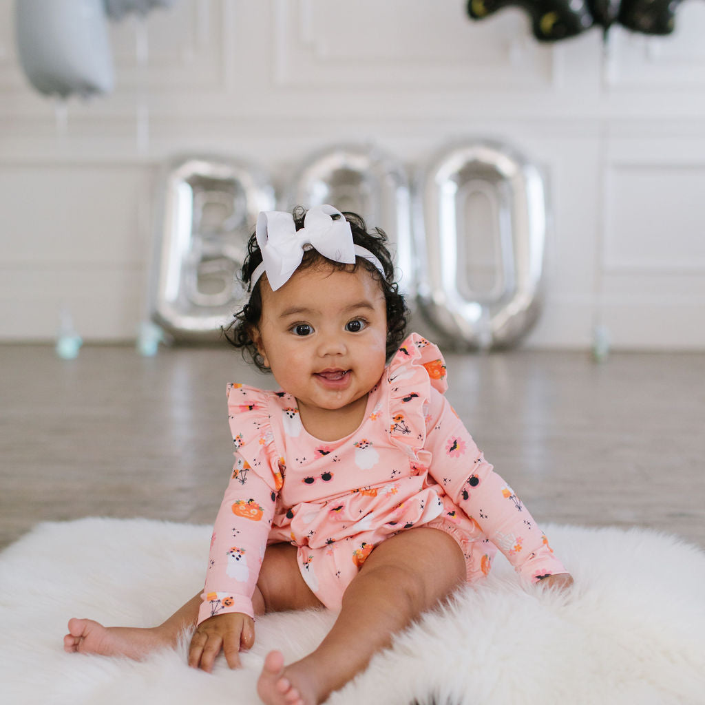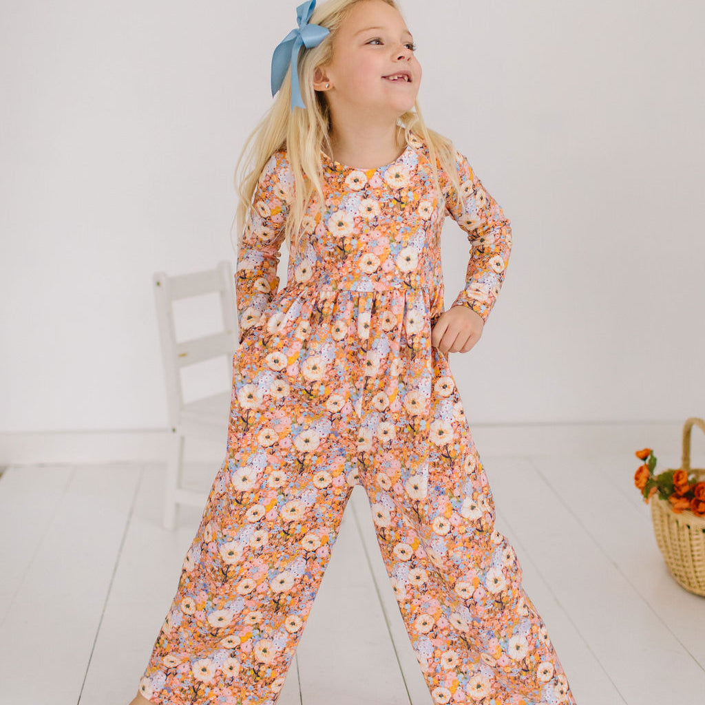 Long Sleeve Leggy Romper in Pumpkin Bouquet