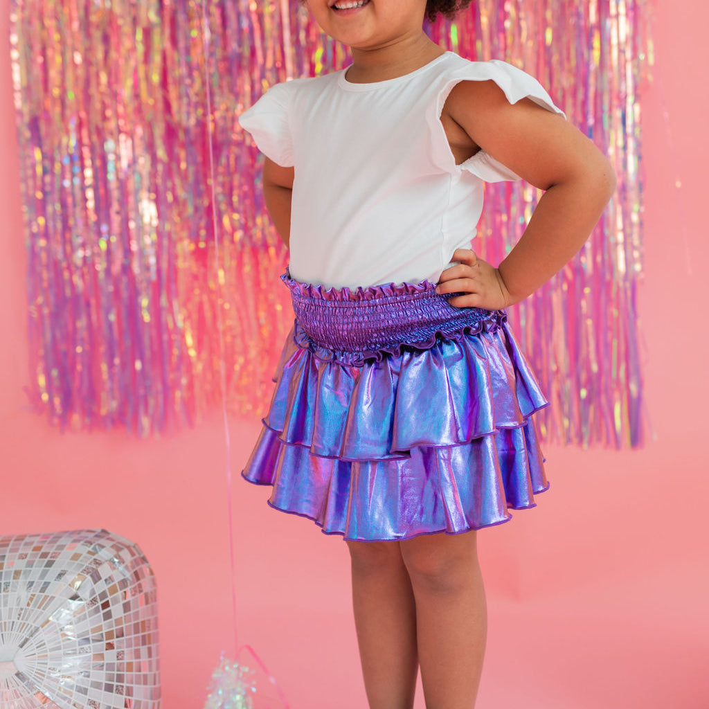 Ruffle Skort in Purple Lamè