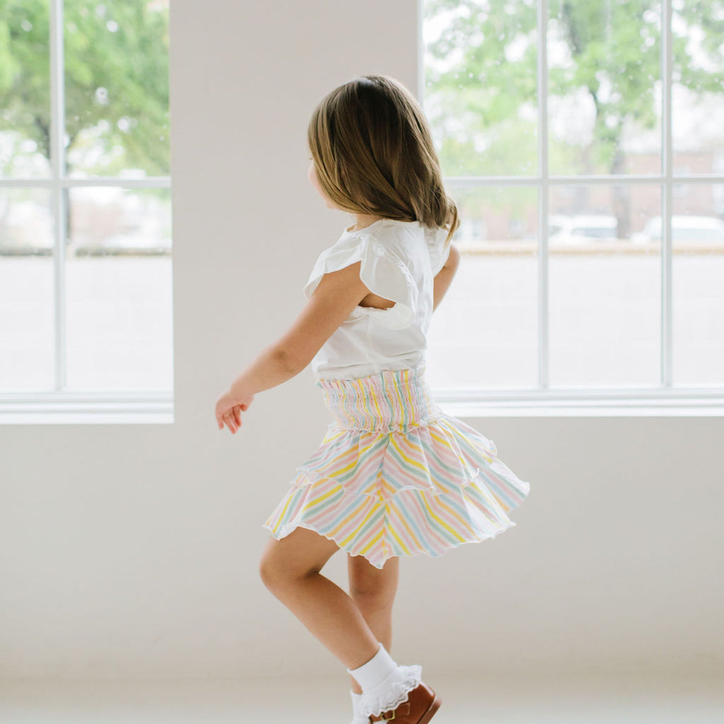 Ruffle Skort in Pastel Stripe