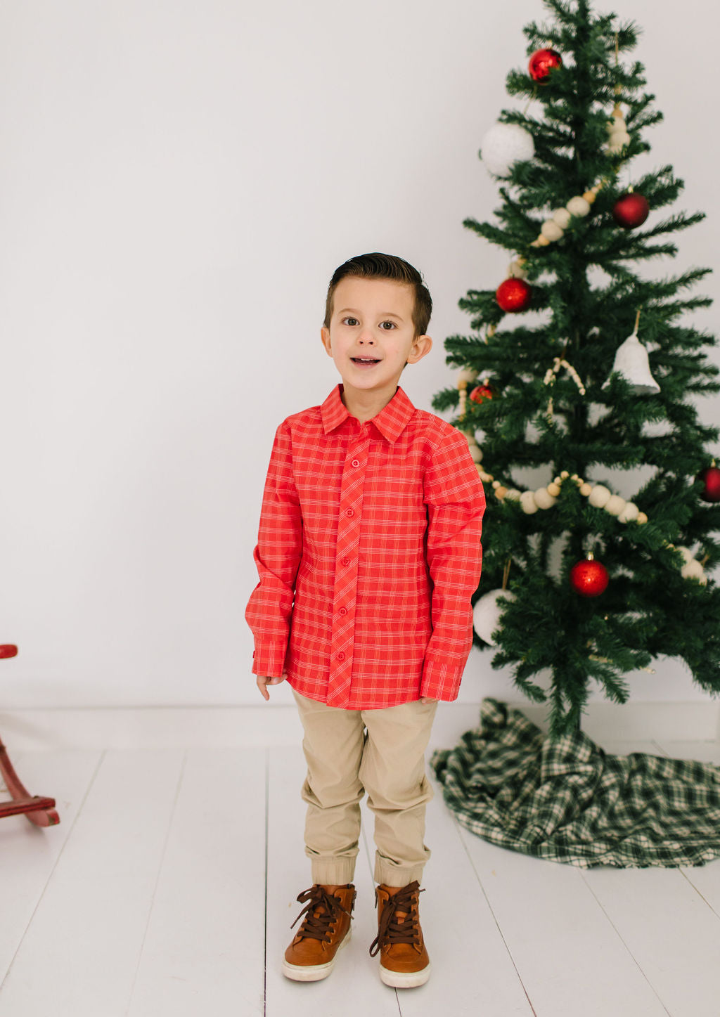 Boys Button Down in Red Picnic Plaid