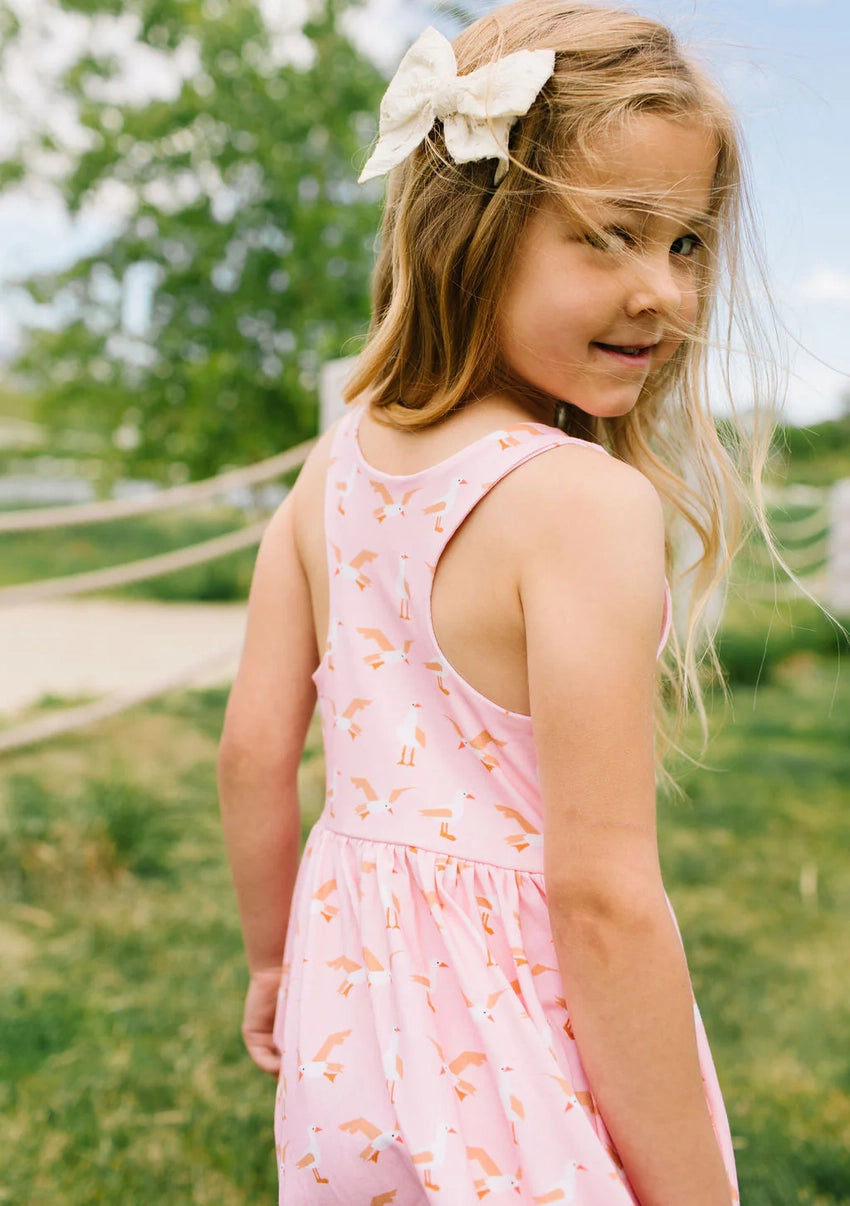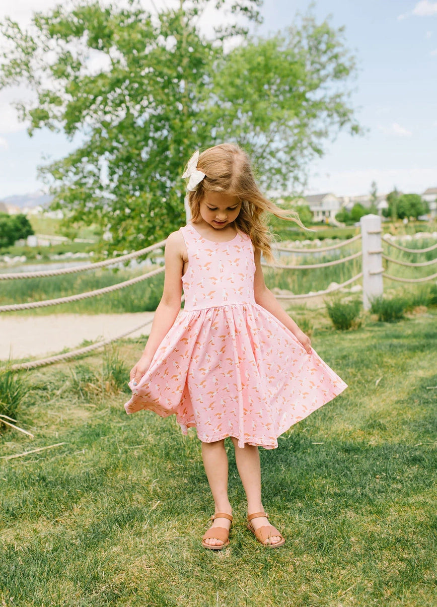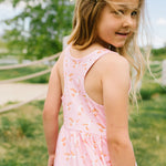 The Charlotte Dress puts a playful spin on our classic ballet-inspired twirl dress with a sporty racerback design, perfect for sunny days and endless play. Made from extra soft and stretchy fabric, it features a double-lined bodice, handy side seam pockets, and a full circle skirt that delivers all the twirling fun we’re known for.