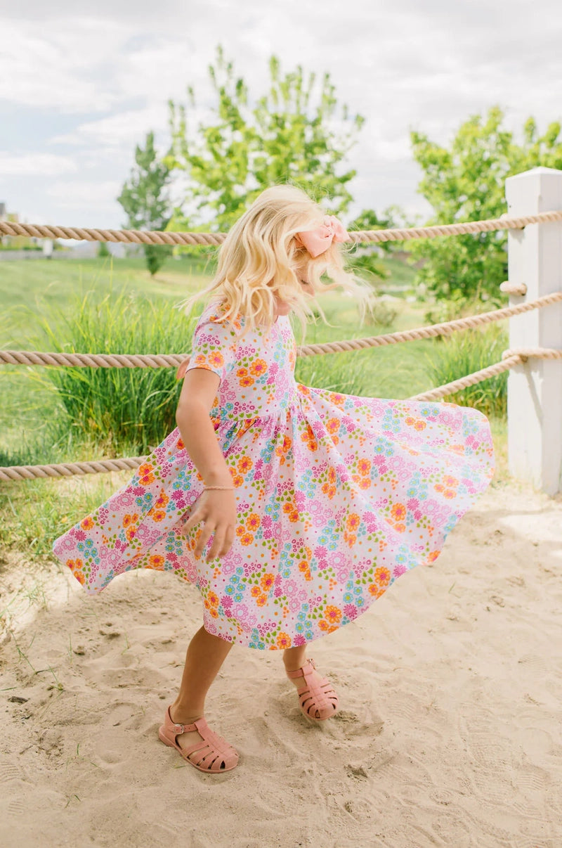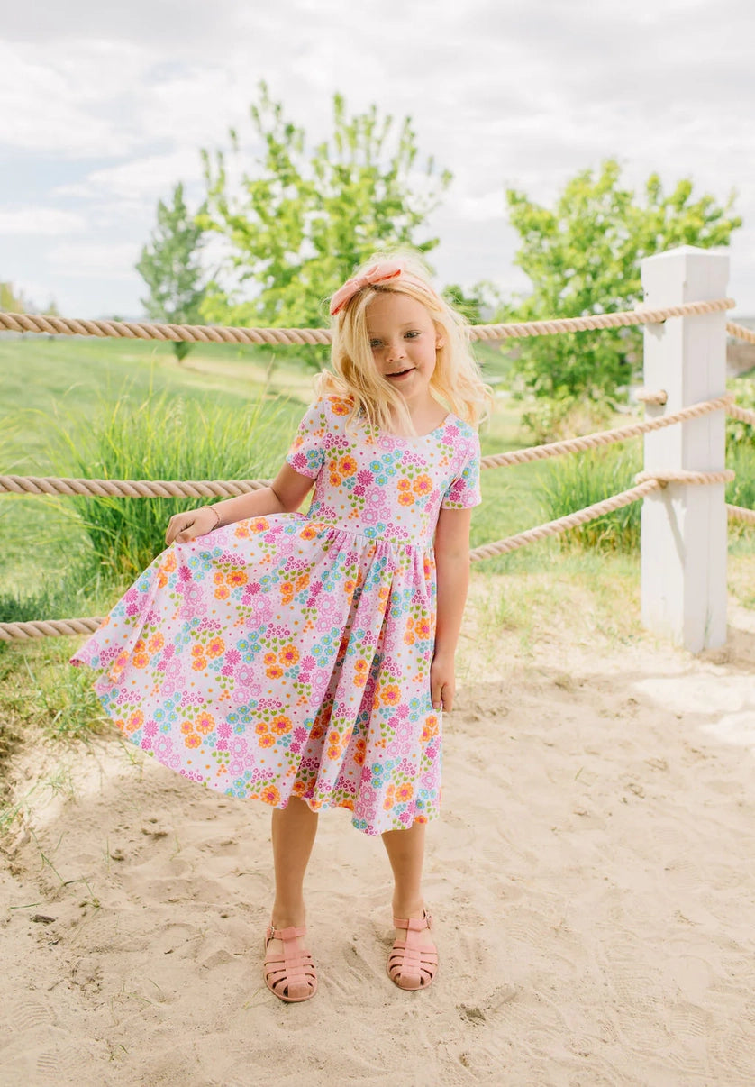 Our Classic Twirl Dress is all about timeless charm and everyday fun. Featuring a graceful scoop back, a lined bodice for comfort, and hidden inseam pockets to keep little treasures close, it’s designed for endless play and perfect twirls.