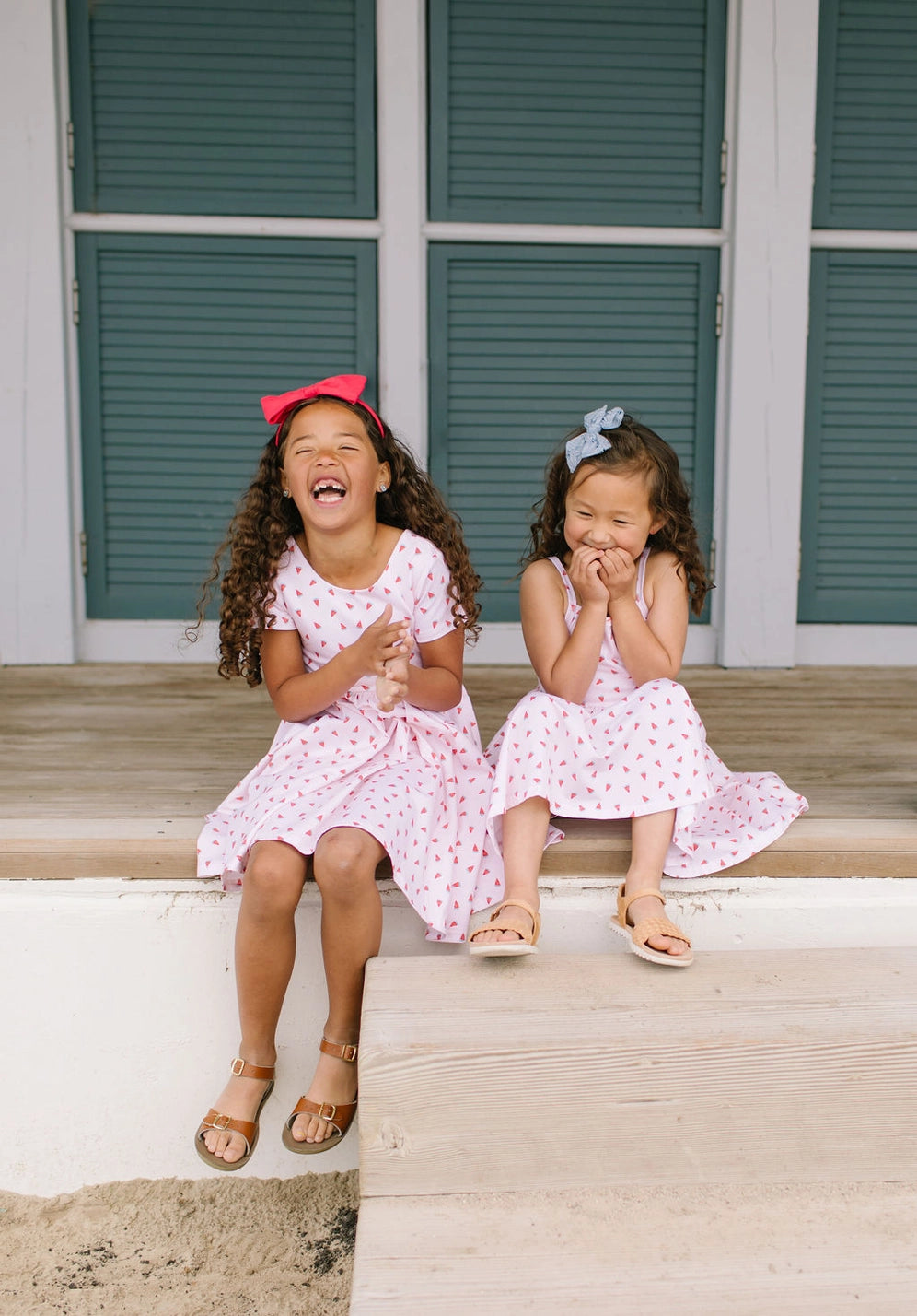 Our Classic Twirl Dress is all about timeless charm and everyday fun. Featuring a graceful scoop back, a lined bodice for comfort, and hidden inseam pockets to keep little treasures close, it’s designed for endless play and perfect twirls.