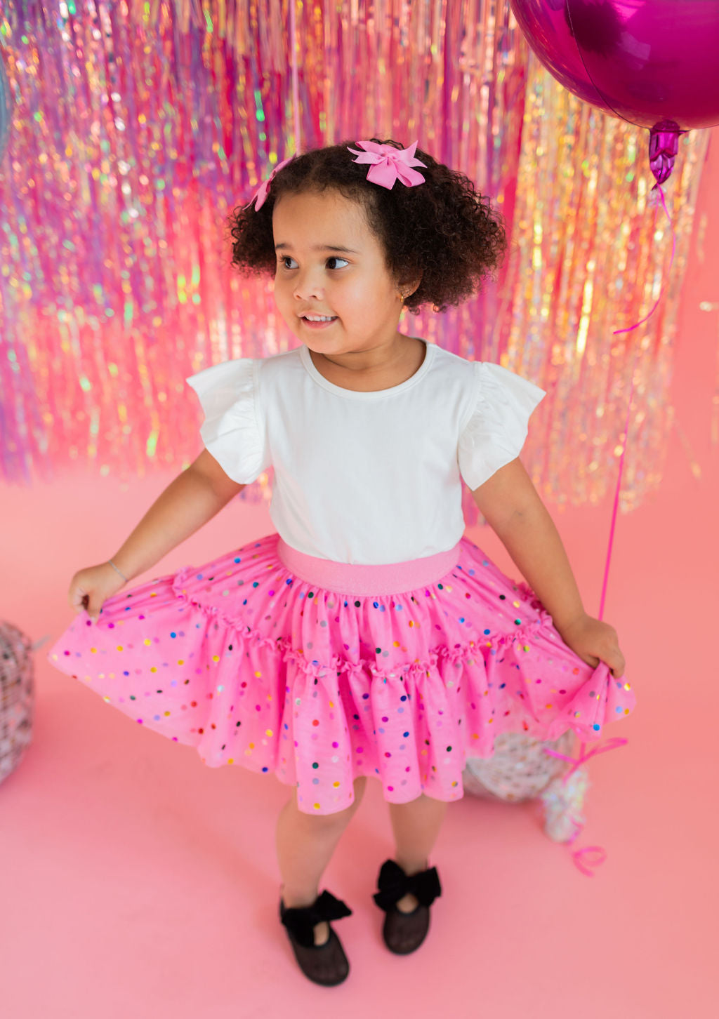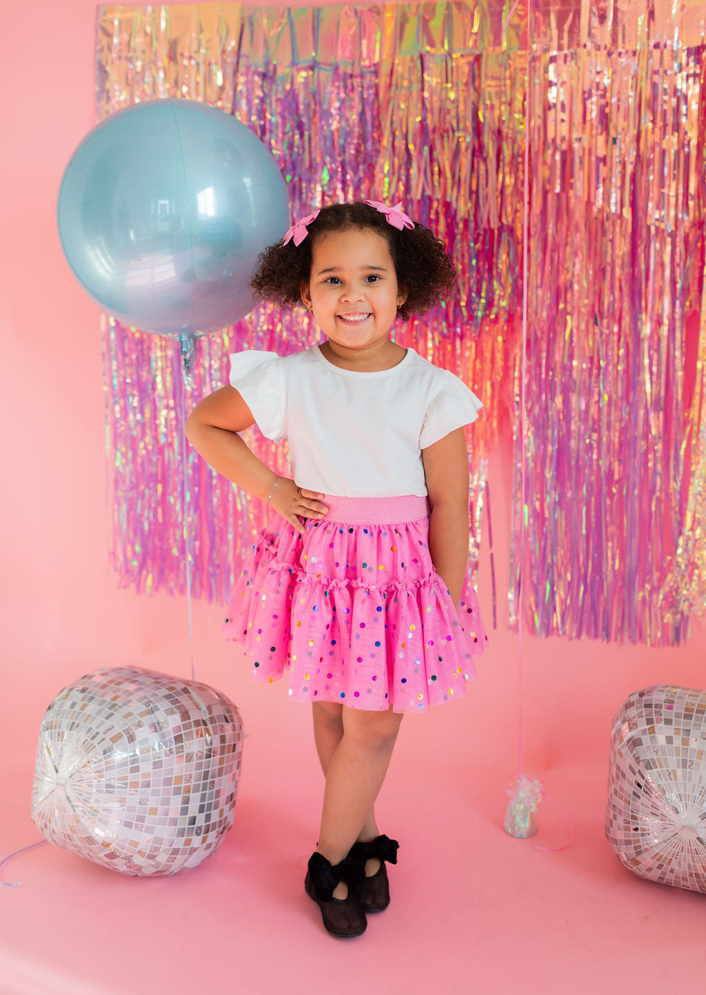 Add a pop of playful color with our Confetti Skirt, featuring a soft polyester lining and a ruffled tulle overlay sprinkled with festive confetti dots. The comfortable elastic waistband makes it easy to wear and perfect for twirling, dancing, or simply celebrating every day.