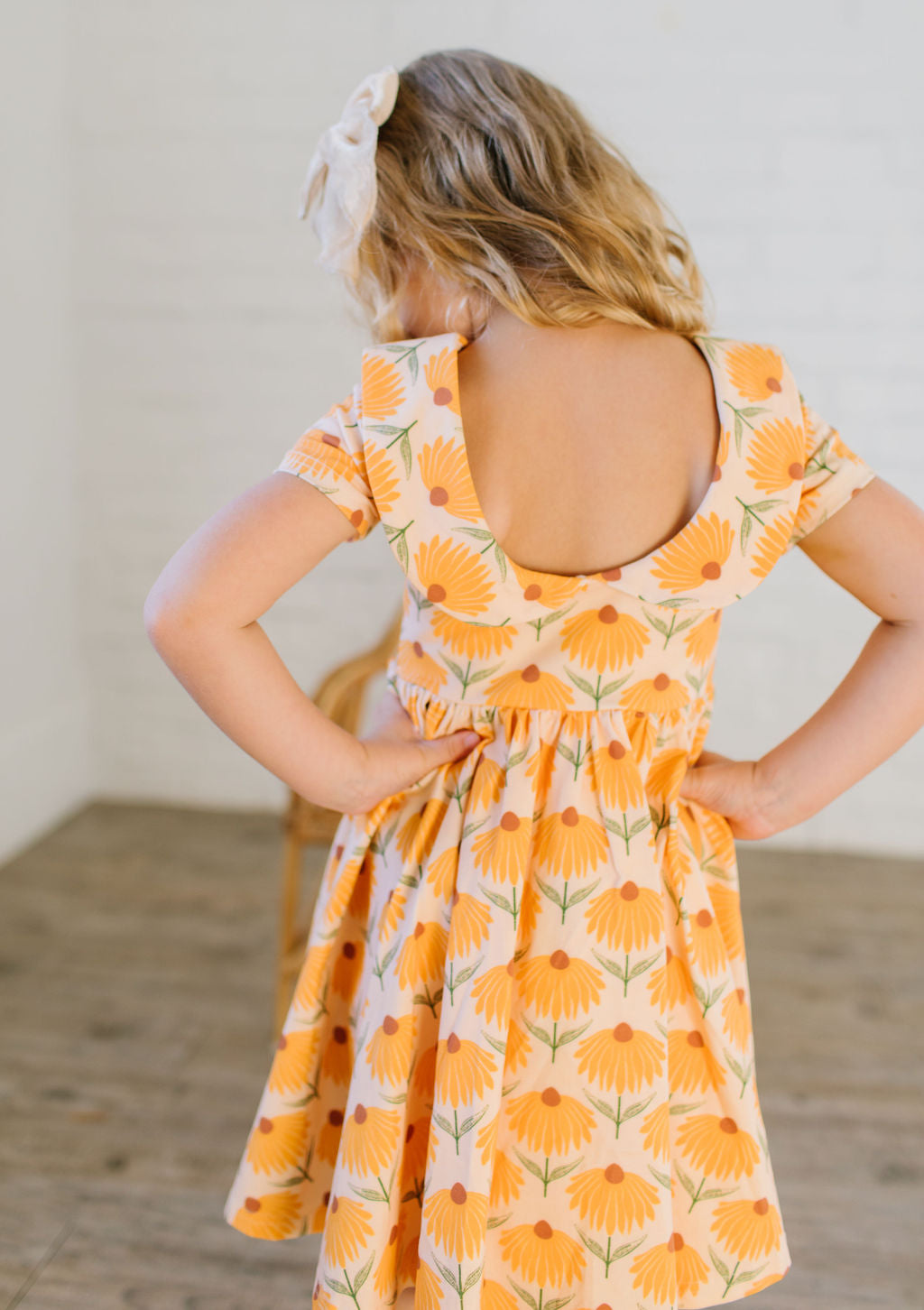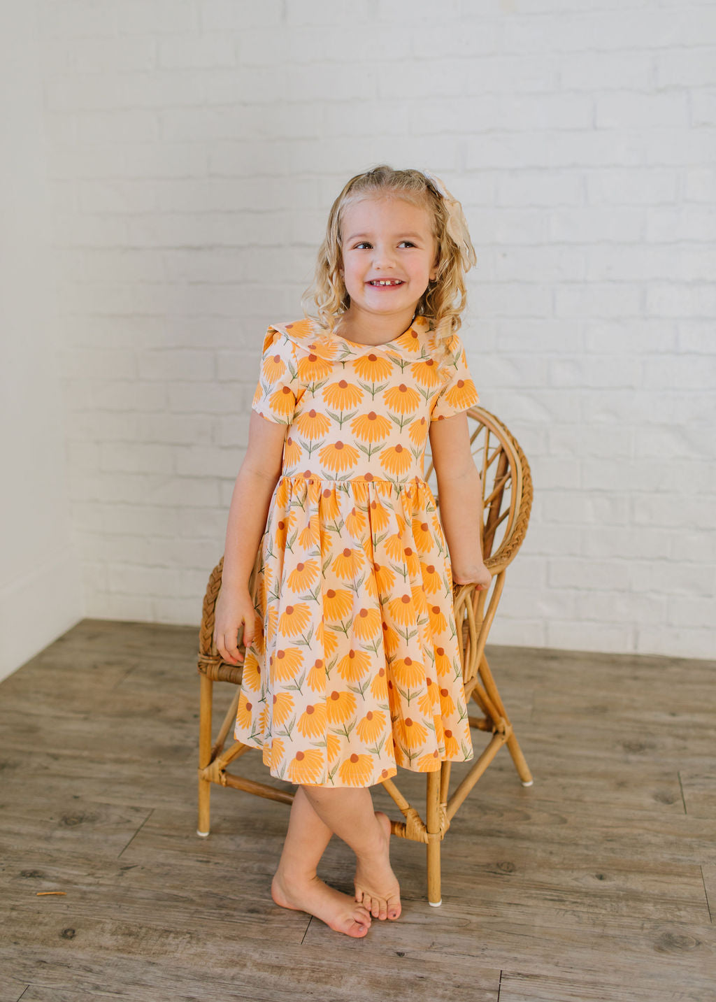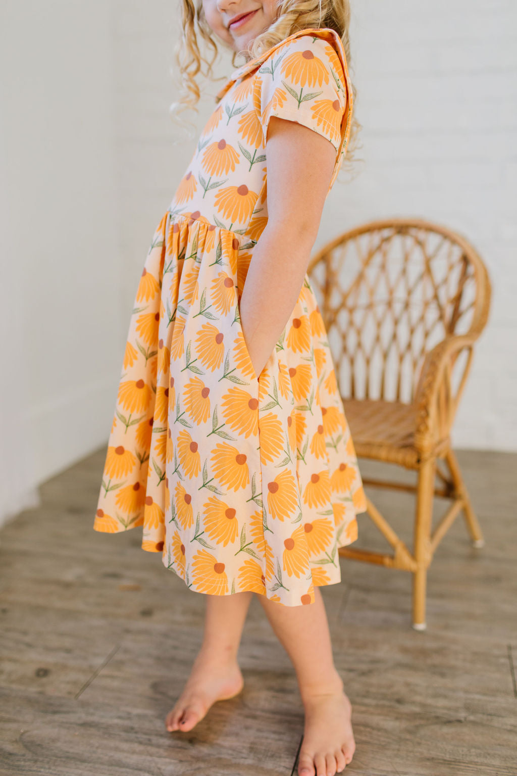 Our Elizabeth Twirl Dress features a timeless, sweet silhouette with a wrap-around collared scoop back, a lined bodice for comfort, and hidden inseam pockets to keep little treasures close. The full circle skirt is designed for the best twirls, perfect for playtime all day long.