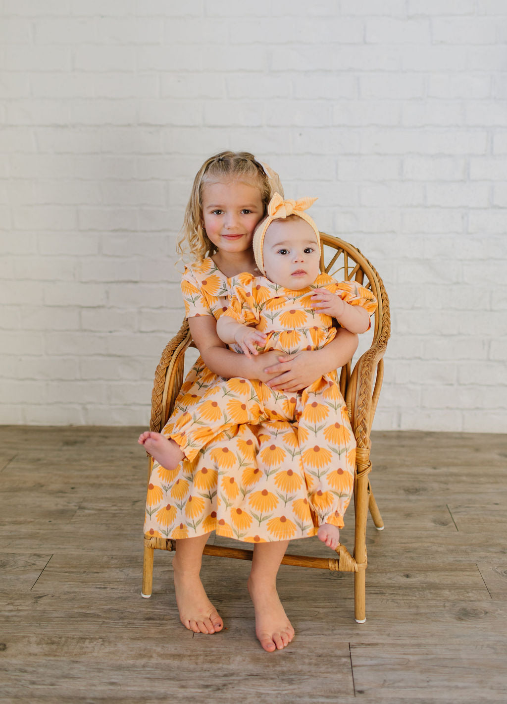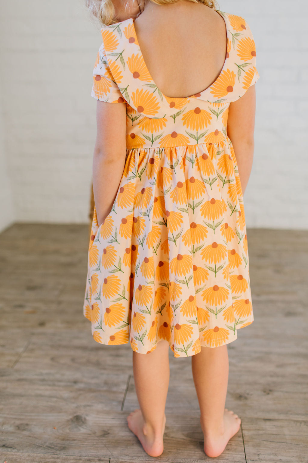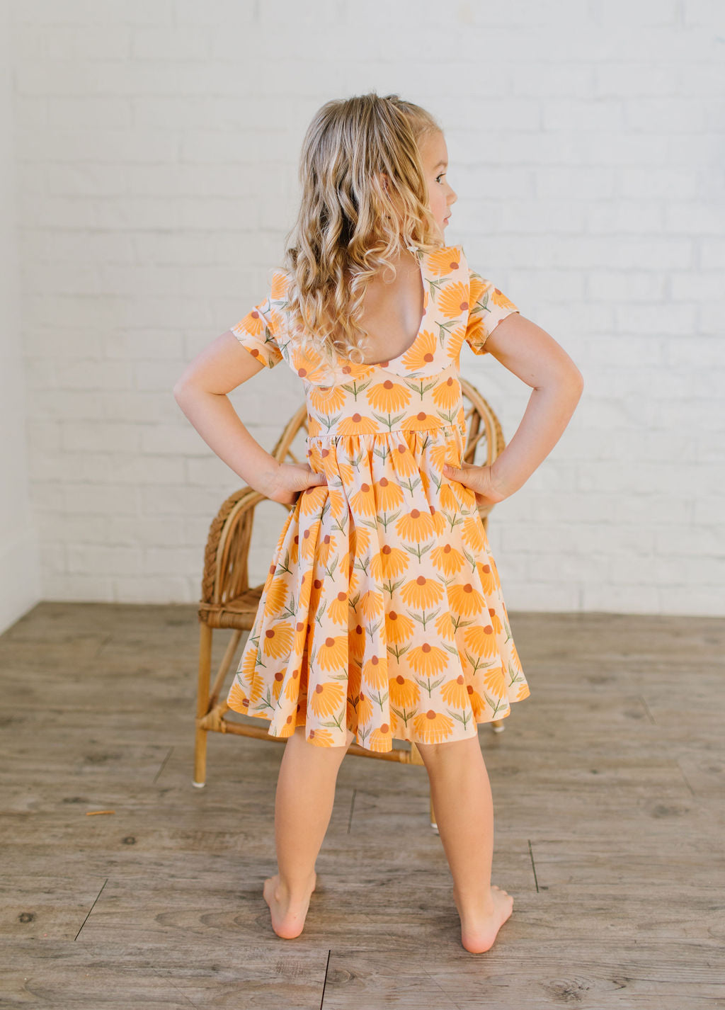 Our Elizabeth Twirl Dress features a timeless, sweet silhouette with a wrap-around collared scoop back, a lined bodice for comfort, and hidden inseam pockets to keep little treasures close. The full circle skirt is designed for the best twirls, perfect for playtime all day long.