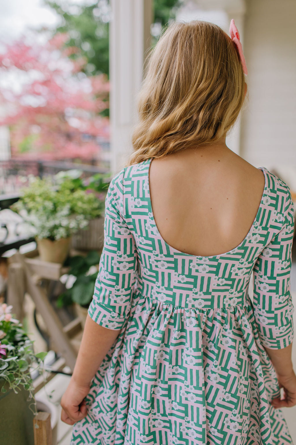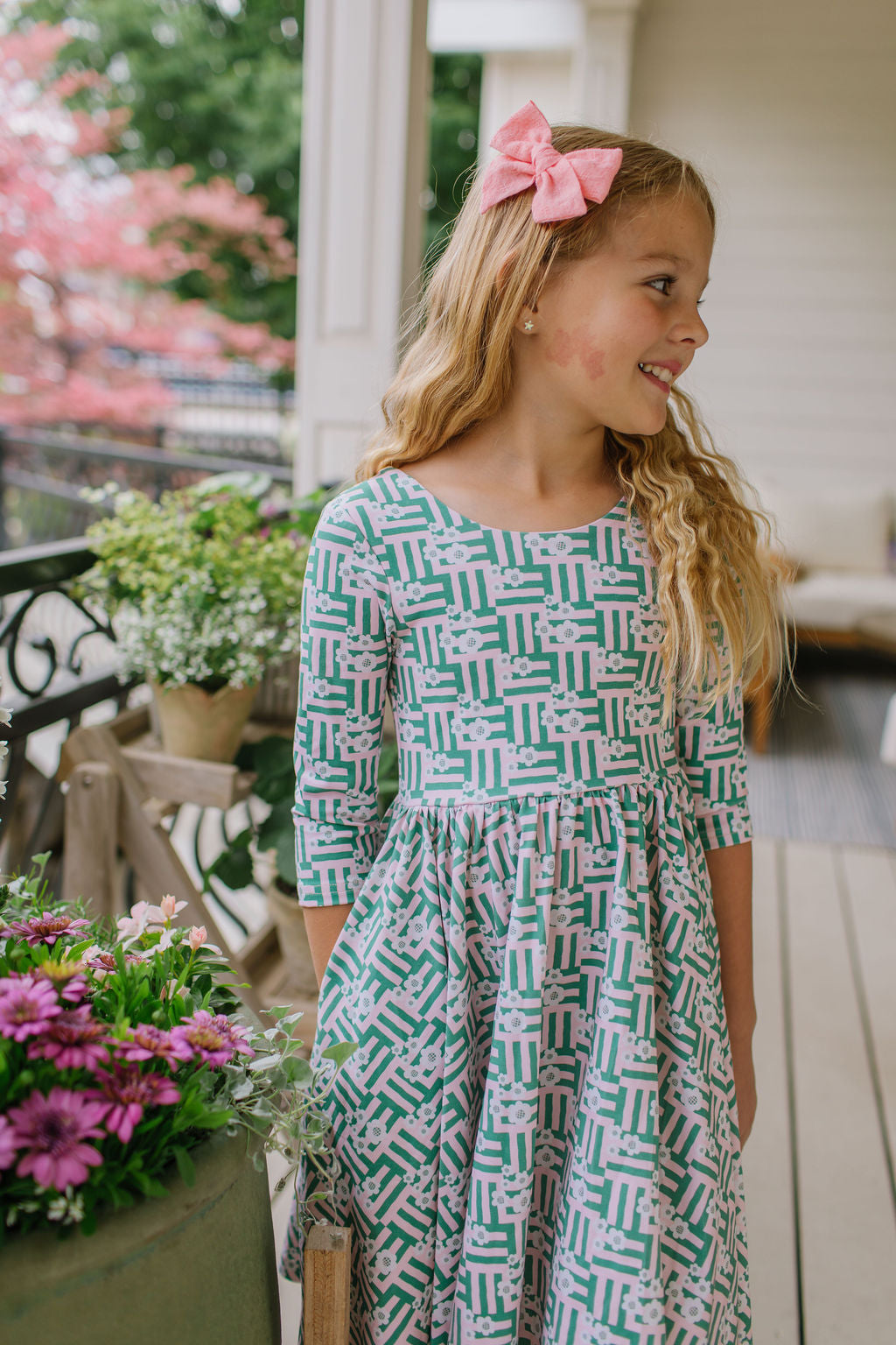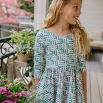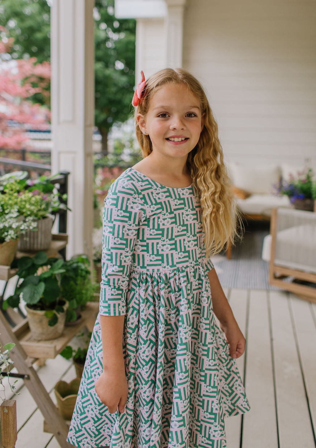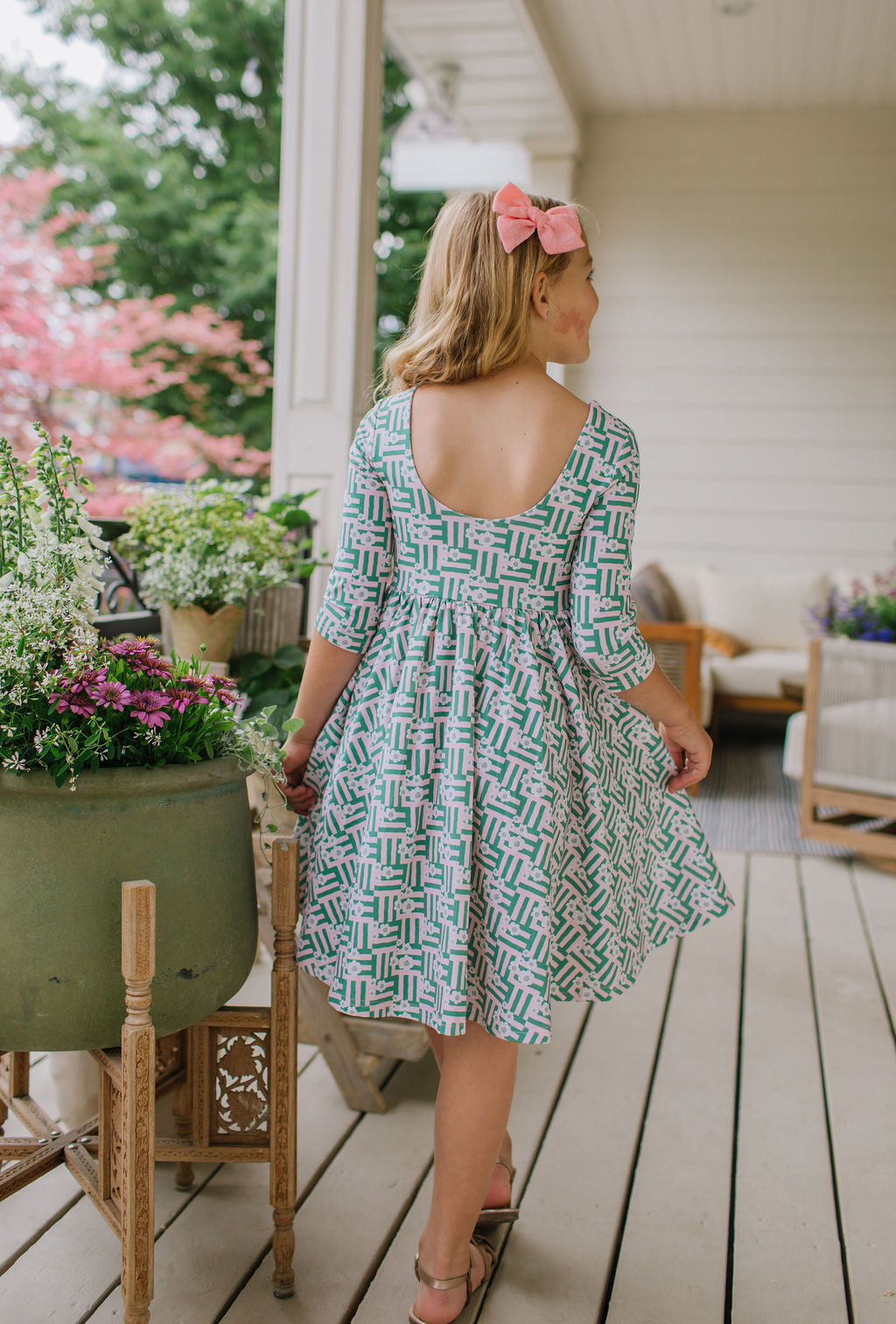 Our Emile Dress combines timeless style with cozy comfort. Featuring 3/4 sleeves, a graceful scoop back, and a full circle twirl skirt, this dress is designed for playful days and special moments alike. Hidden seam pockets add practicality without compromising style.