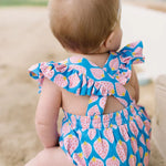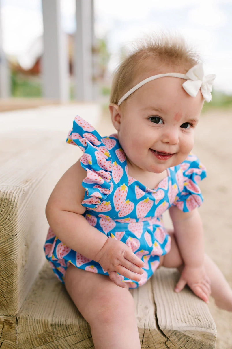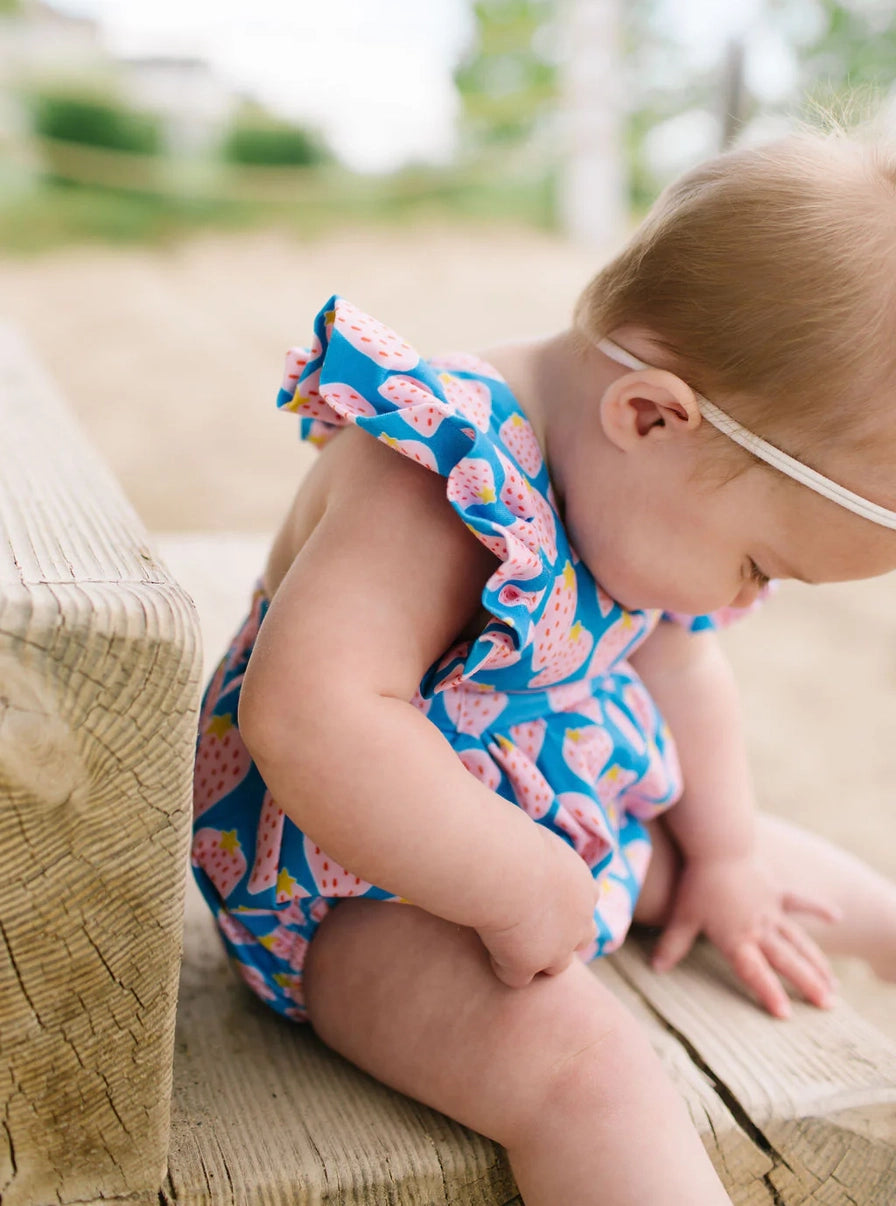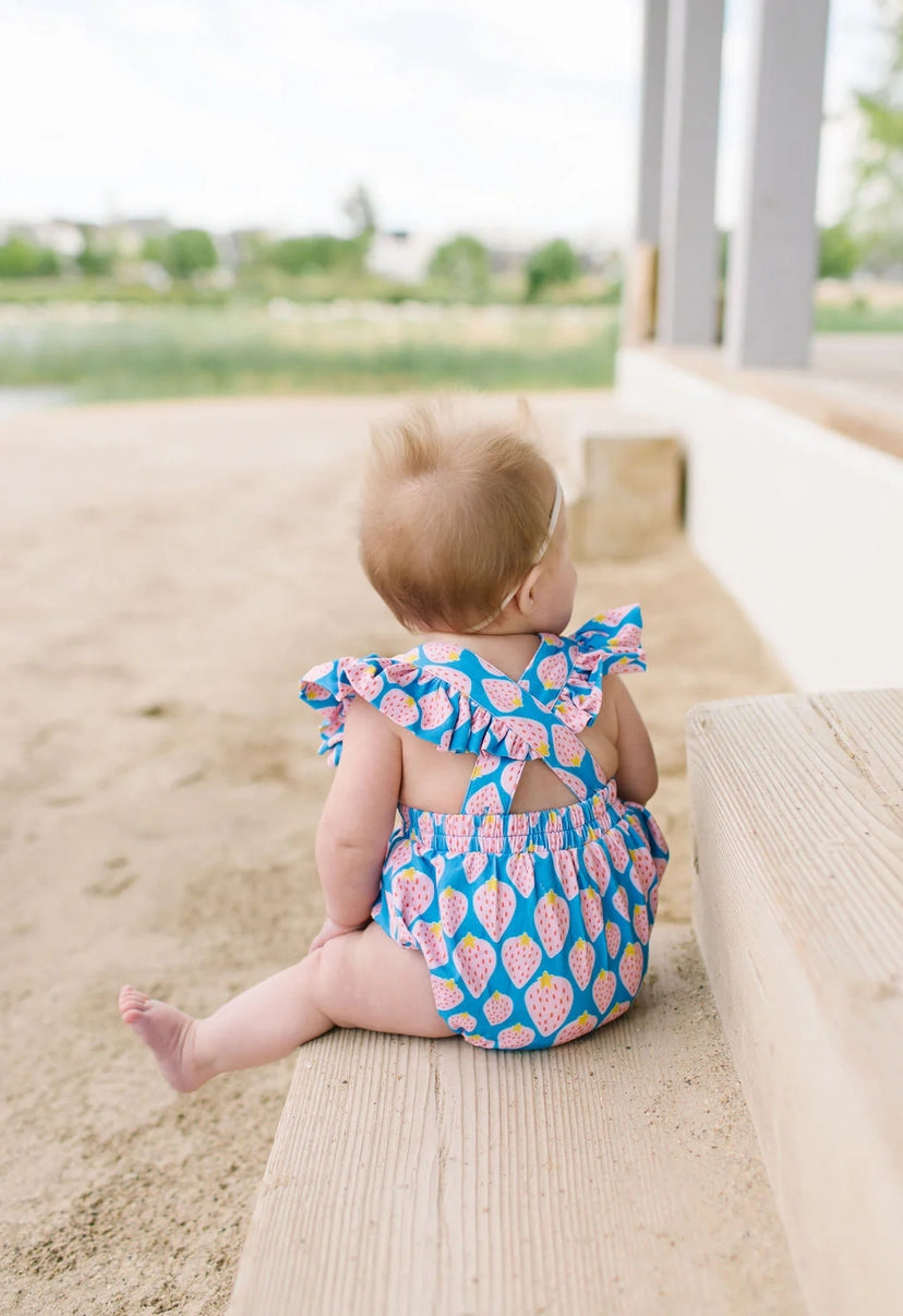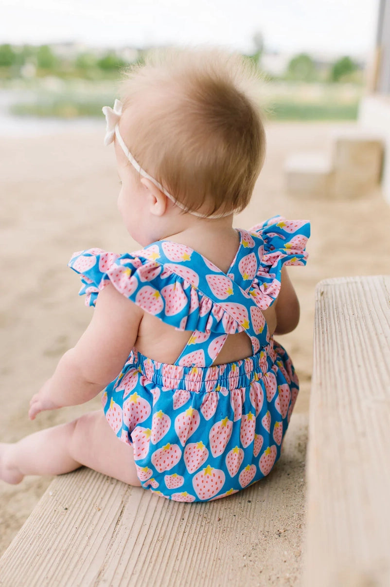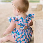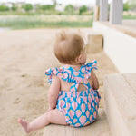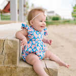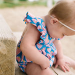 Designed for little movers, the Emmy Bubble combines comfort and style with its super soft, stretchy fabric that moves with your child. Delightful ruffled details adorn the shoulders and cascade down the back, adding a sweet touch. Plus, adjustable straps ensure a perfect fit as they grow.