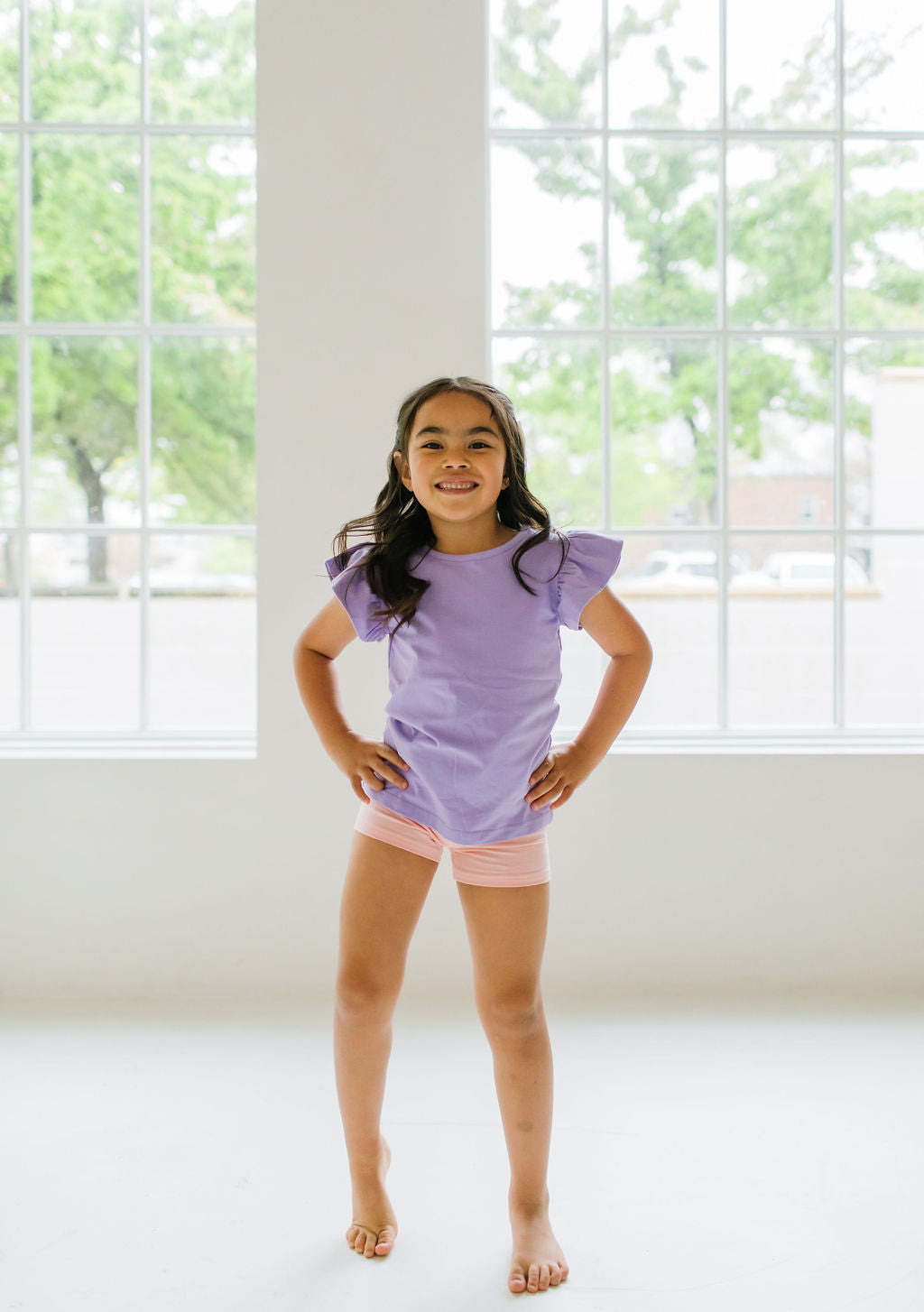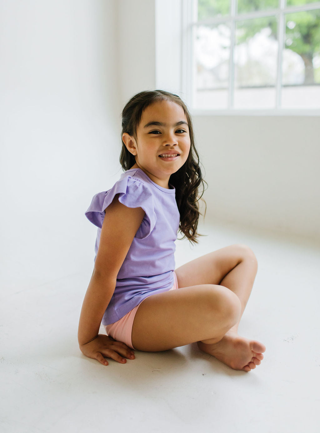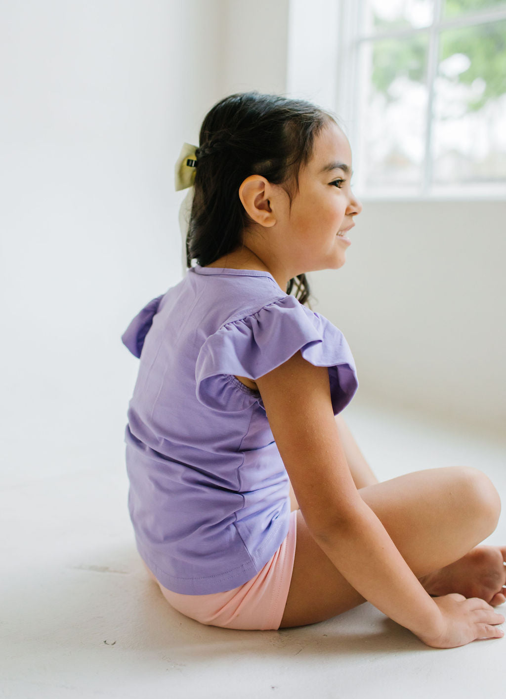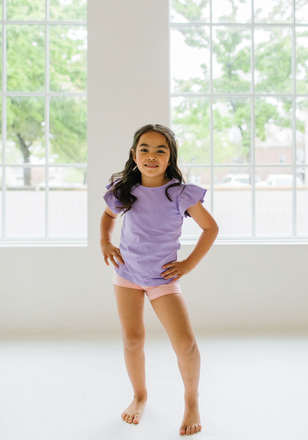 Our Flutter Tee brings a fresh twist to the classic silhouette with its delicate flutter sleeves and comfortable wide neck opening. Crafted from the softest blend of 95% premium jersey cotton and 5% spandex, this tee offers unbeatable comfort that your little one will love to wear again and again.