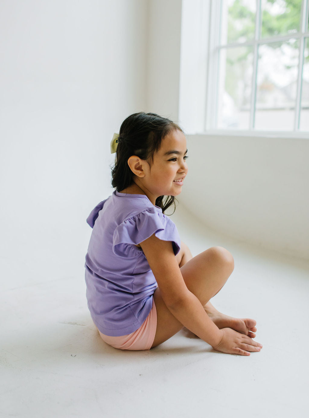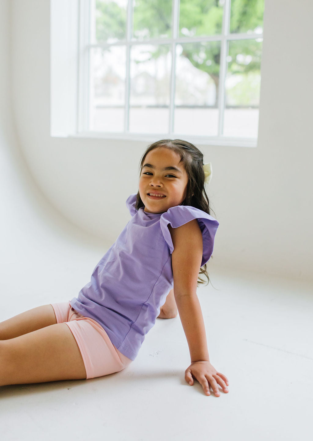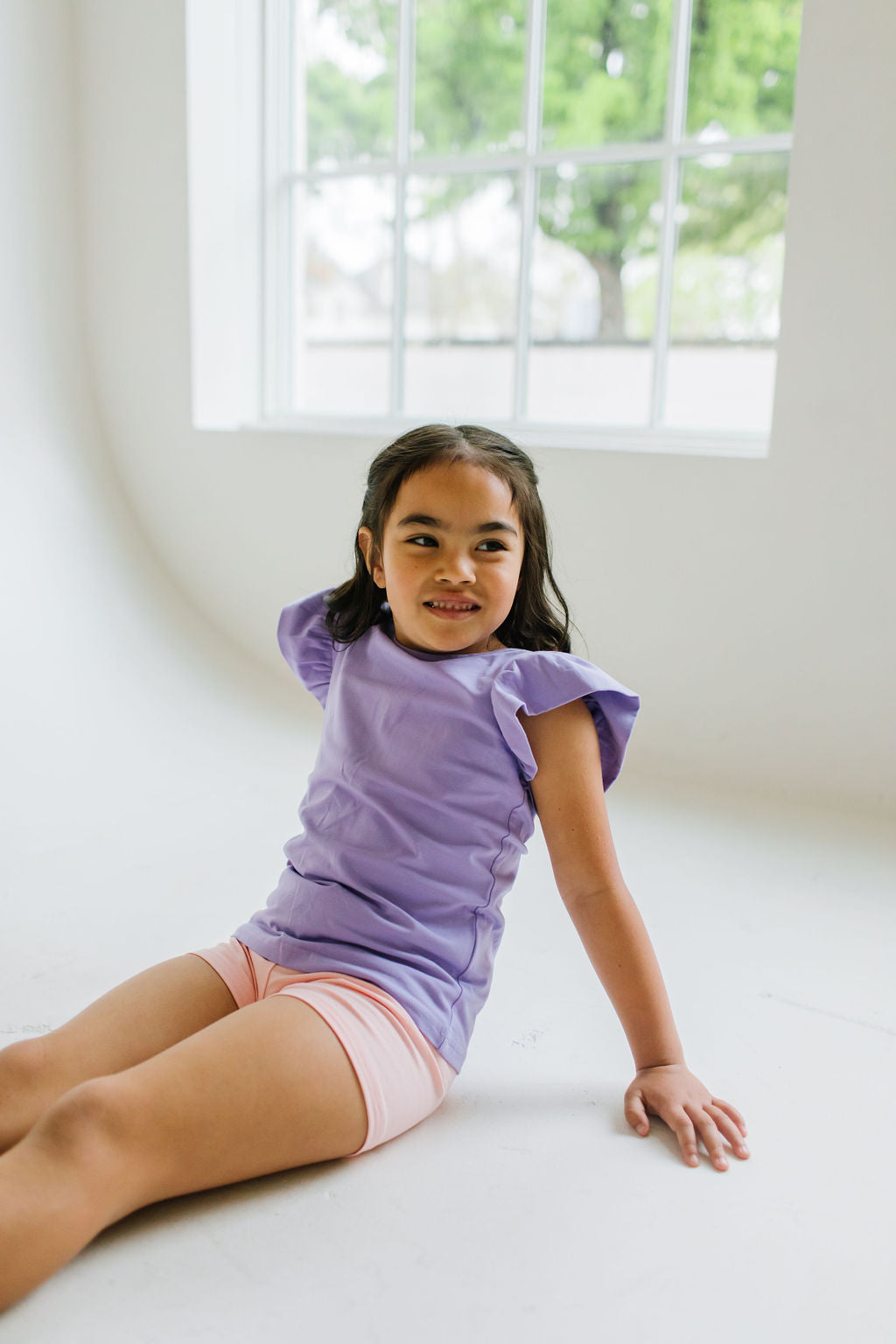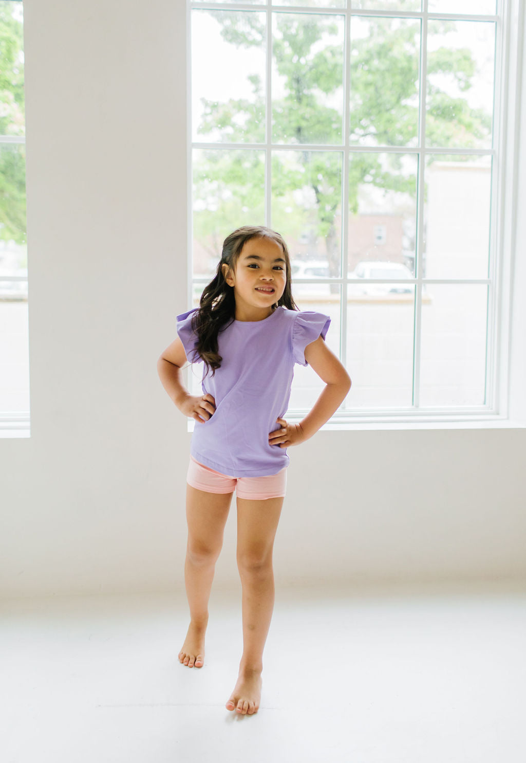 Our Flutter Tee brings a fresh twist to the classic silhouette with its delicate flutter sleeves and comfortable wide neck opening. Crafted from the softest blend of 95% premium jersey cotton and 5% spandex, this tee offers unbeatable comfort that your little one will love to wear again and again.