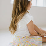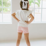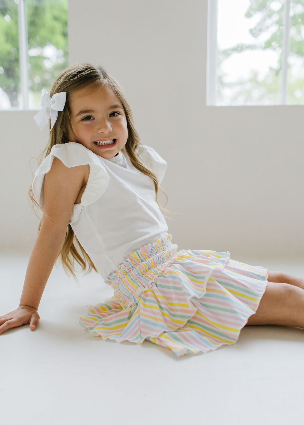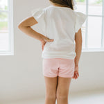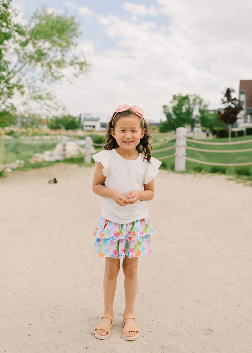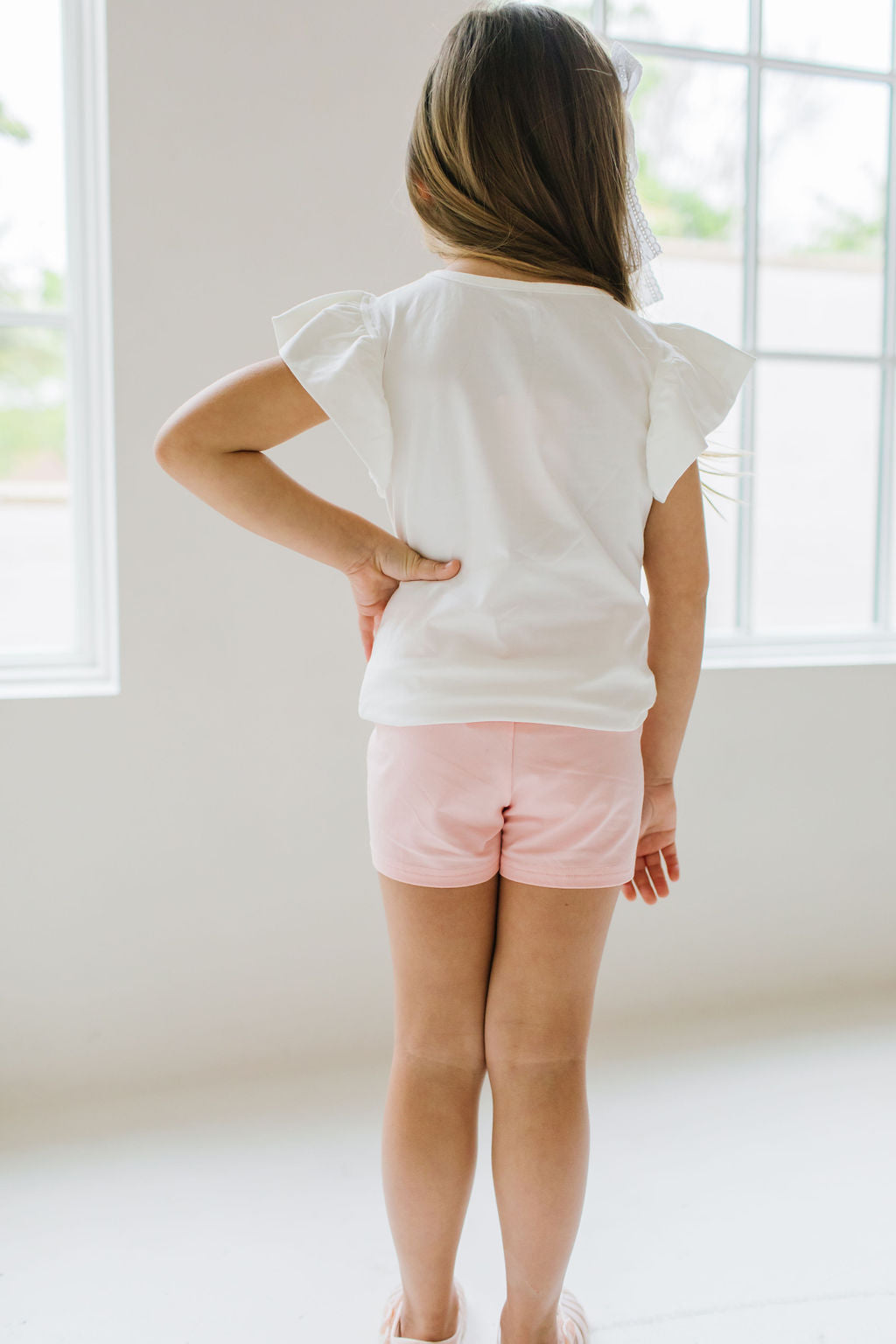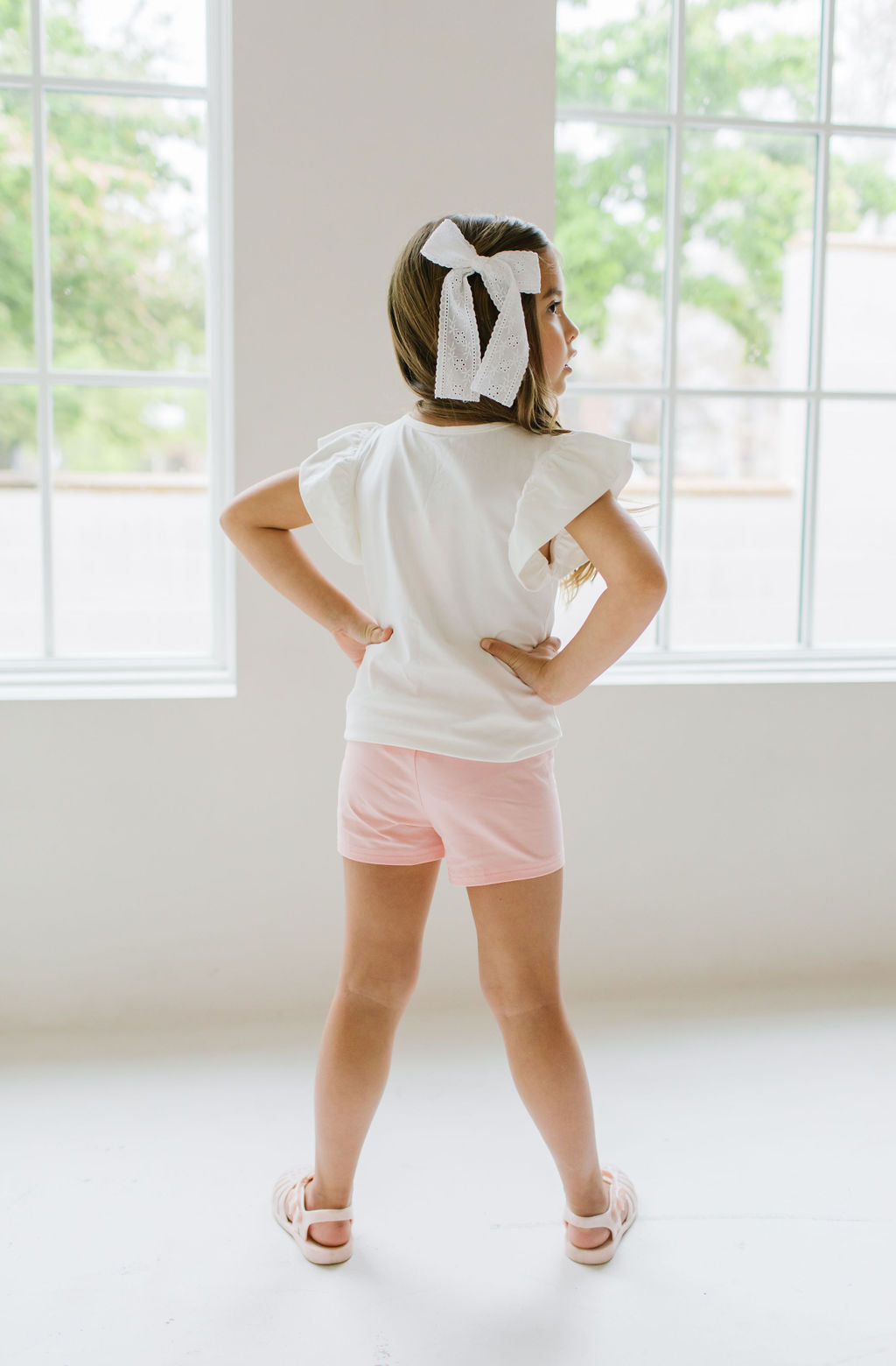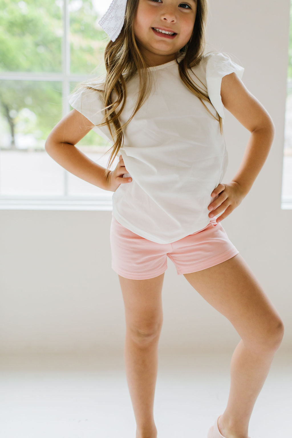 Our Flutter Tee brings a fresh twist to the classic silhouette with its delicate flutter sleeves and comfortable wide neck opening. Crafted from the softest blend of 95% premium jersey cotton and 5% spandex, this tee offers unbeatable comfort that your little one will love to wear again and again.