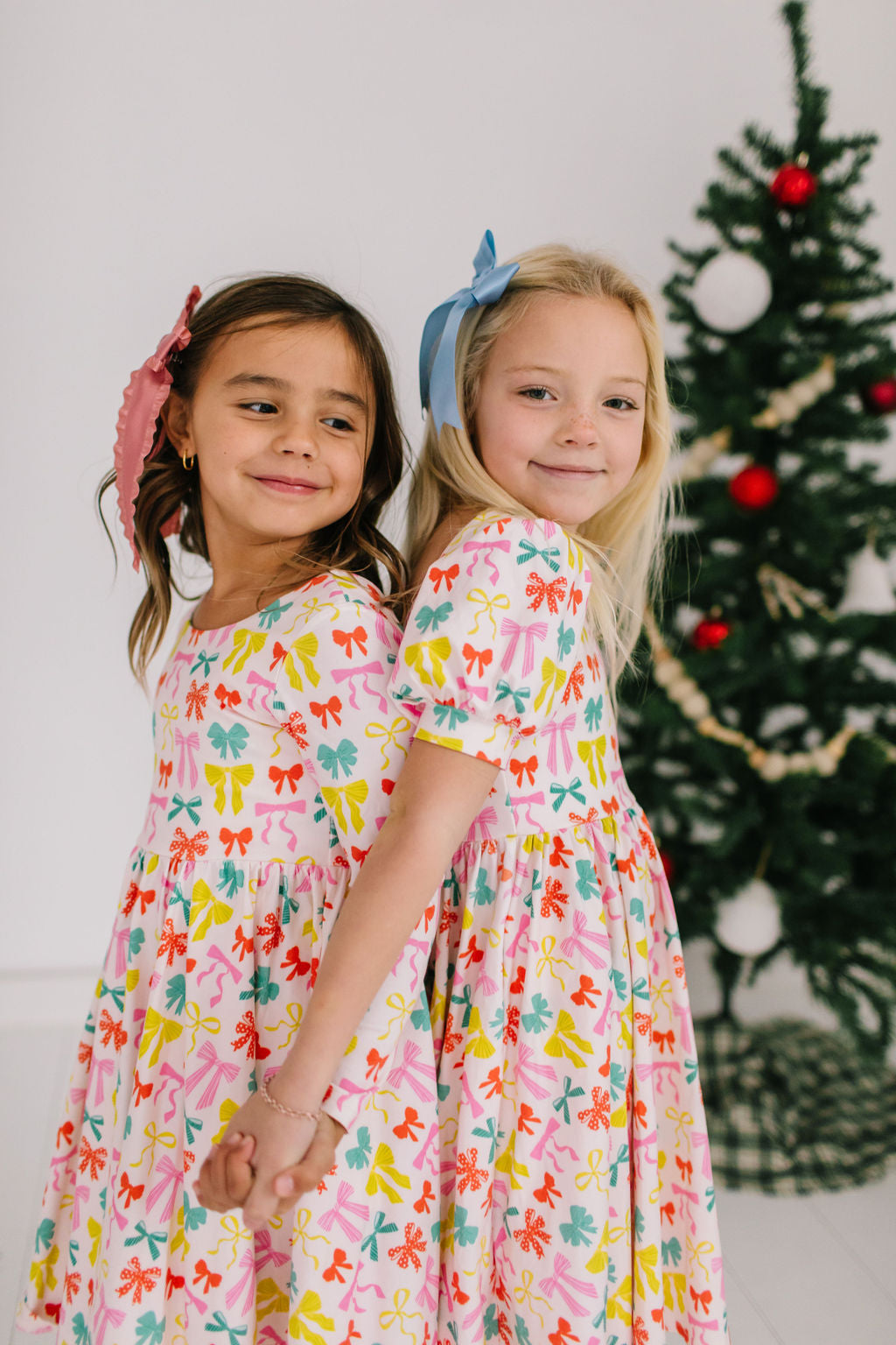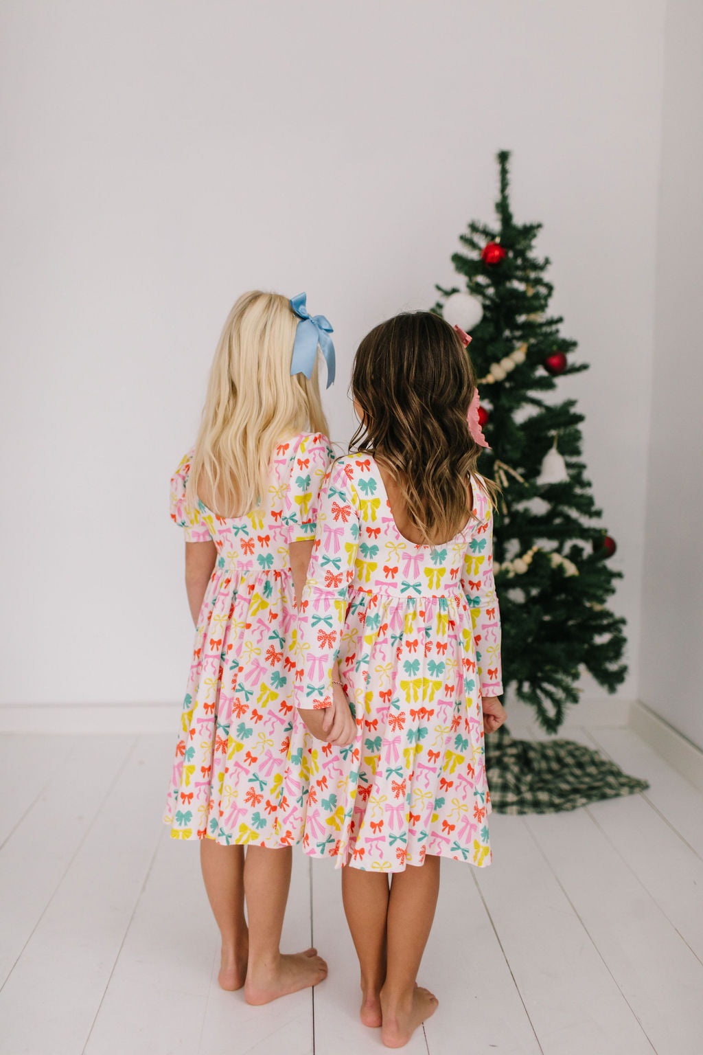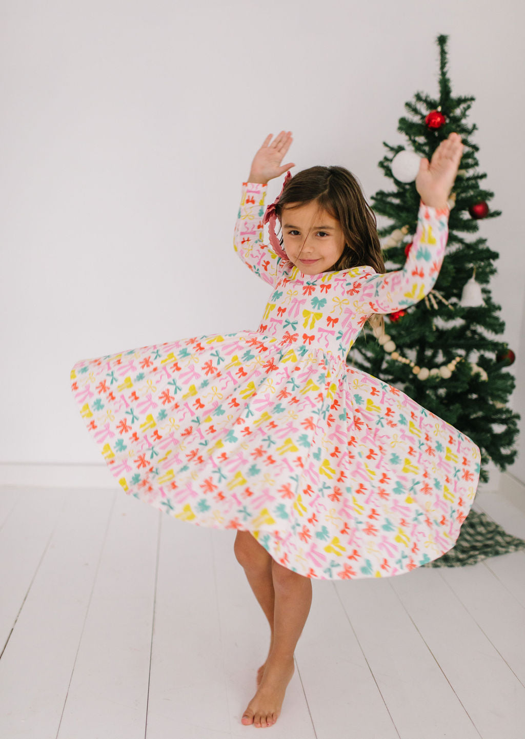 The Gwendolyn Dress combines comfort and classic style with long sleeves, a flattering scoop back, and a full circle twirl skirt that's perfect for playtime and special occasions alike. Hidden pockets in the seams add practical charm, while our signature super soft fabric ensures all-day comfort.