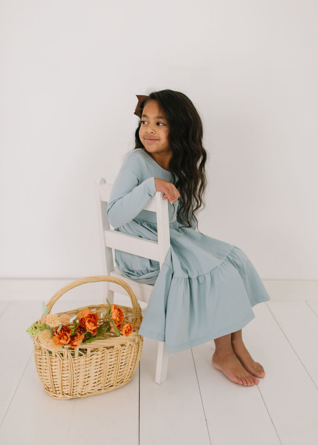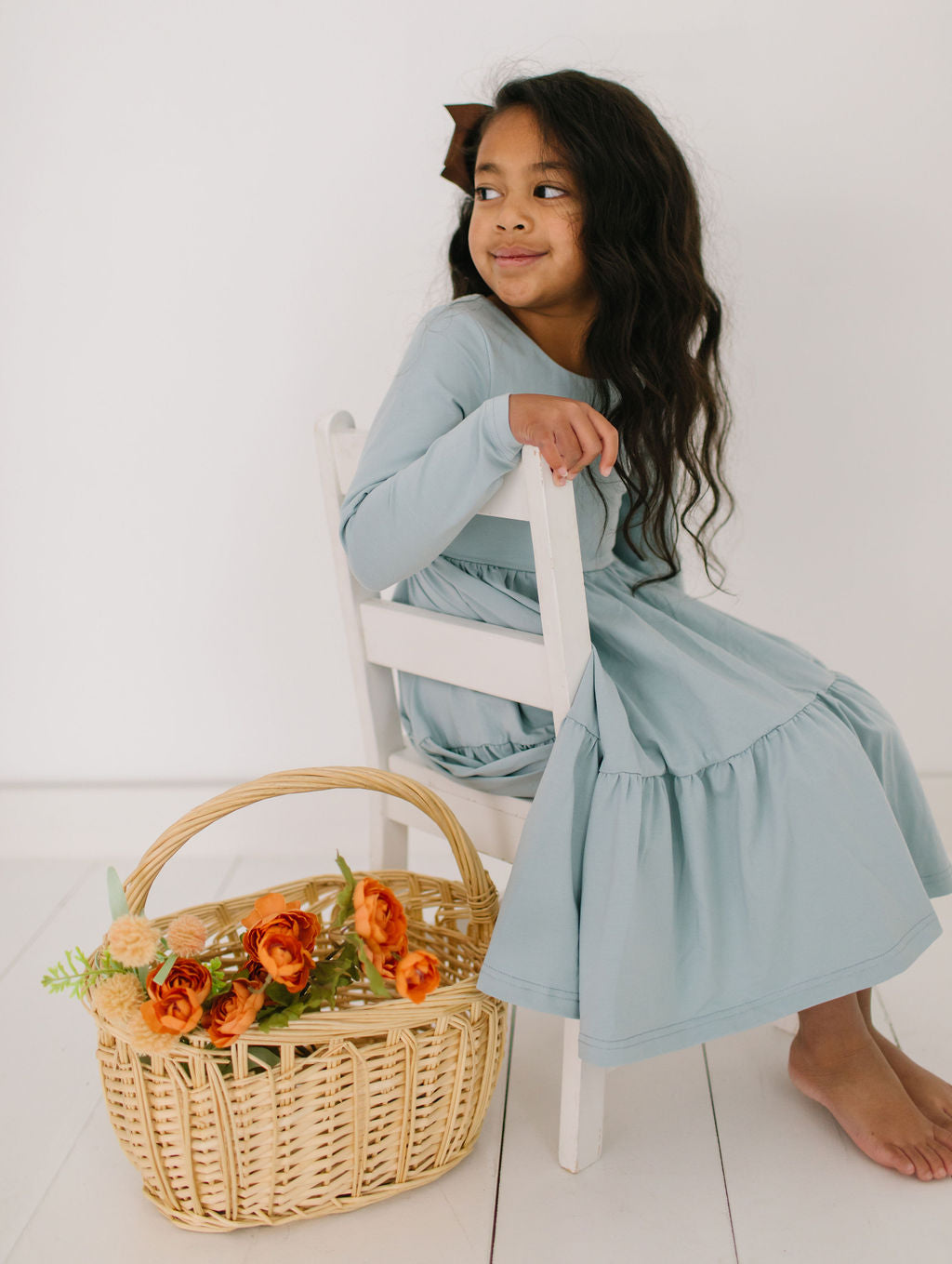 The Gwendolyn Ruffle Dress combines comfort and classic style with long sleeves, a flattering scoop back, and a full circle twirl skirt with a charming ruffle that’s perfect for playtime and special occasions alike. Hidden pockets in the seams add practical charm, while our signature super soft fabric ensures all-day comfort.