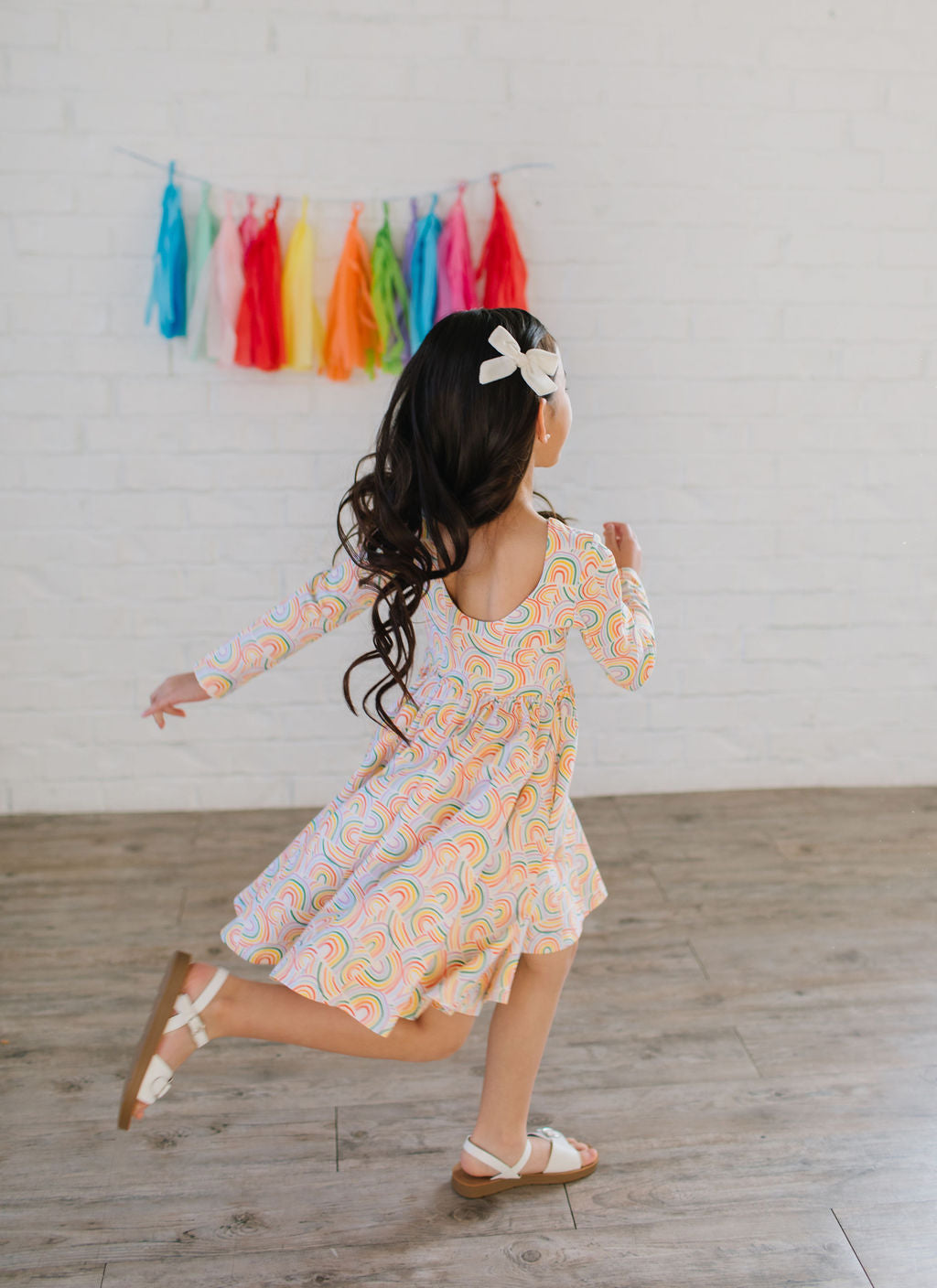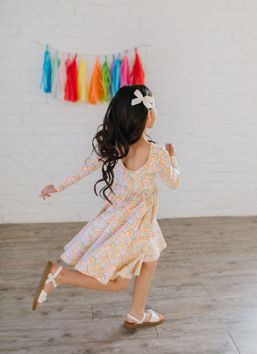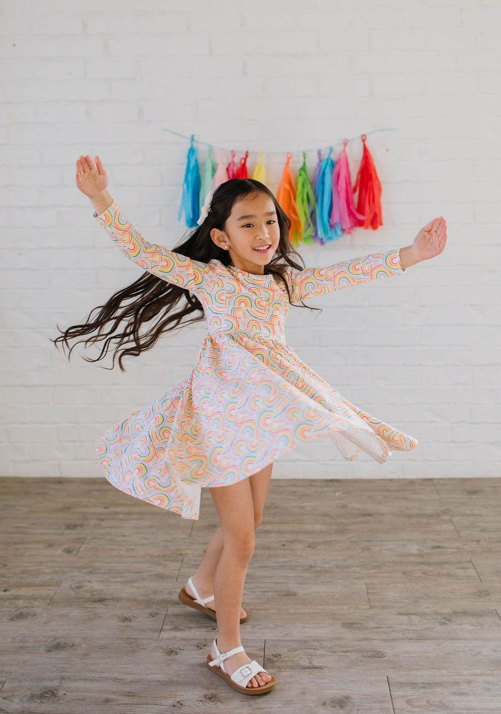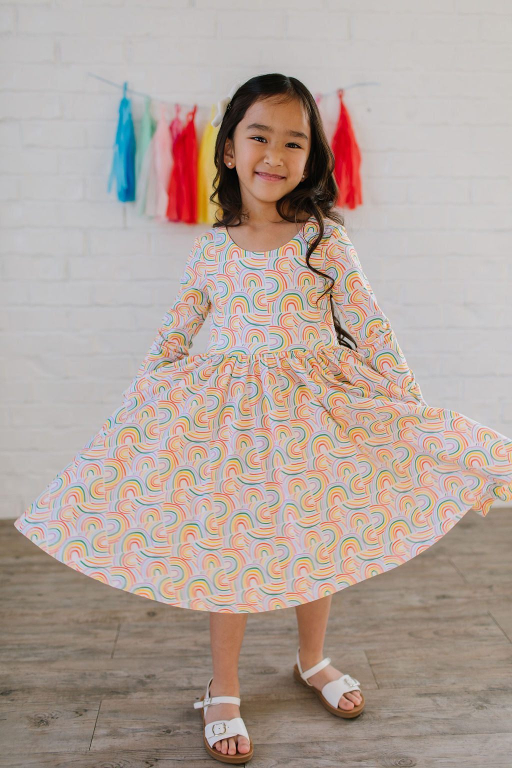 The Gwendolyn Dress combines comfort and classic style with long sleeves, a flattering scoop back, and a full circle twirl skirt that’s perfect for playtime and special occasions alike. Hidden pockets in the seams add practical charm, while our signature super soft fabric ensures all-day comfort.