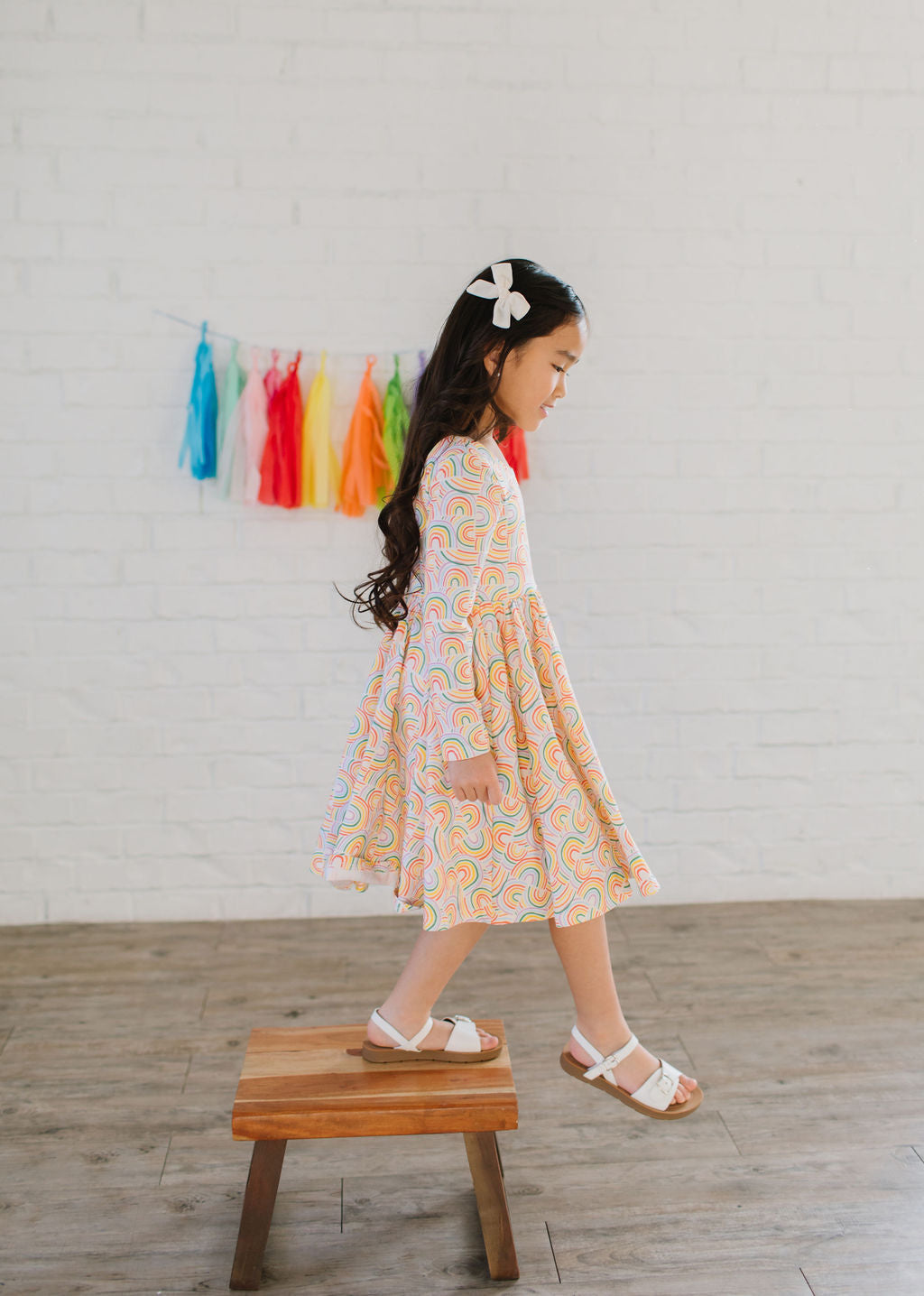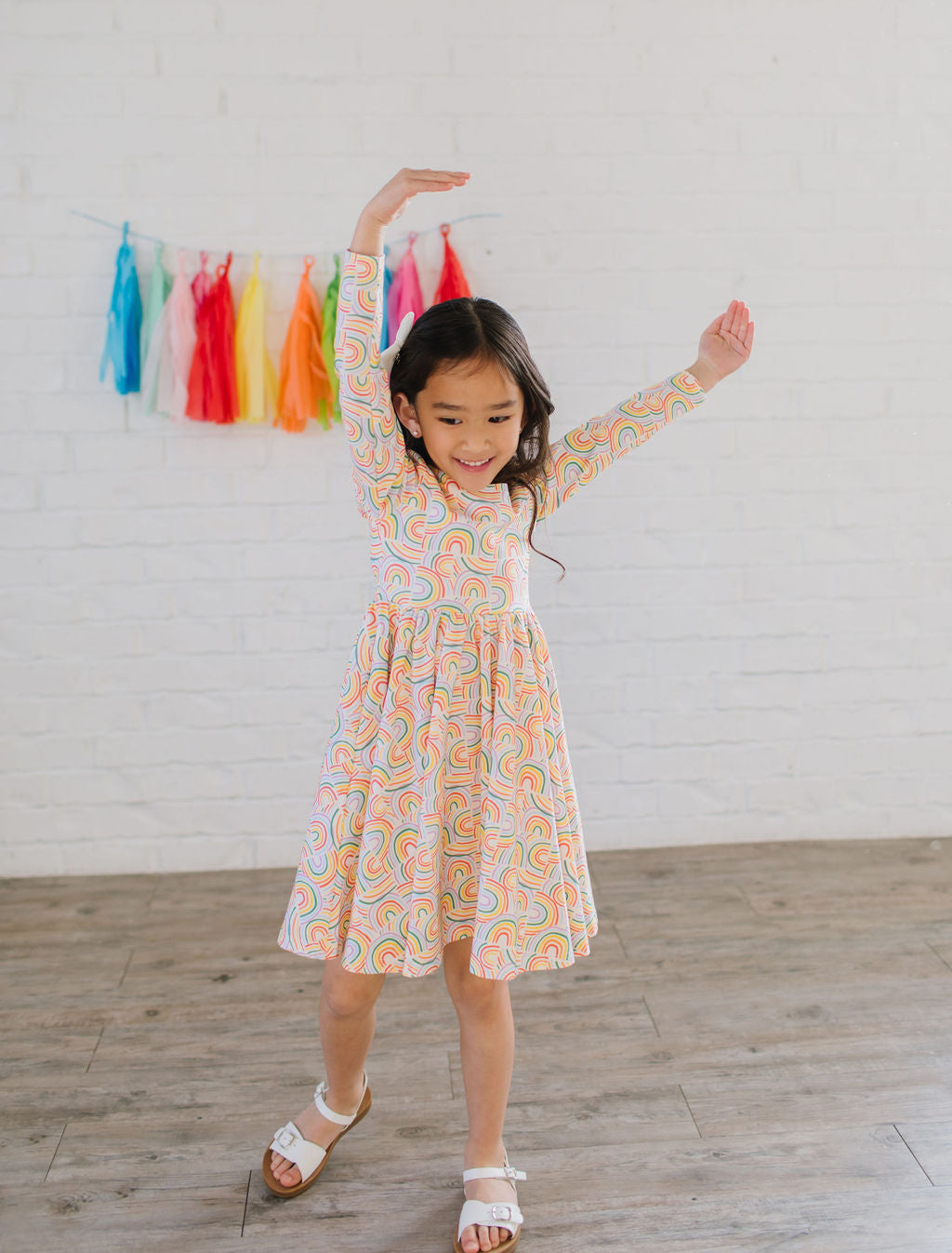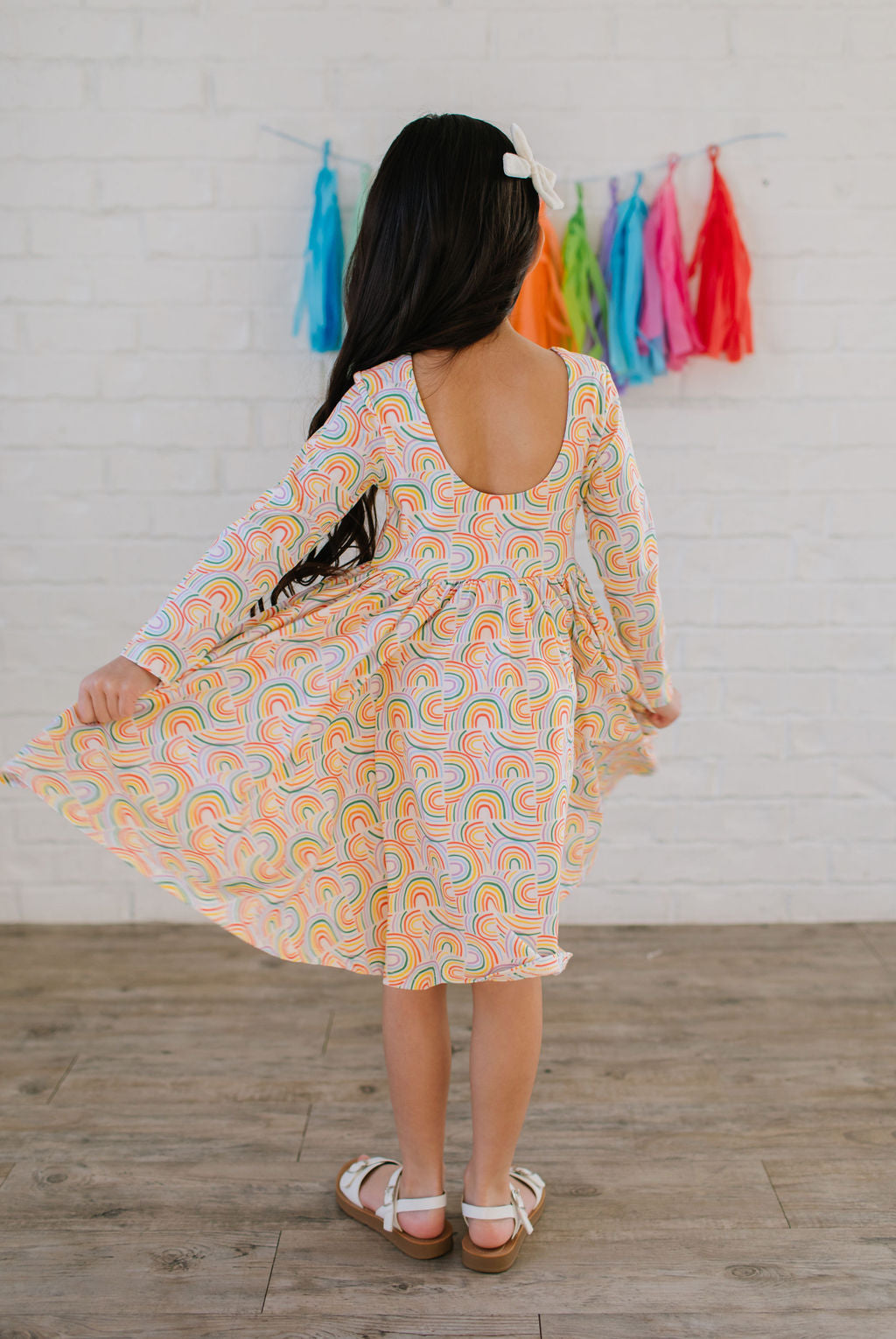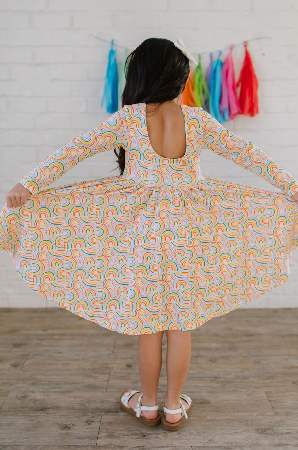 The Gwendolyn Dress combines comfort and classic style with long sleeves, a flattering scoop back, and a full circle twirl skirt that’s perfect for playtime and special occasions alike. Hidden pockets in the seams add practical charm, while our signature super soft fabric ensures all-day comfort.