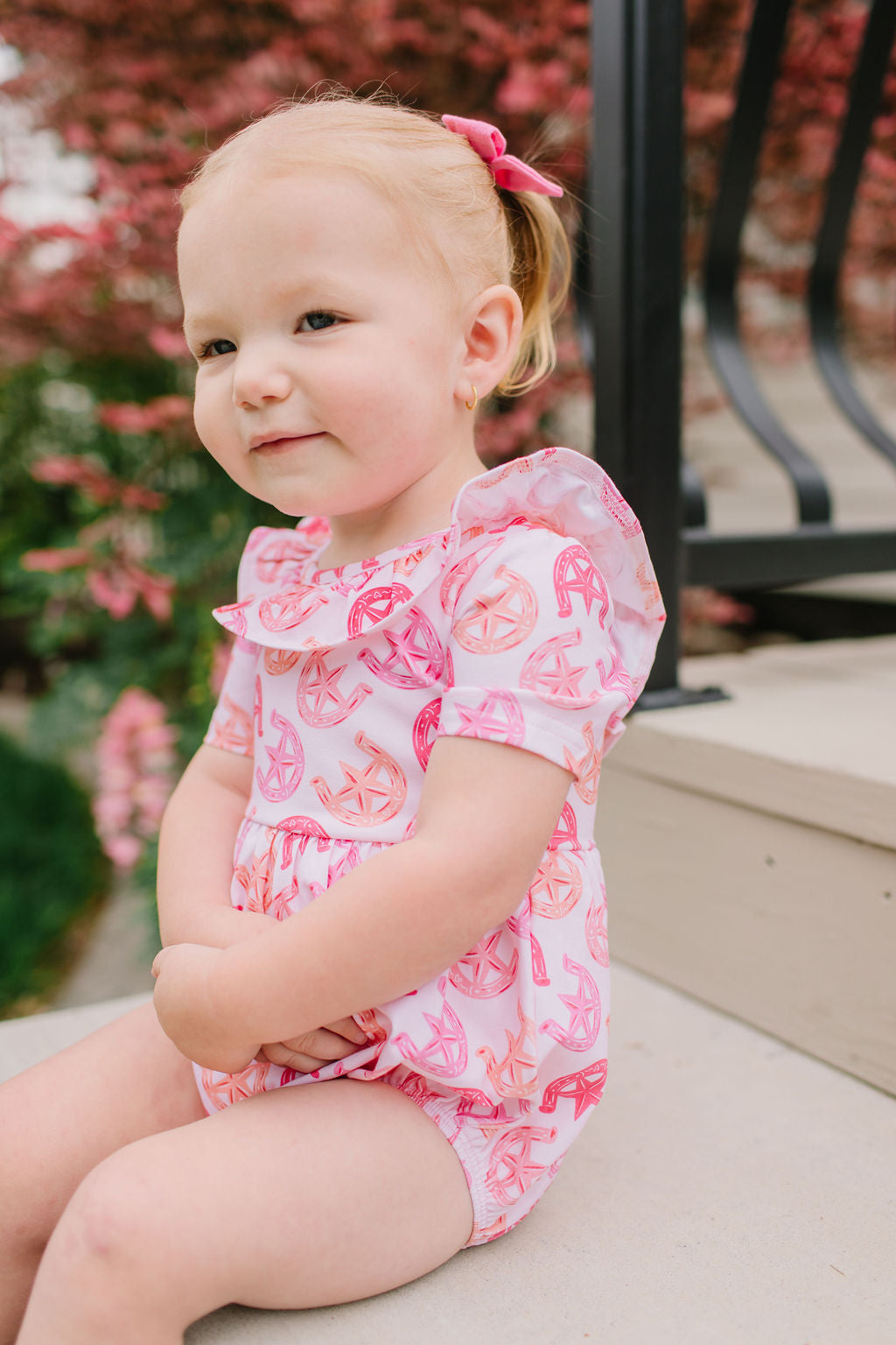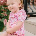 Our Harlow Romper is the perfect blend of comfort and charm, made from our signature extra soft and stretchy fabric. Featuring a delicate ruffled wrap-around collar and a convenient three-snap closure for quick and easy diaper changes, this romper is made for busy little ones.