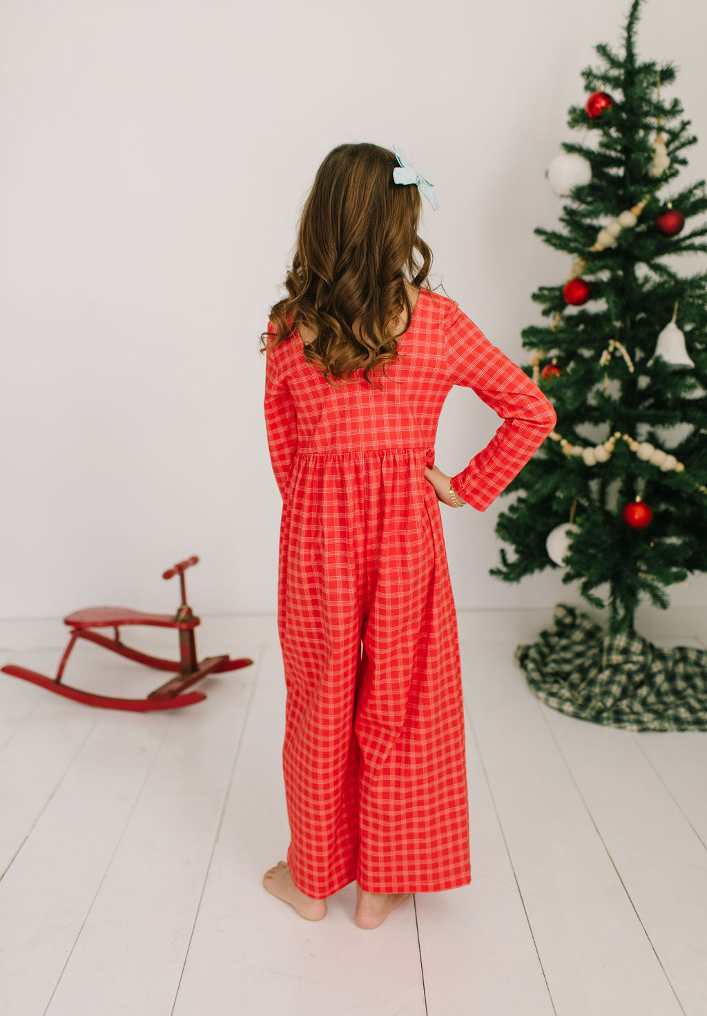 Long Sleeve Leggy Romper in Red Picnic Plaid