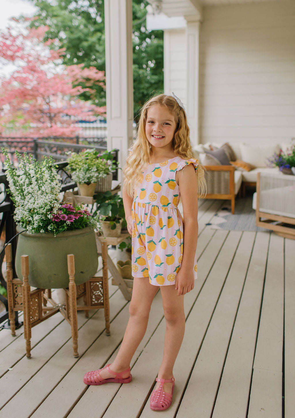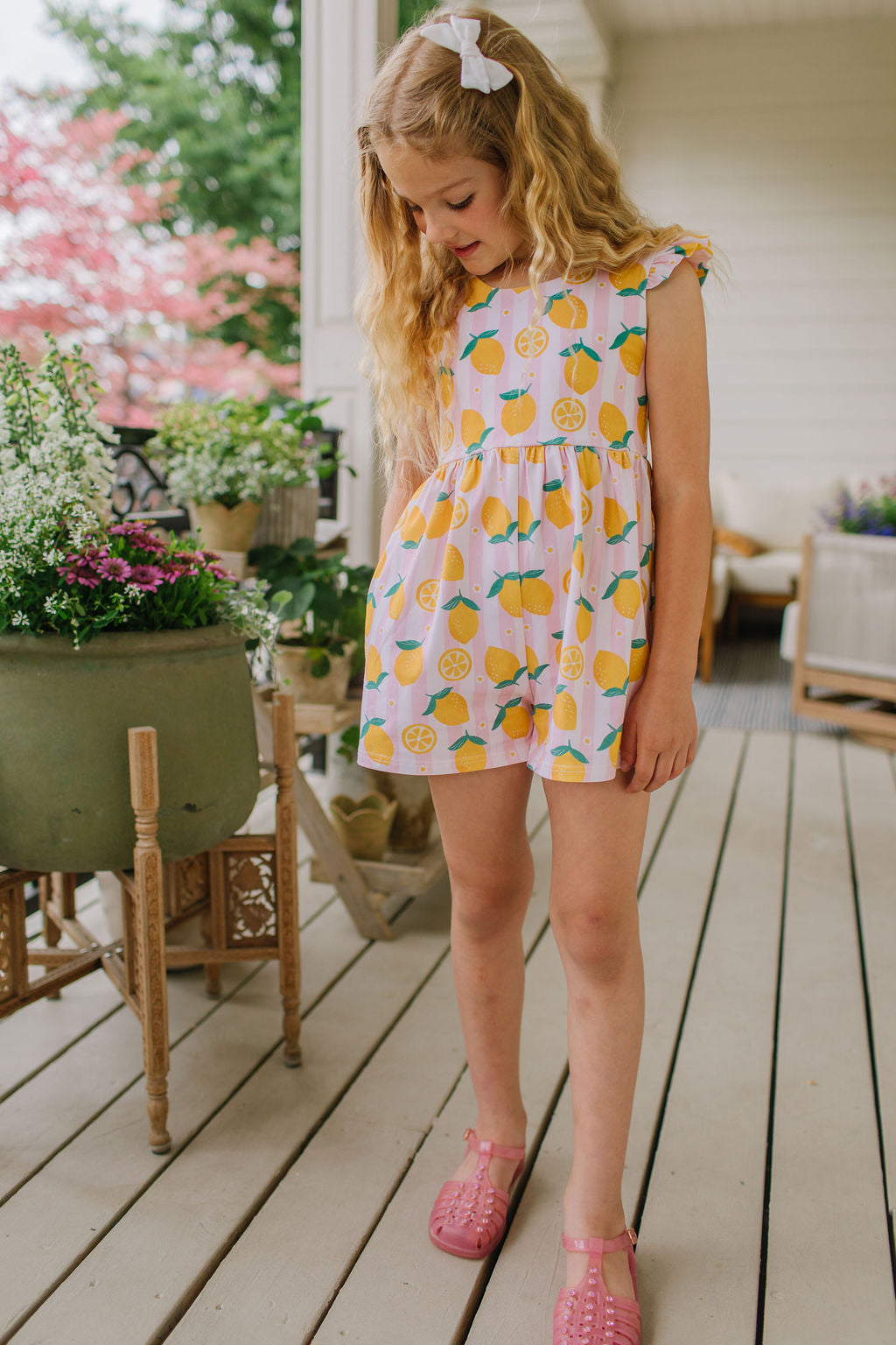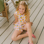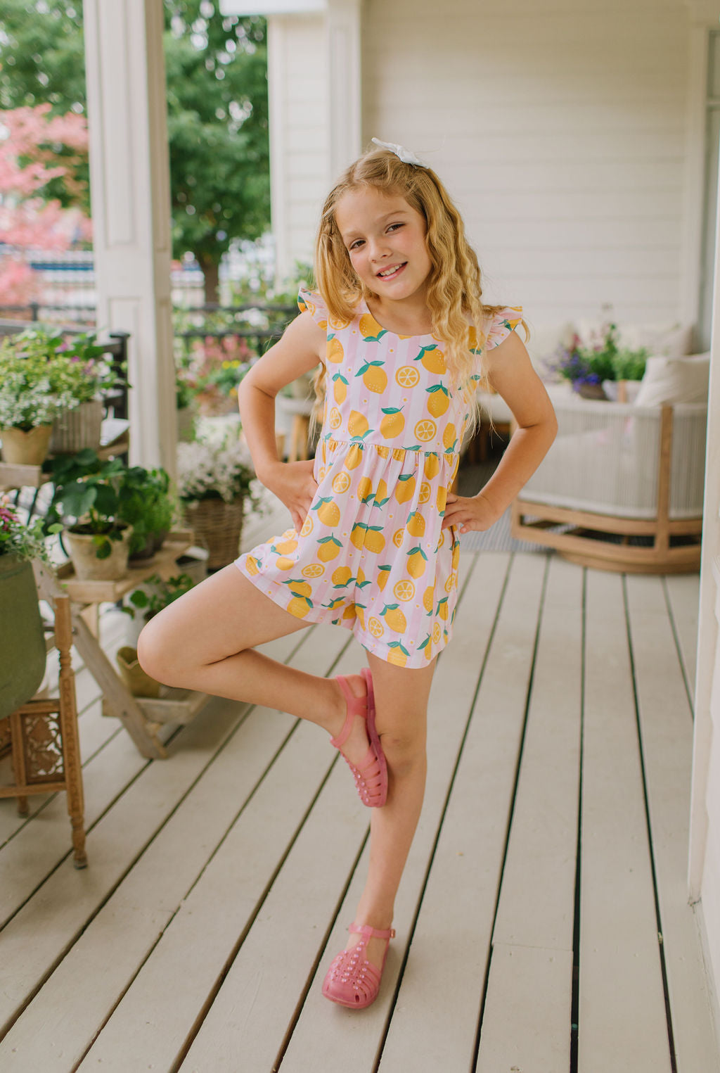 Inspired by adventurous girls on the move, this tank top romper combines playful style with everyday comfort. Featuring a sweet ruffled detail on the sleeve, relaxed mid-length shorts with side seam pockets, and crafted from our signature extra soft and stretchy cotton fabric, it's perfect for active days filled with fun and exploration.