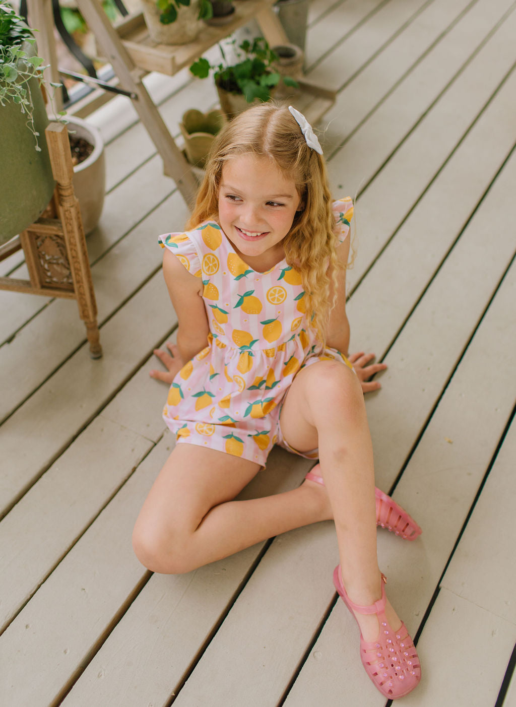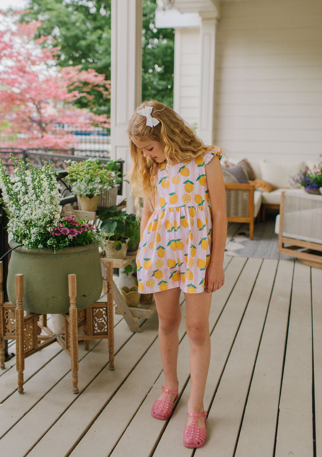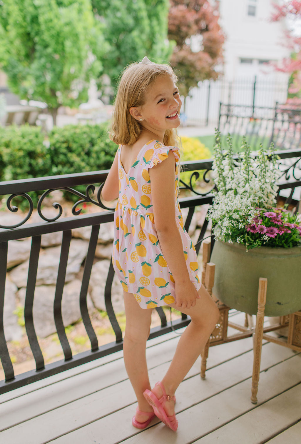 Inspired by adventurous girls on the move, this tank top romper combines playful style with everyday comfort. Featuring a sweet ruffled detail on the sleeve, relaxed mid-length shorts with side seam pockets, and crafted from our signature extra soft and stretchy cotton fabric, it's perfect for active days filled with fun and exploration.