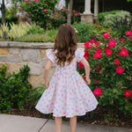 The Olivia Dress is designed for twirling through parties, backyard fun, and everyday adventures. Featuring a charming scoop back, delicate ruffled shoulder details, a full circle skirt for maximum twirl, and hidden pockets for little treasures, this dress blends style and practicality effortlessly.