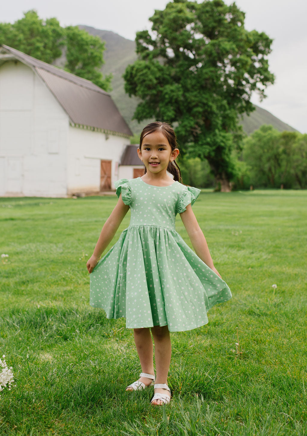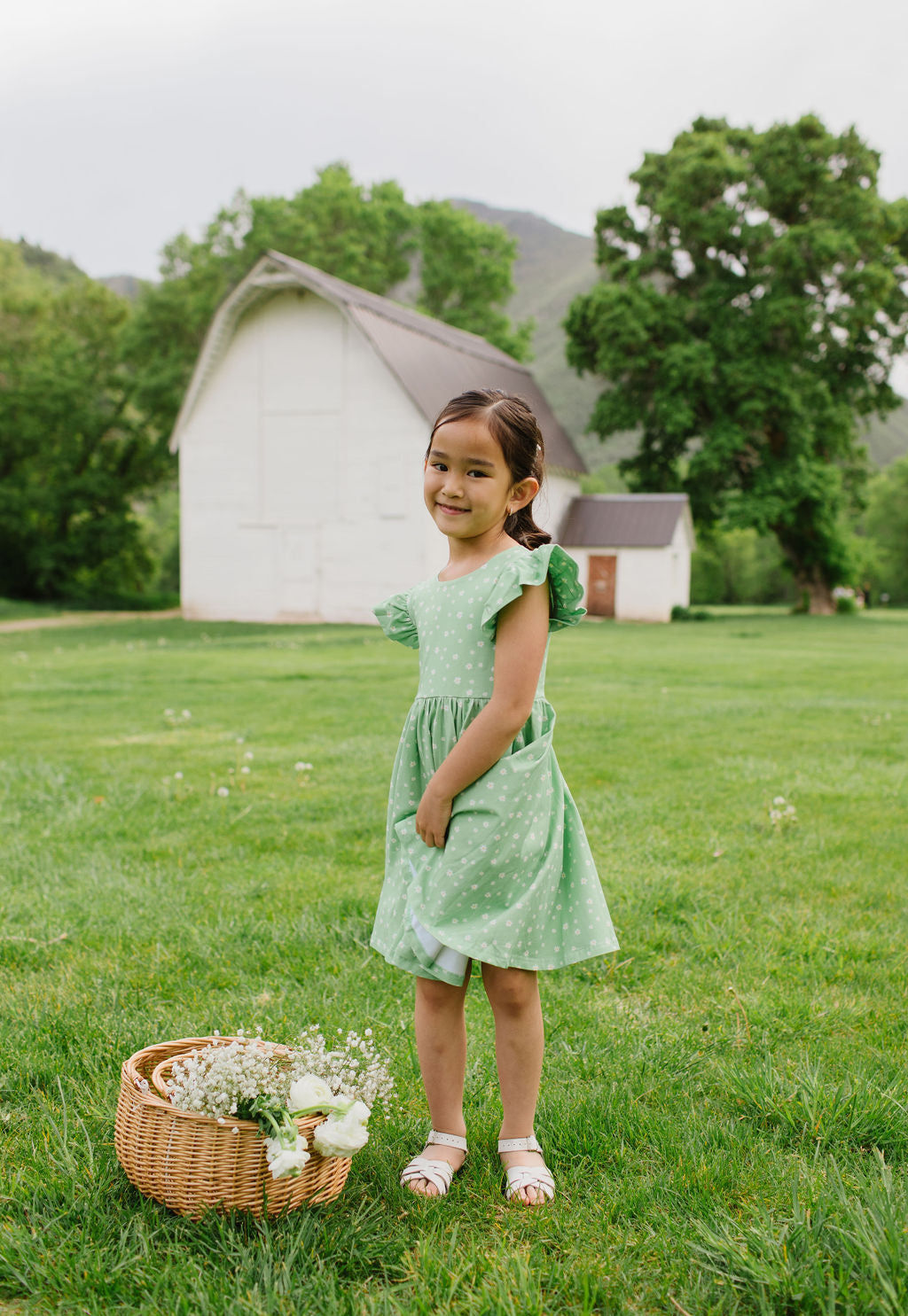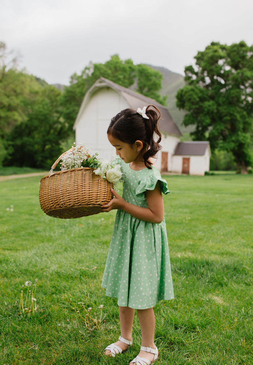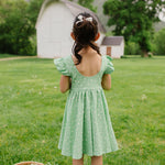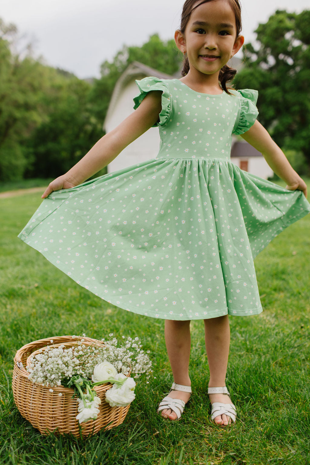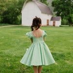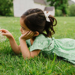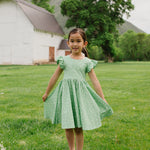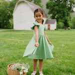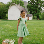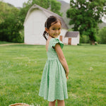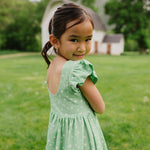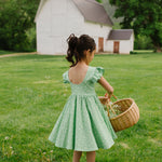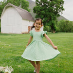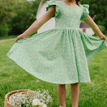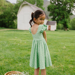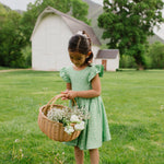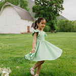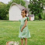 The Olivia Dress is designed for twirling through parties, backyard fun, and everyday adventures. Featuring a charming scoop back, delicate ruffled shoulder details, a full circle skirt for maximum twirl, and hidden pockets for little treasures, this dress blends style and practicality effortlessly.