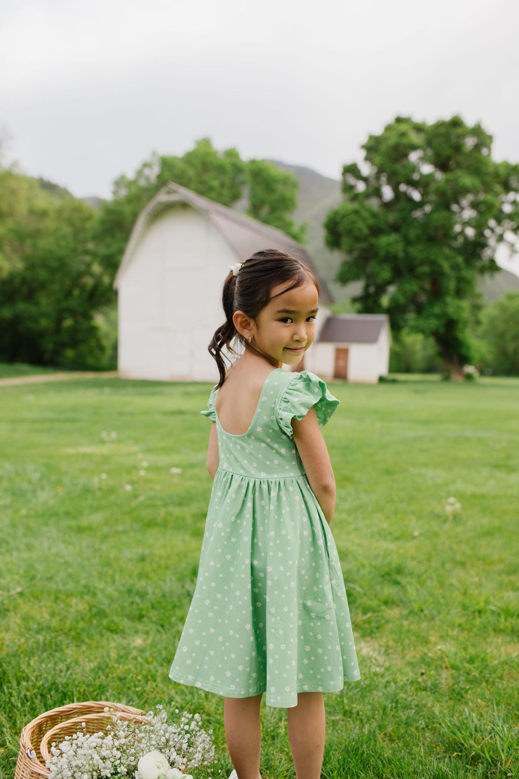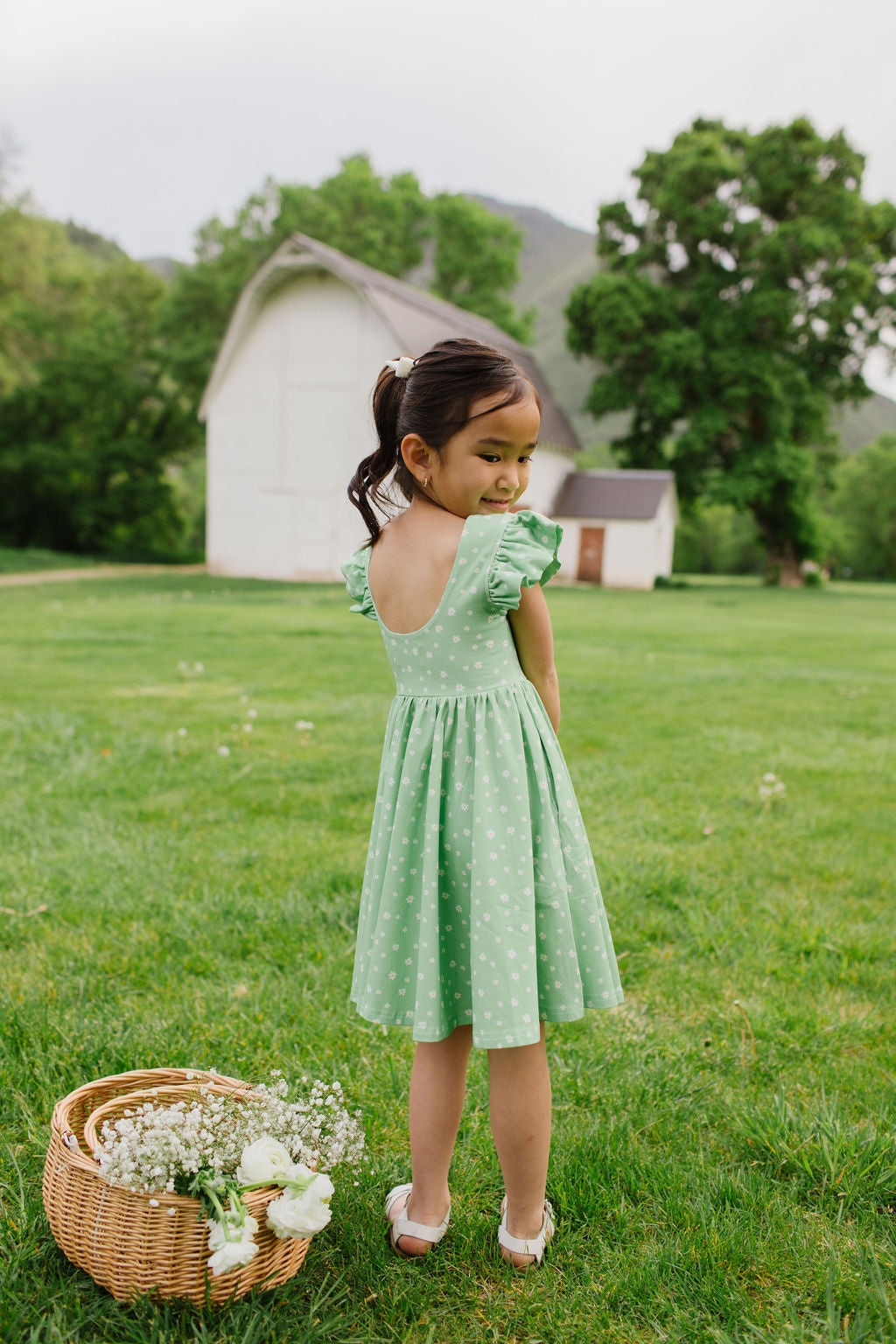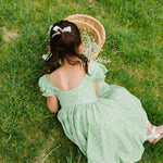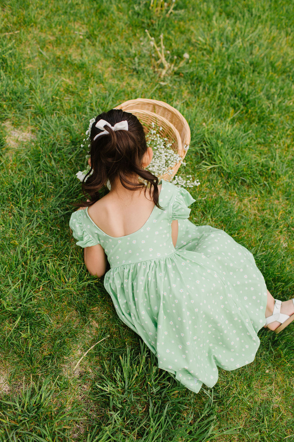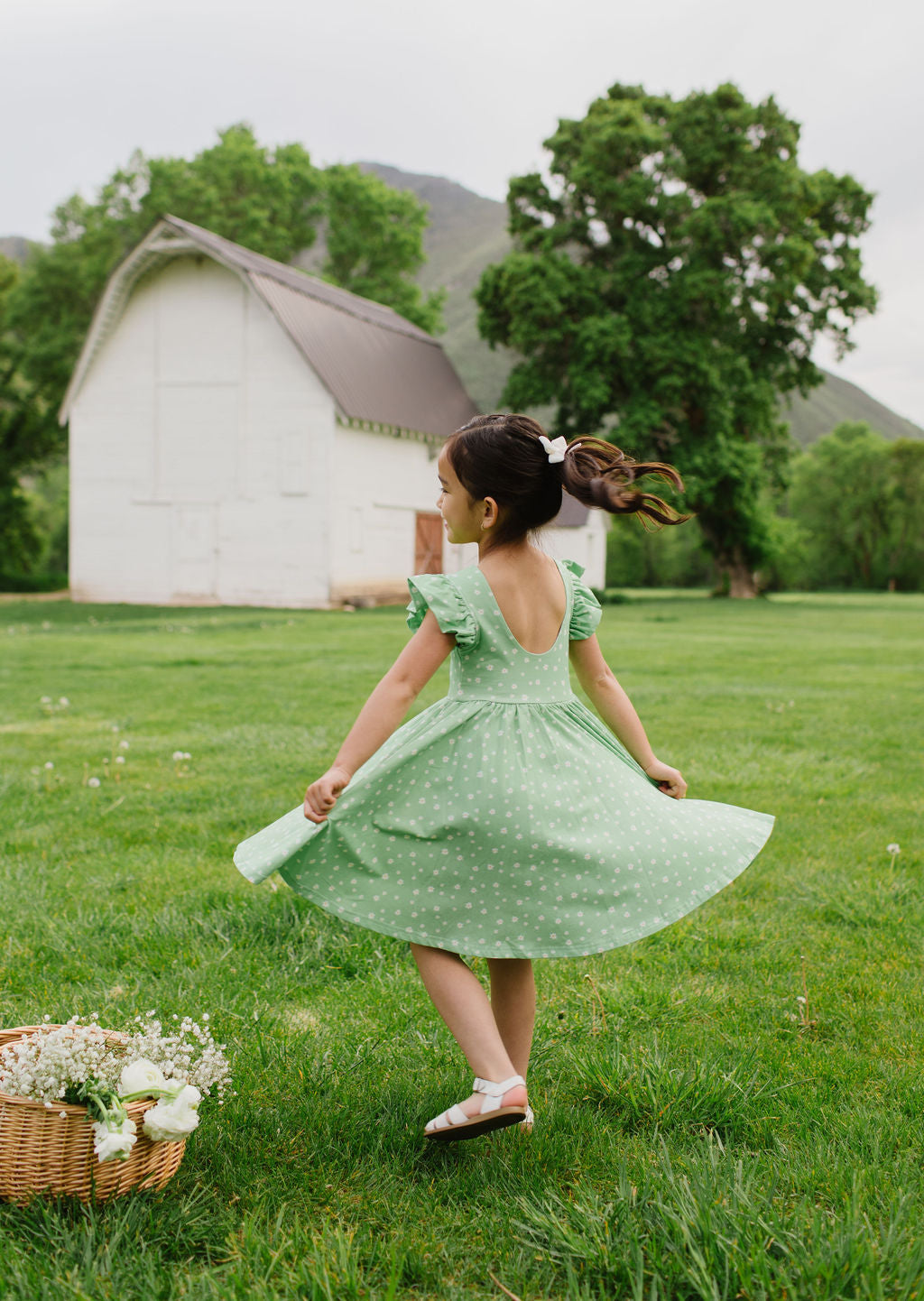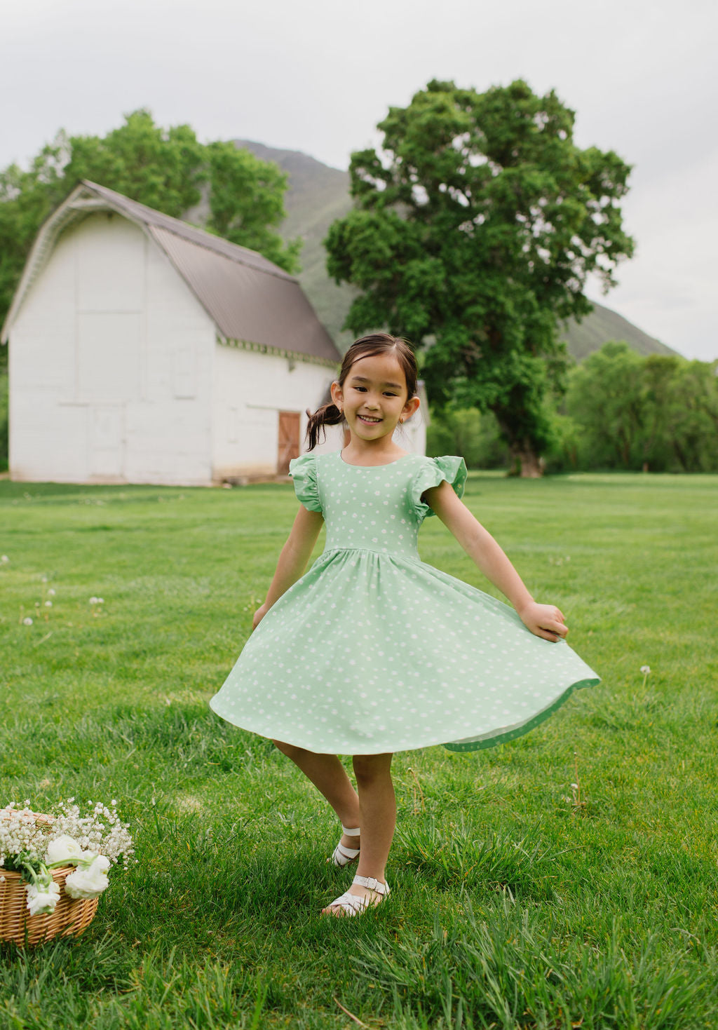 The Olivia Dress is designed for twirling through parties, backyard fun, and everyday adventures. Featuring a charming scoop back, delicate ruffled shoulder details, a full circle skirt for maximum twirl, and hidden pockets for little treasures, this dress blends style and practicality effortlessly.