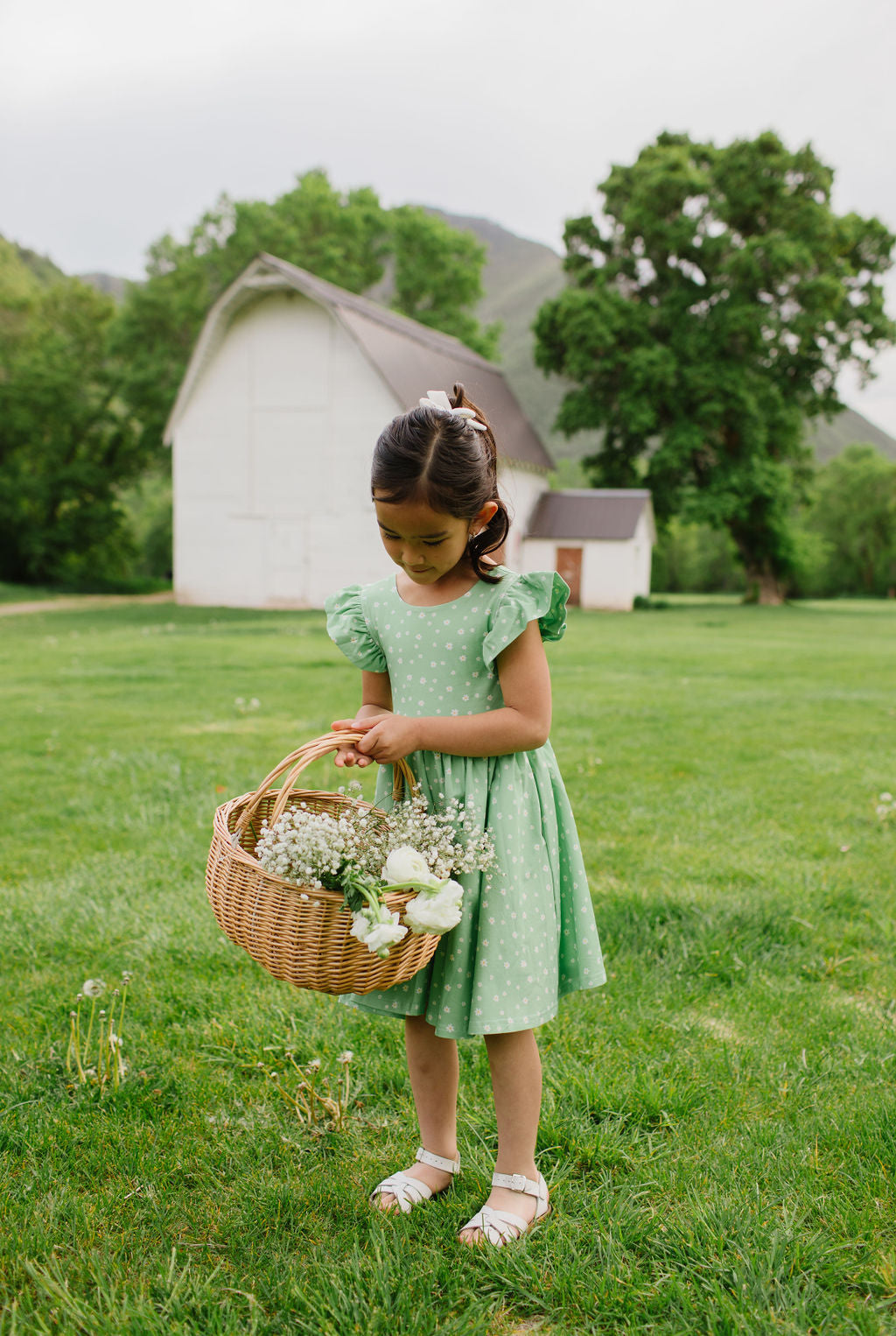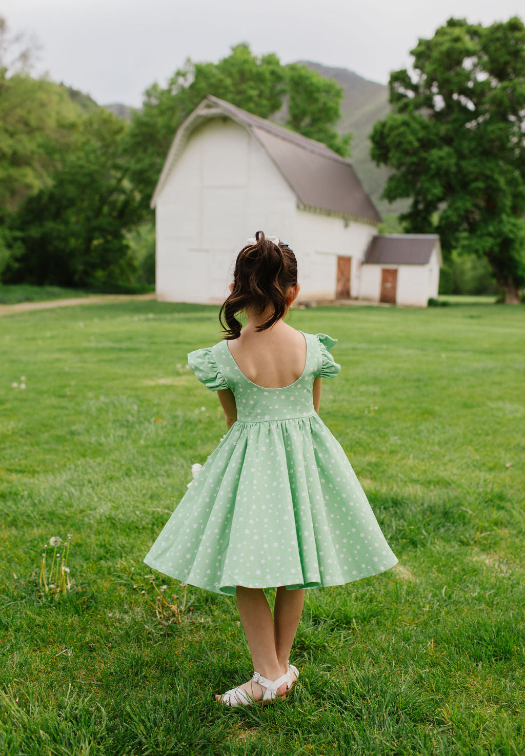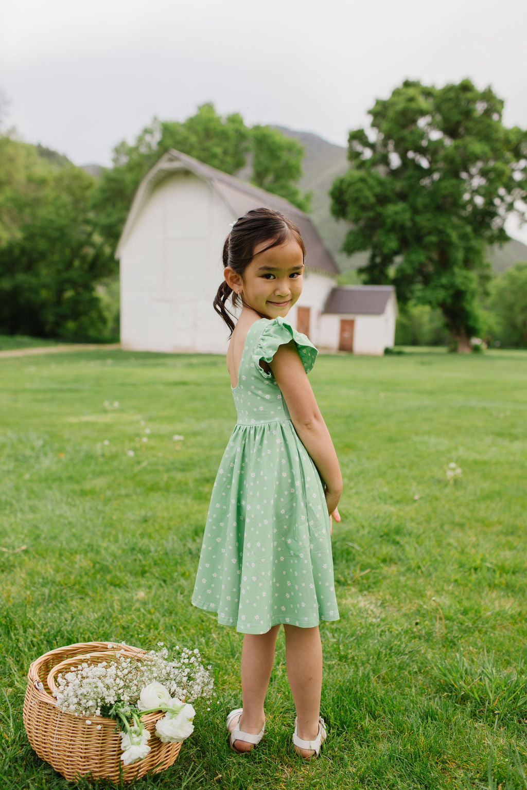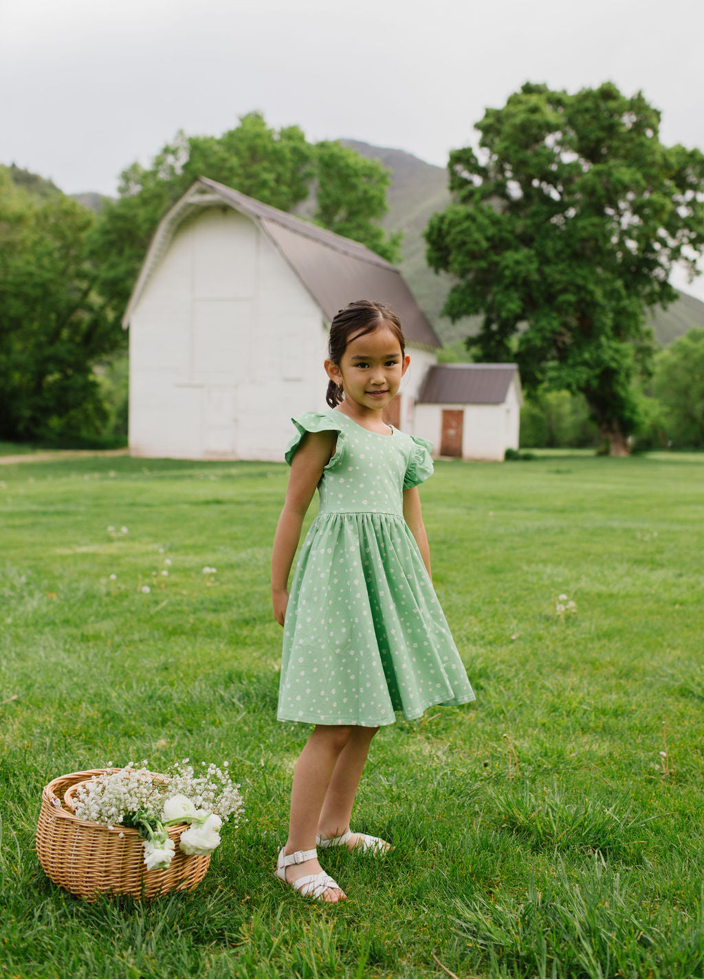 The Olivia Dress is designed for twirling through parties, backyard fun, and everyday adventures. Featuring a charming scoop back, delicate ruffled shoulder details, a full circle skirt for maximum twirl, and hidden pockets for little treasures, this dress blends style and practicality effortlessly.