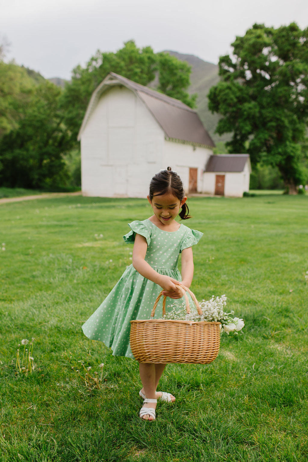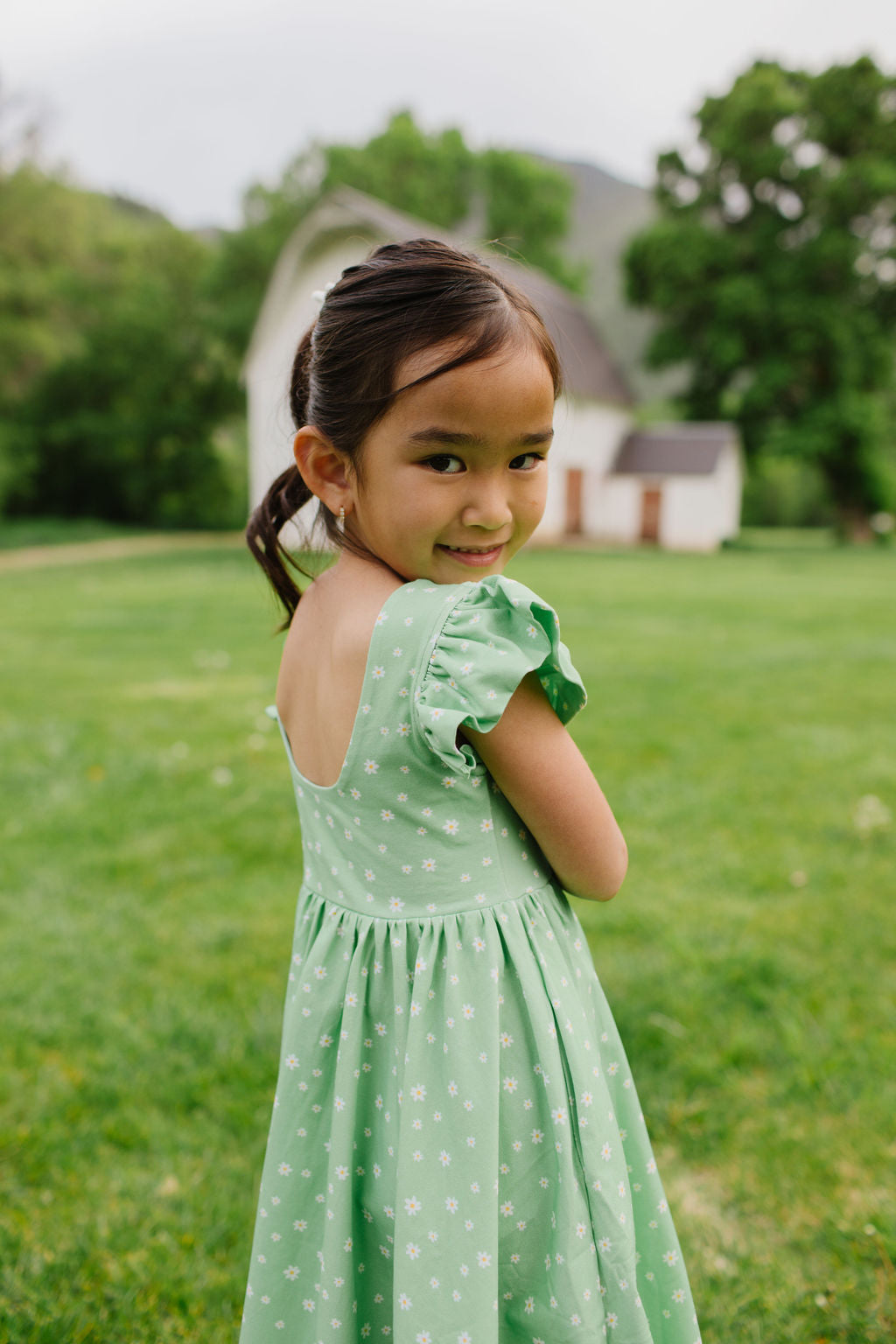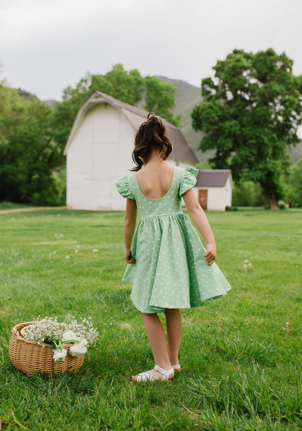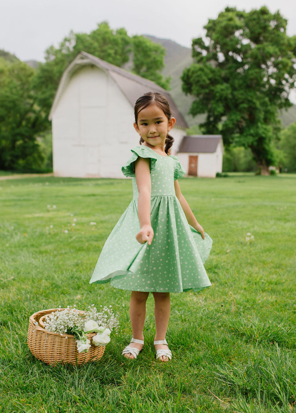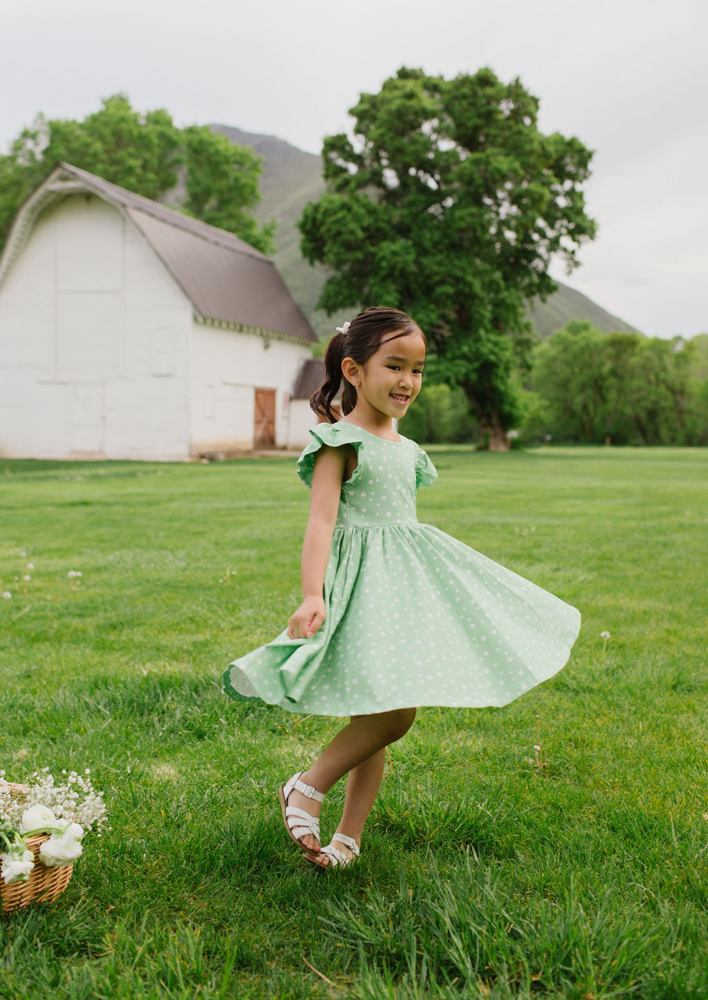 The Olivia Dress is designed for twirling through parties, backyard fun, and everyday adventures. Featuring a charming scoop back, delicate ruffled shoulder details, a full circle skirt for maximum twirl, and hidden pockets for little treasures, this dress blends style and practicality effortlessly.
