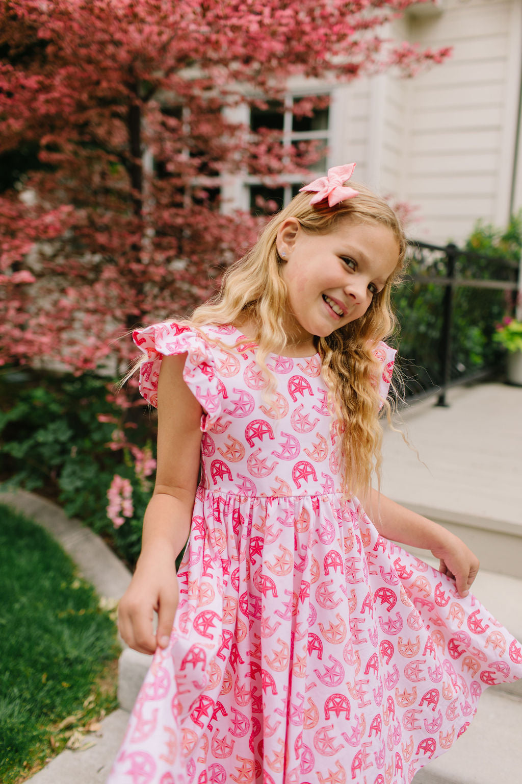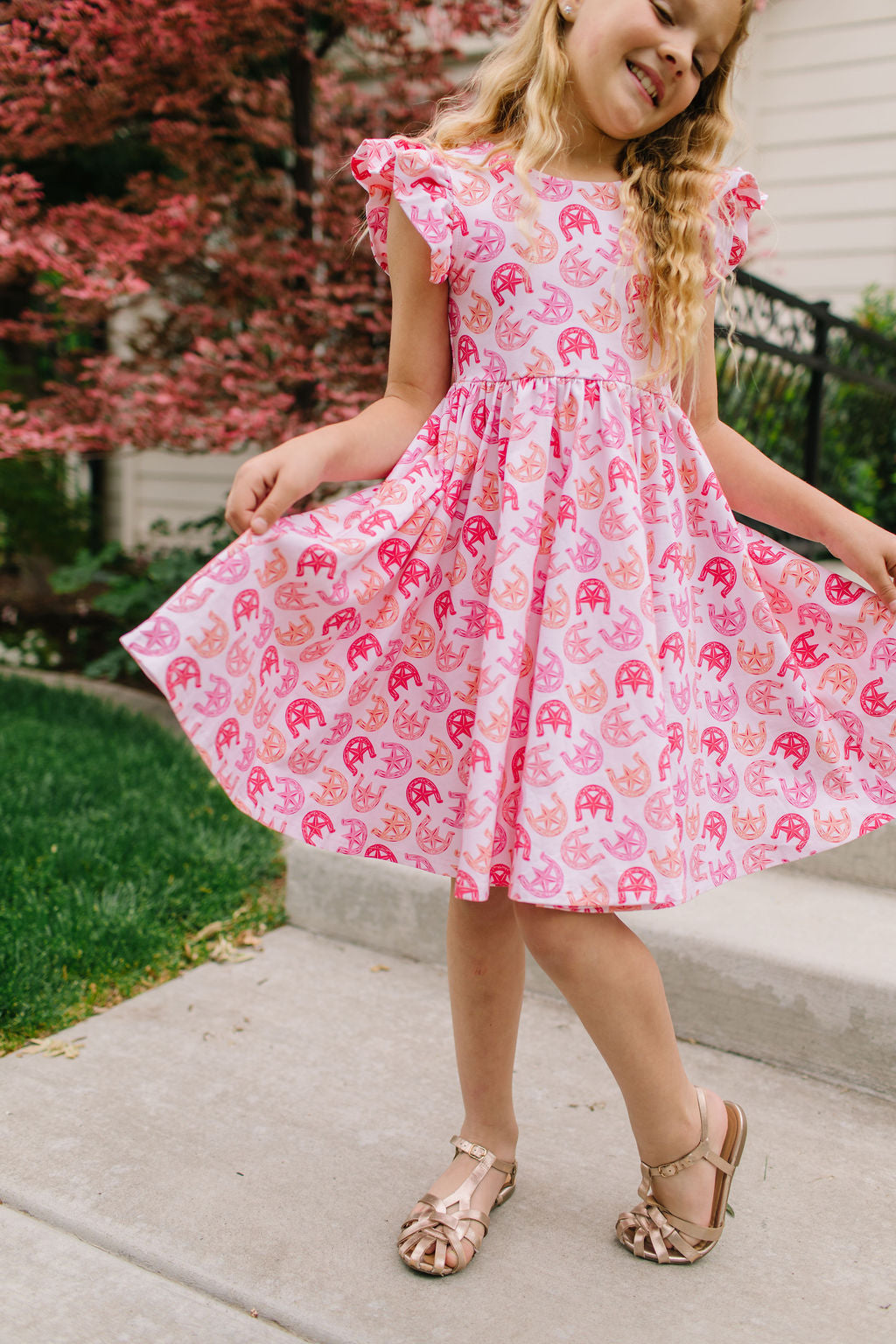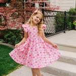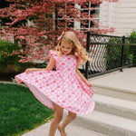 The Olivia Dress is designed for twirling through parties, backyard fun, and everyday adventures. Featuring a charming scoop back, delicate ruffled shoulder details, a full circle skirt for maximum twirl, and hidden pockets for little treasures, this dress blends style and practicality effortlessly.