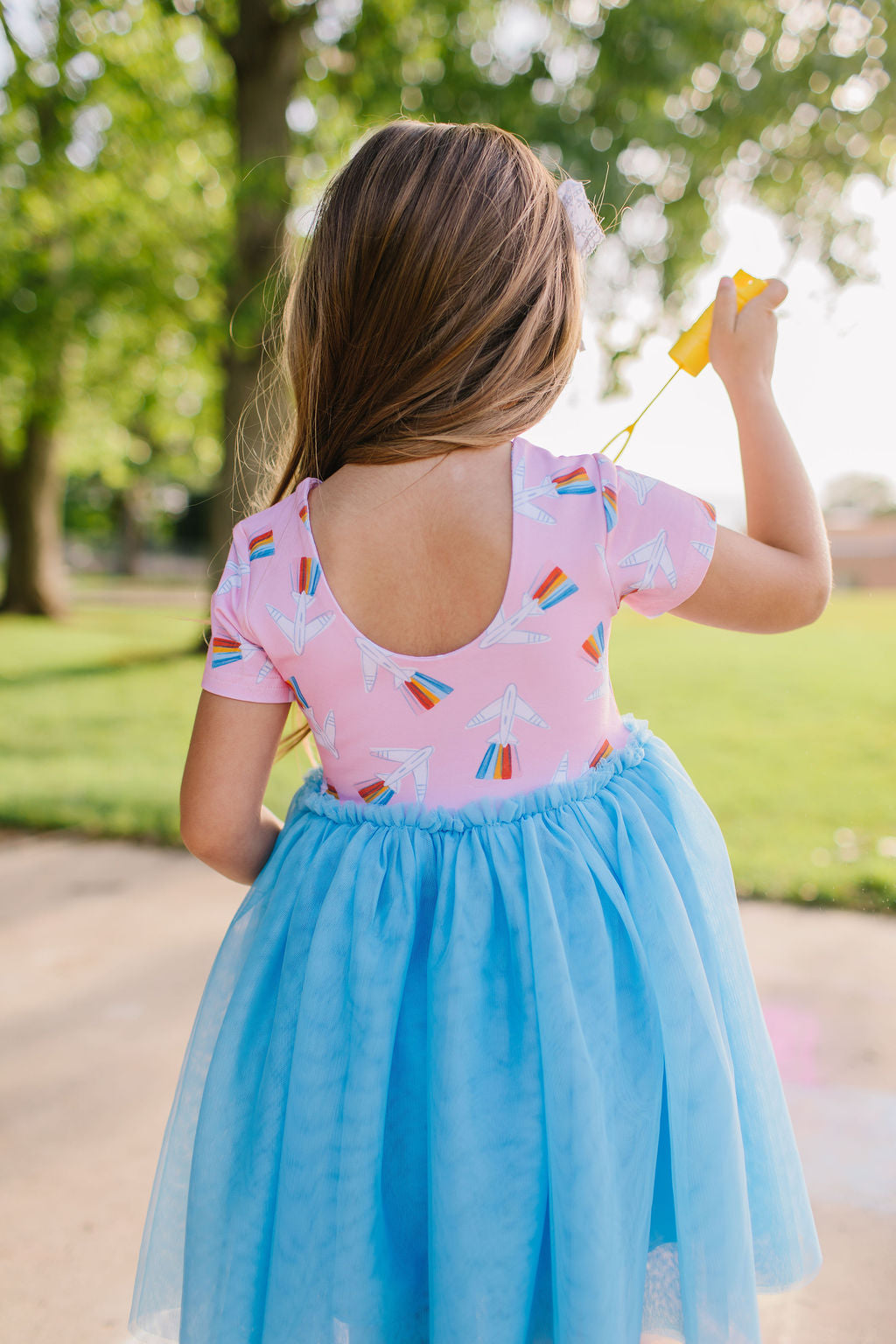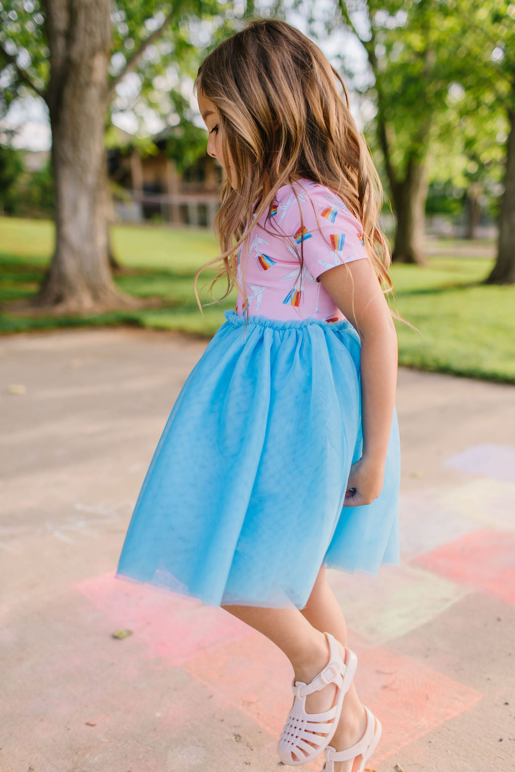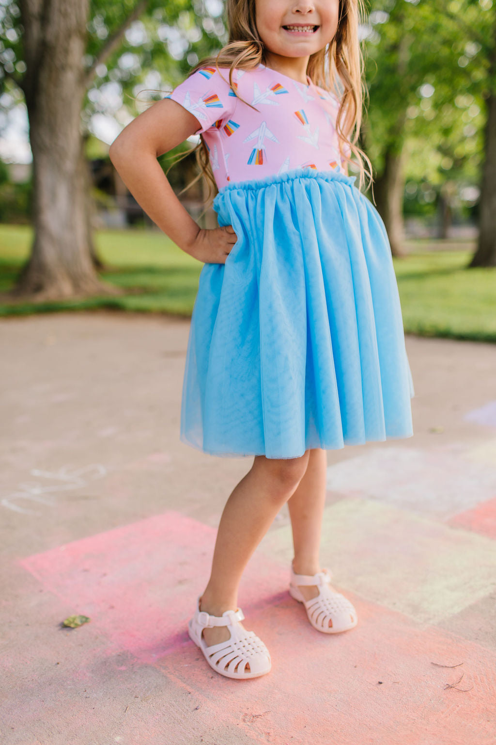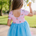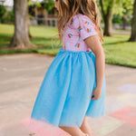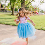 Our Tutu Dress is perfect for little ones who love to twirl and sparkle! Featuring a classic short sleeve printed bodice made from our signature extra soft cotton-spandex blend, this dress is as comfortable as it is magical. The scoop back adds a sweet touch, while the four layers of soft, full tulle create a dreamy, voluminous skirt made for twirling.