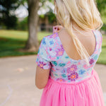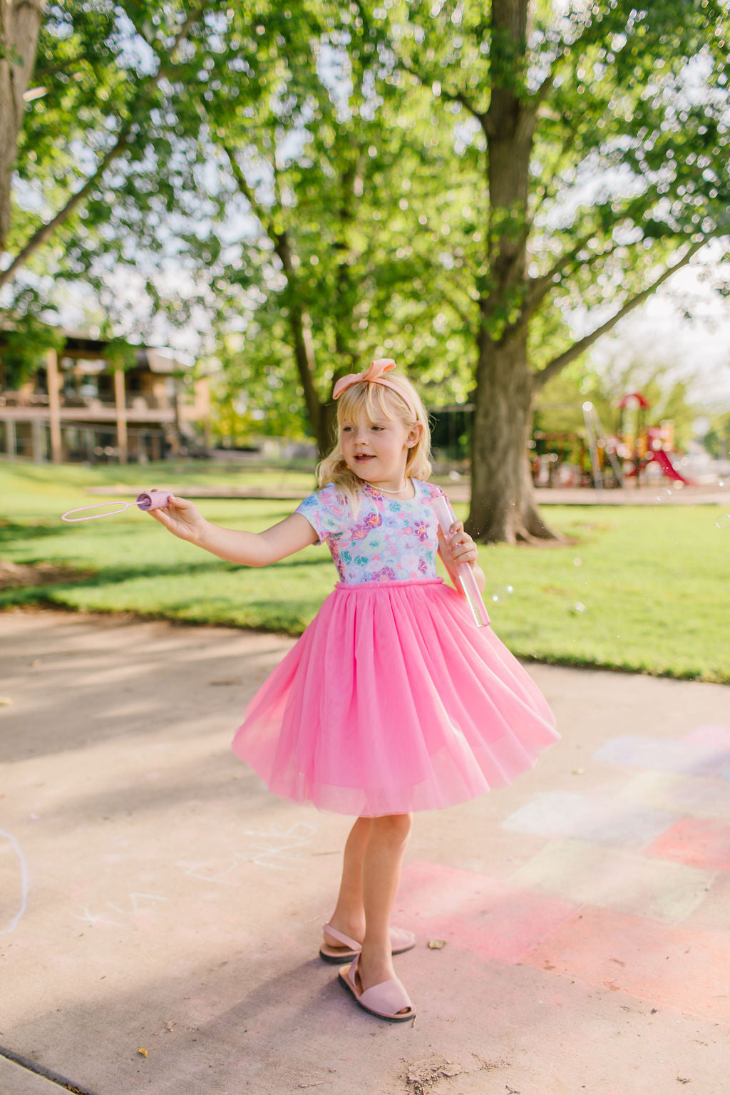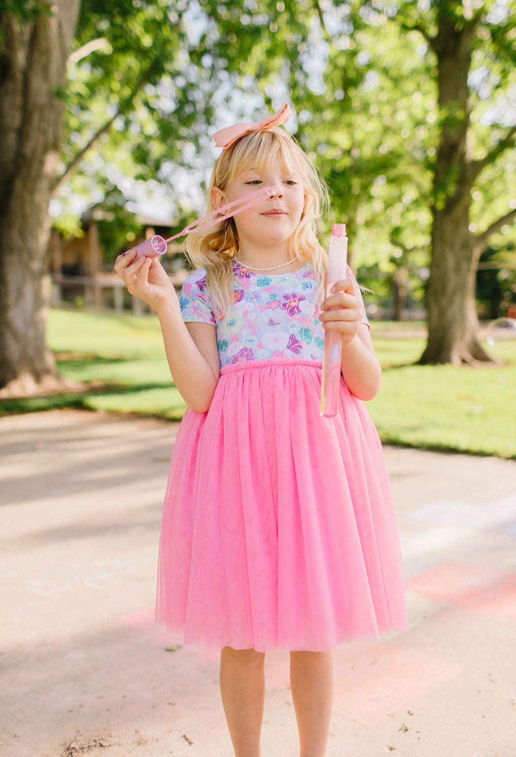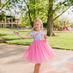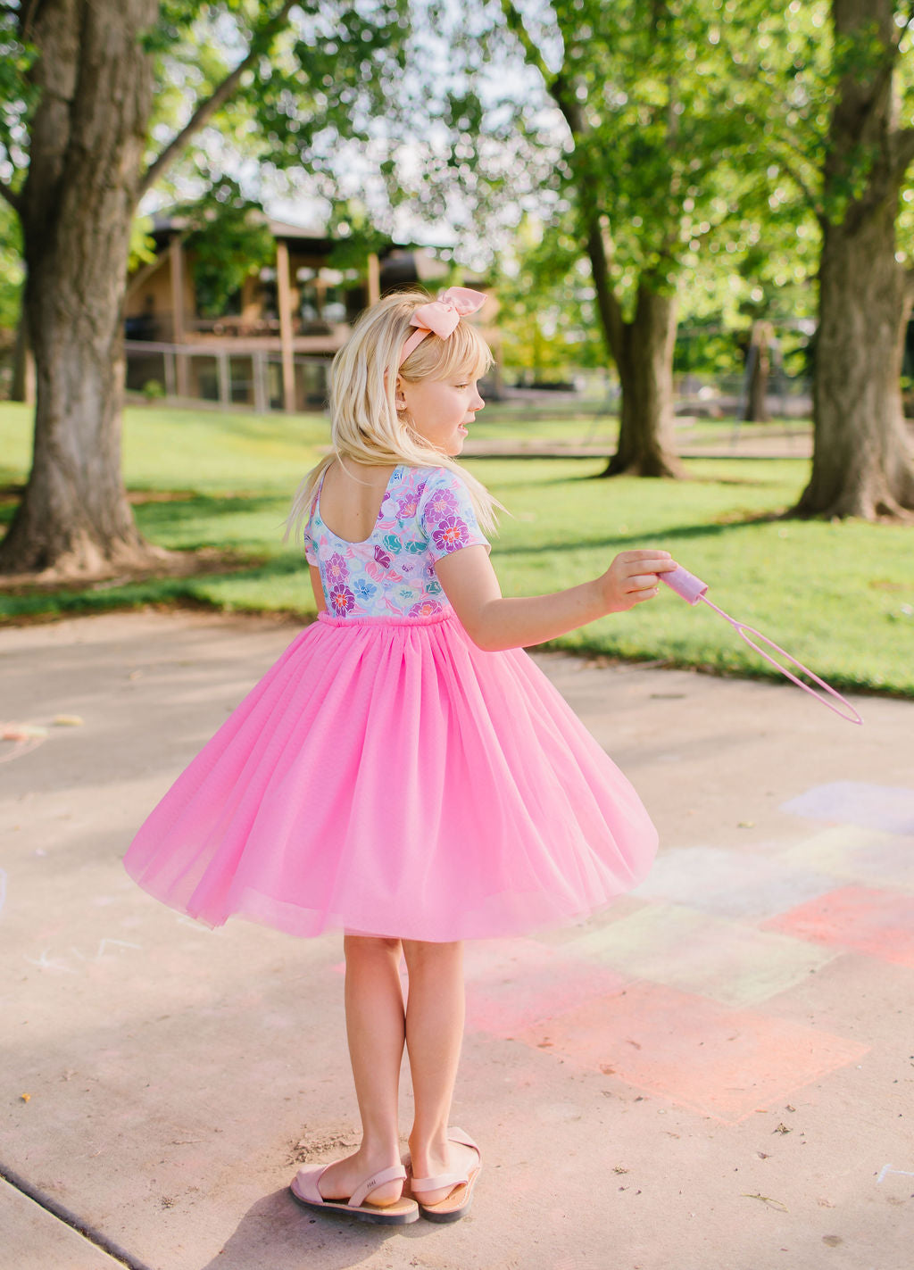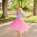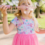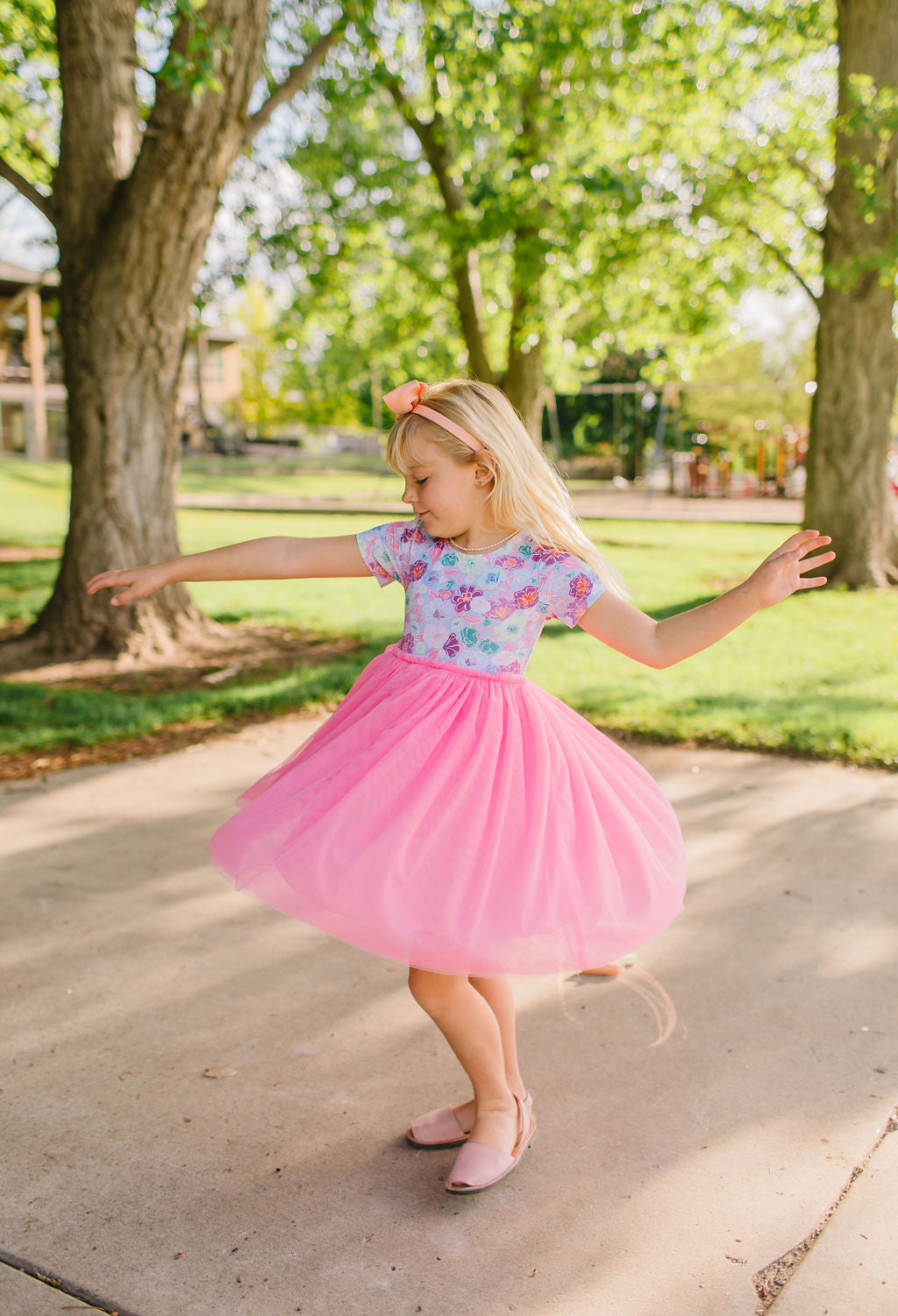 Our Tutu Dress is perfect for little ones who love to twirl and sparkle! Featuring a classic short sleeve printed bodice made from our signature extra soft cotton-spandex blend, this dress is as comfortable as it is magical. The scoop back adds a sweet touch, while the four layers of soft, full tulle create a dreamy, voluminous skirt made for twirling.