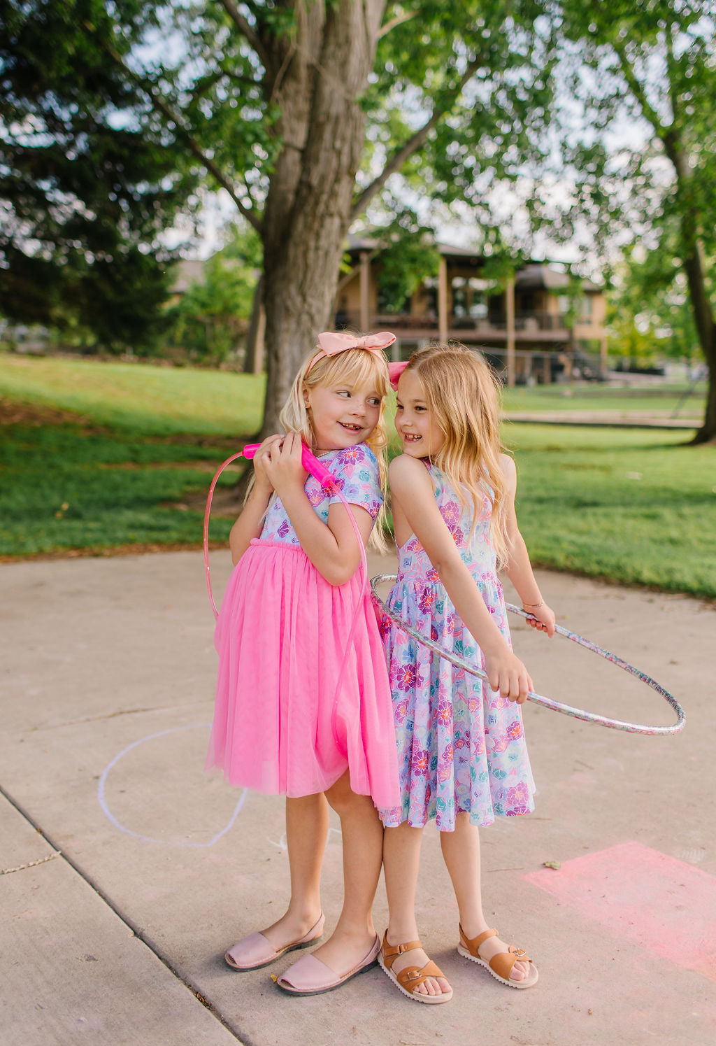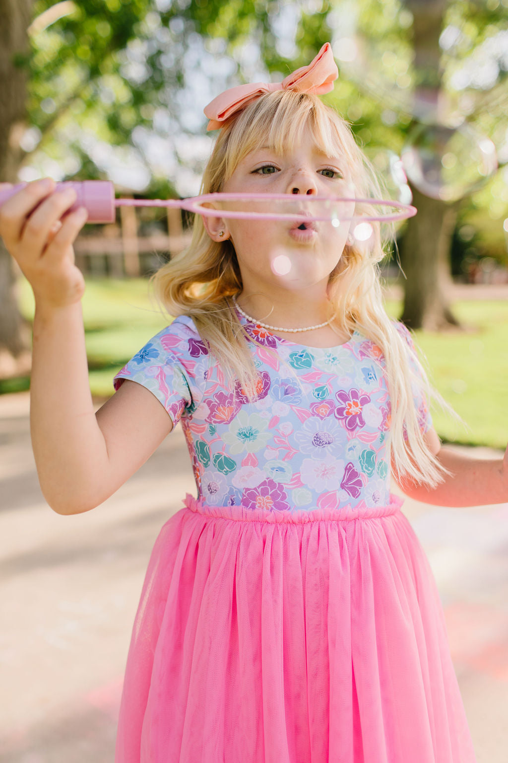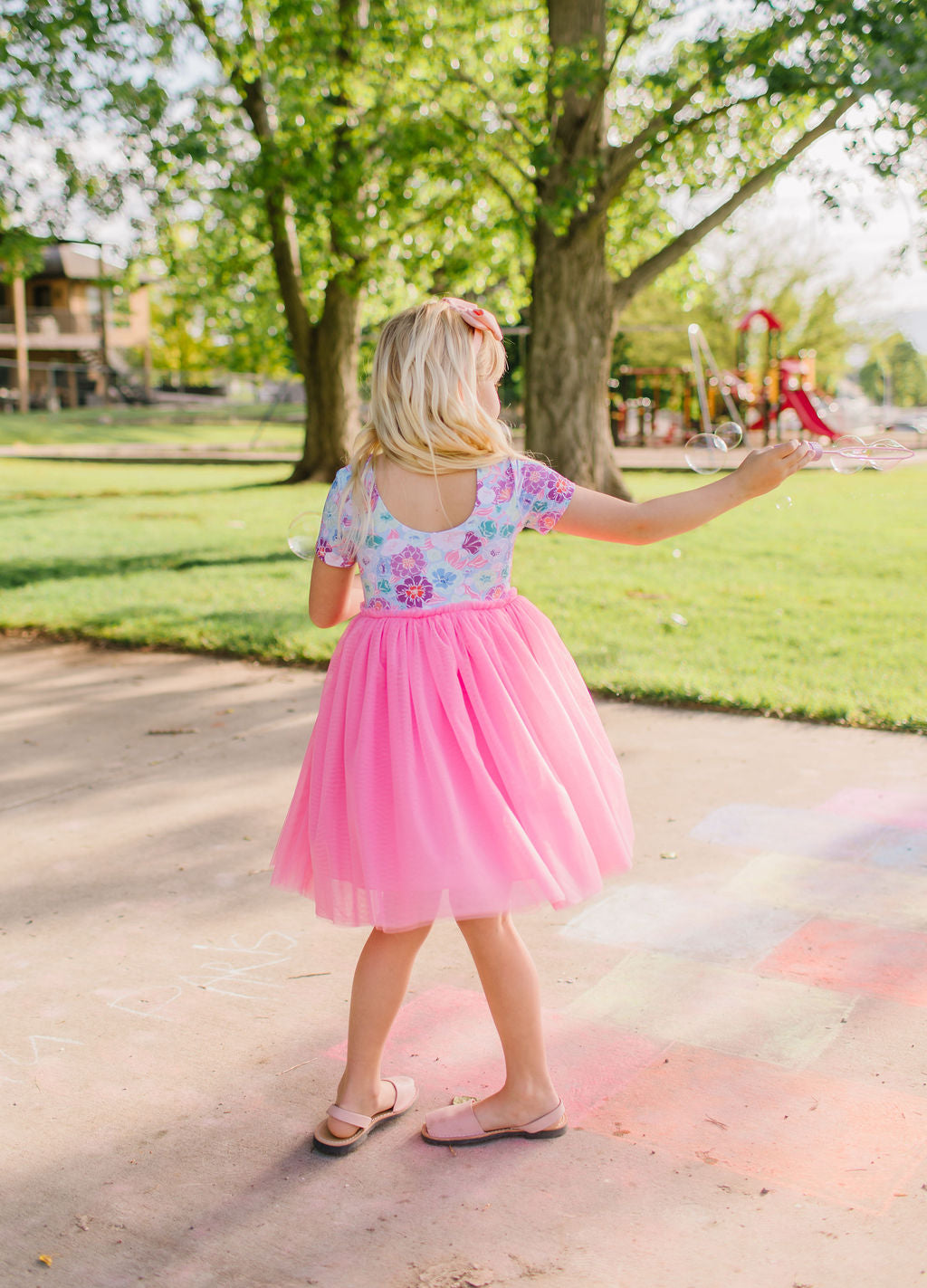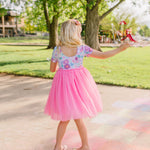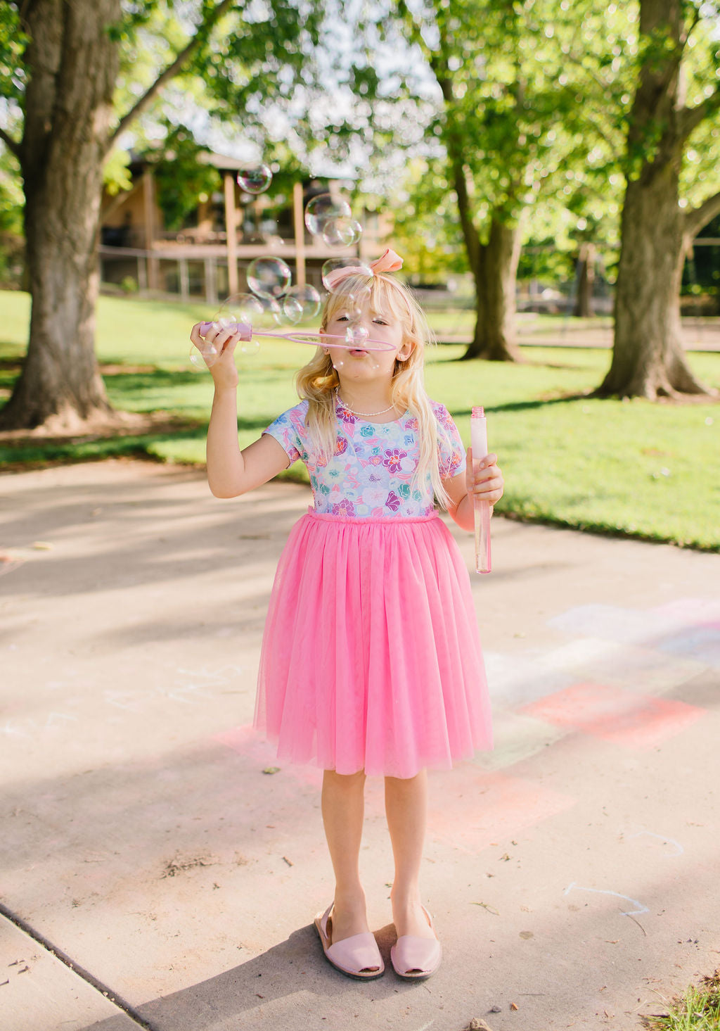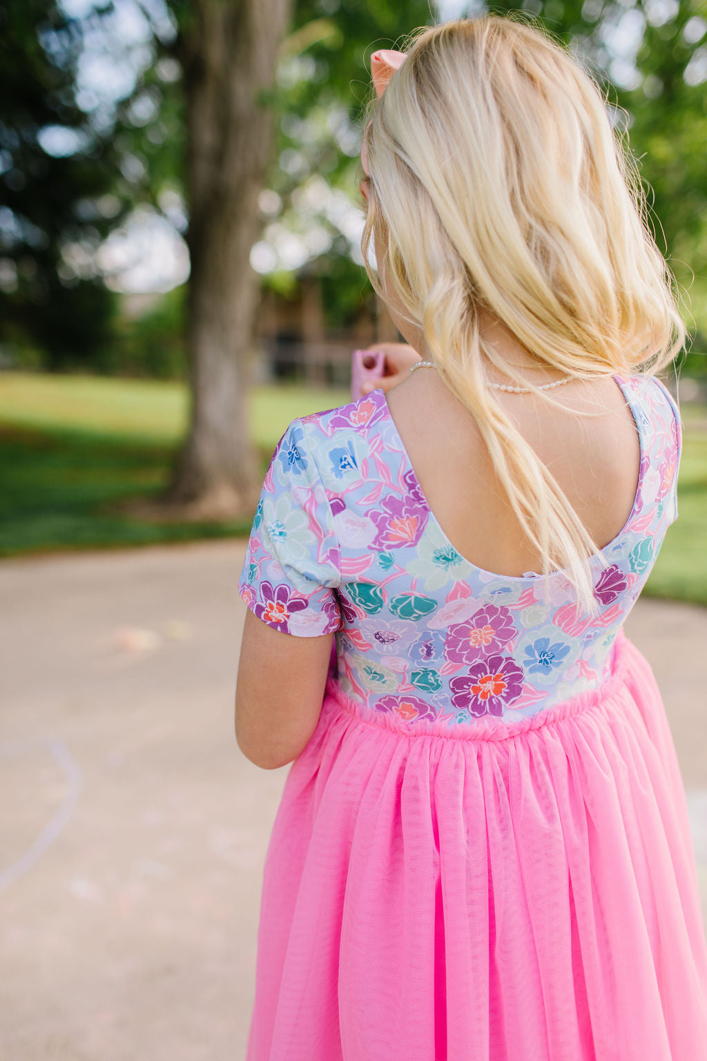 Our Tutu Dress is perfect for little ones who love to twirl and sparkle! Featuring a classic short sleeve printed bodice made from our signature extra soft cotton-spandex blend, this dress is as comfortable as it is magical. The scoop back adds a sweet touch, while the four layers of soft, full tulle create a dreamy, voluminous skirt made for twirling.