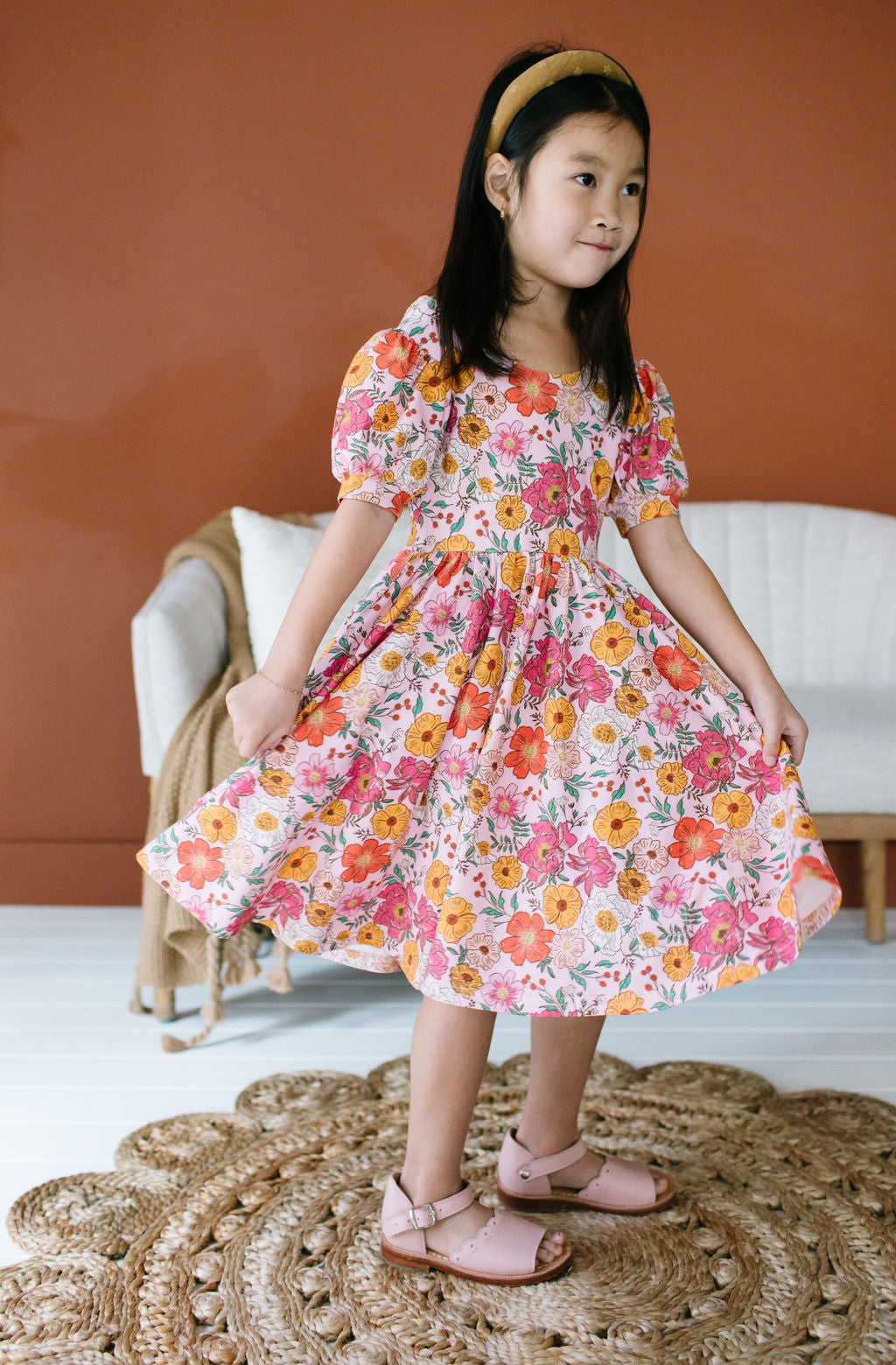With its flattering fit, delightful print, and functional details, this dress is sure to become a beloved wardrobe staple for any little one who loves to twirl.