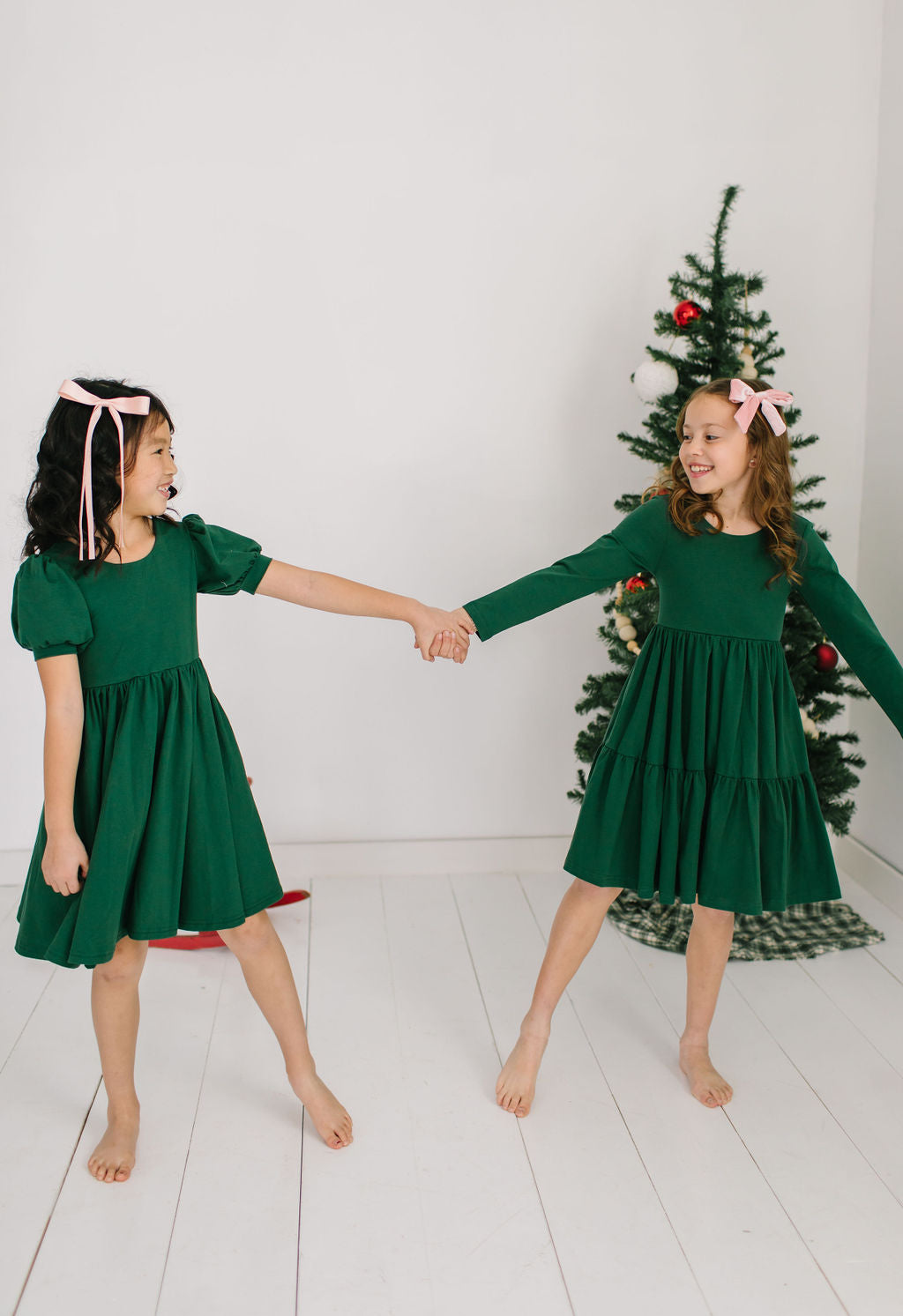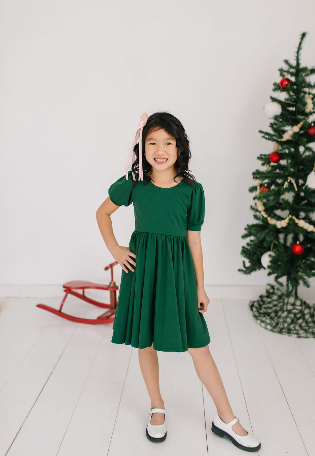 The Puff Dress is a ballet inspired style featuring soft, comfortable puffy short sleeves, a graceful scoop back, and a full circle twirl skirt that's perfect for play and dance. Thoughtfully designed with hidden pockets in the seams and crafted from our signature super soft fabric, this dress effortlessly blends style with practicality.