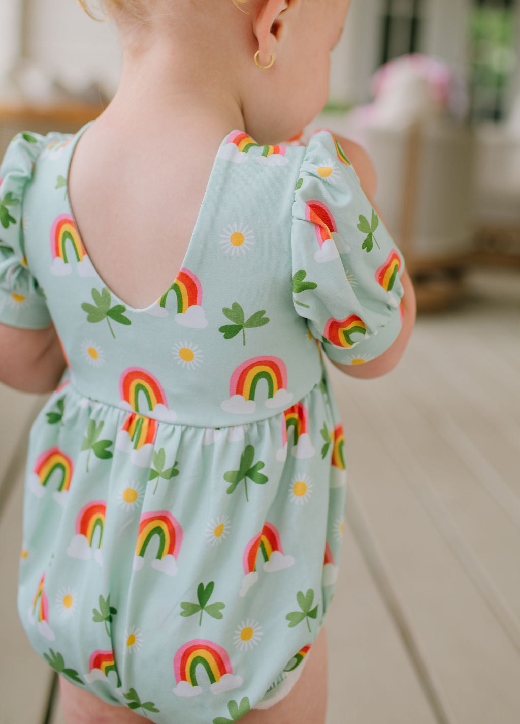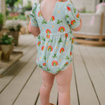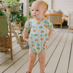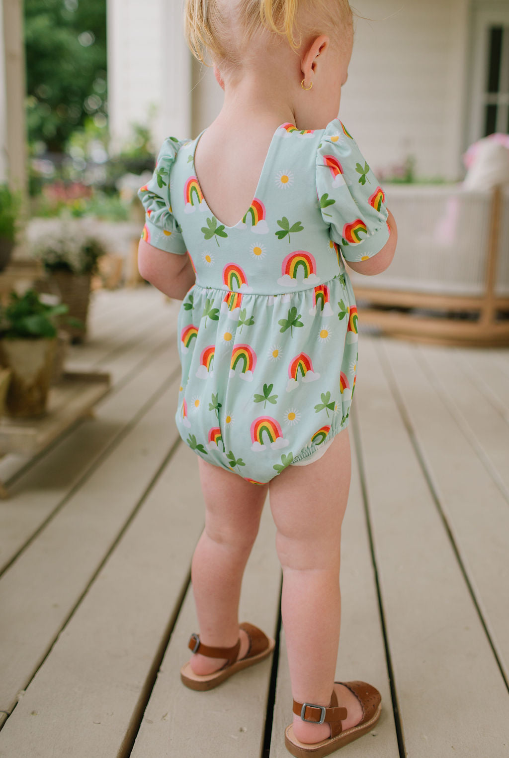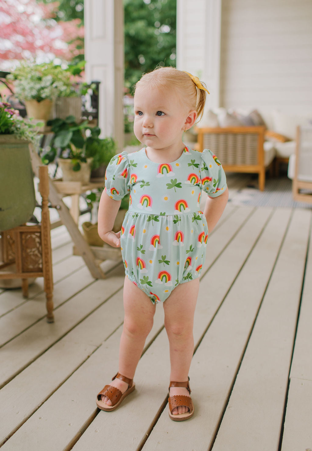 The Puff Baby Bubble romper features charming short puffy sleeves accented with a thick flat stretchy elastic band detail for a cute and comfortable fit. Relaxed-fit bottoms offer plenty of room for play, and a convenient 3-snap closure makes diaper changes easy.