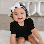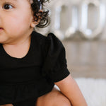The Puff Baby Bubble romper features charming short puffy sleeves accented with a thick flat stretchy elastic band detail for a cute and comfortable fit. Relaxed-fit bottoms offer plenty of room for play, and a convenient 3-snap closure makes diaper changes easy.