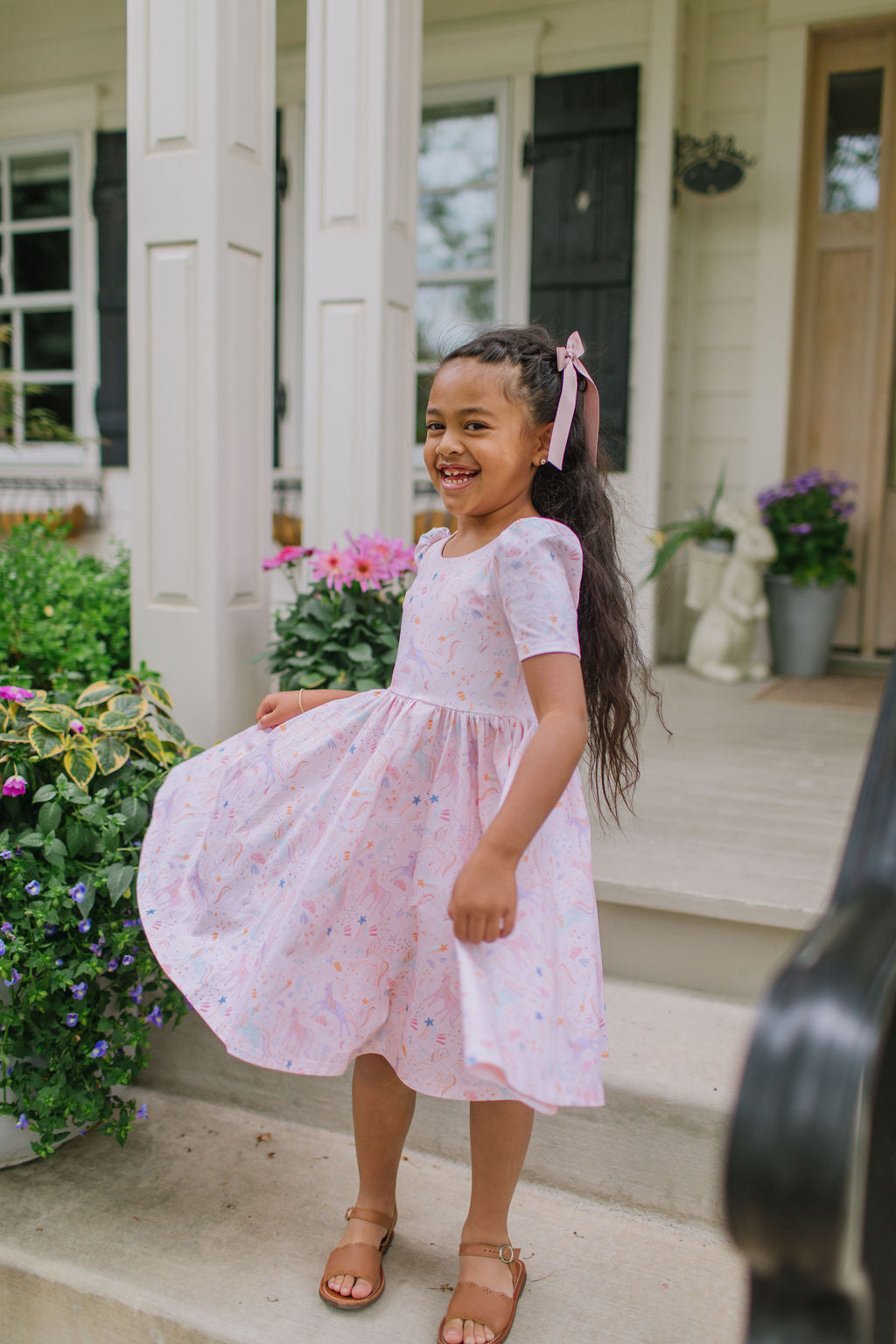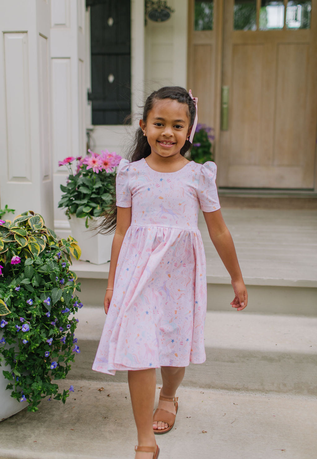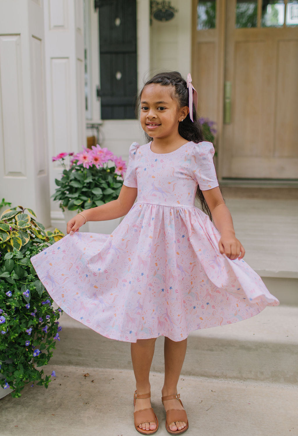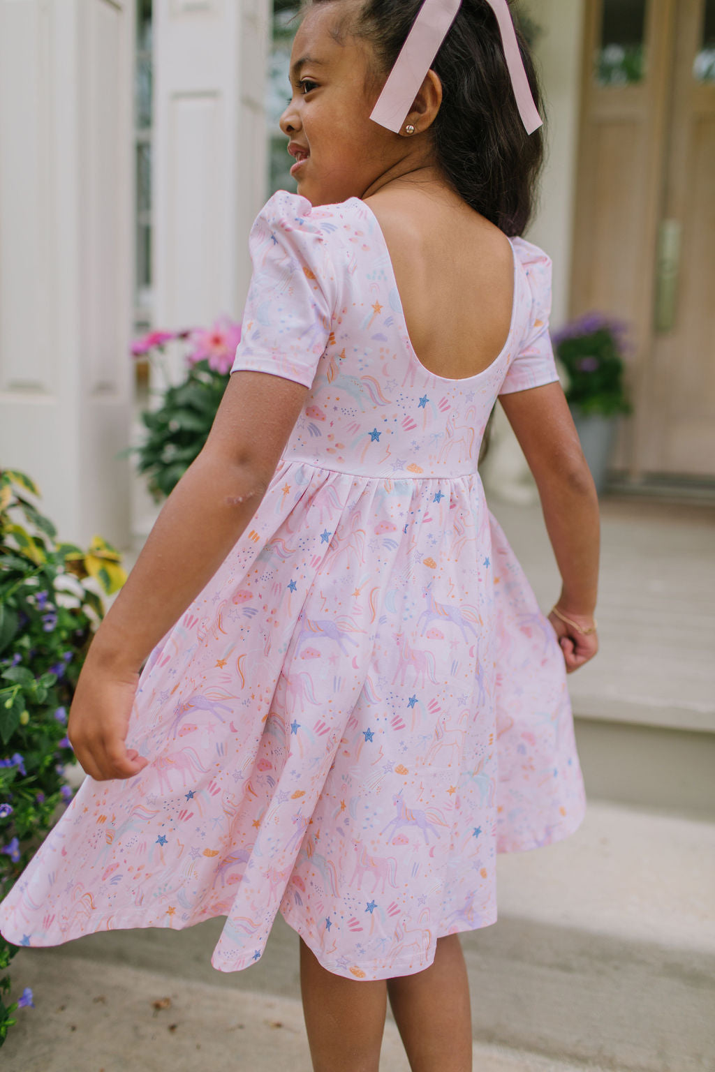 With its flattering fit, delightful print, and functional details, this dress is sure to become a beloved wardrobe staple for any little one who loves to twirl.