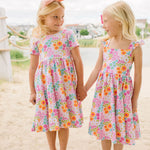 The Rosita Dress is a ruffled pinafore style dress that adds a fun, flirty twist to our signature ballet-inspired twirl dress. Made with extra soft and stretchy fabric, it features charming ruffles, practical side seam pockets, a double-lined bodice, and a full circle skirt designed for those perfect big twirls we’re famous for!