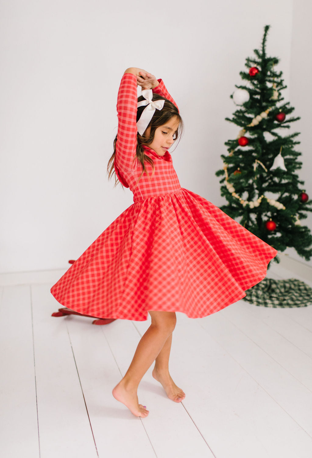 The Rubina Twirl features a sweet and simple silhouette with a wrap-around collar and a charming scoop back. The lined bodice offers extra comfort and coverage, while hidden inseam pockets add practicality. The full circle skirt delivers the perfect twirl for endless play and fun!