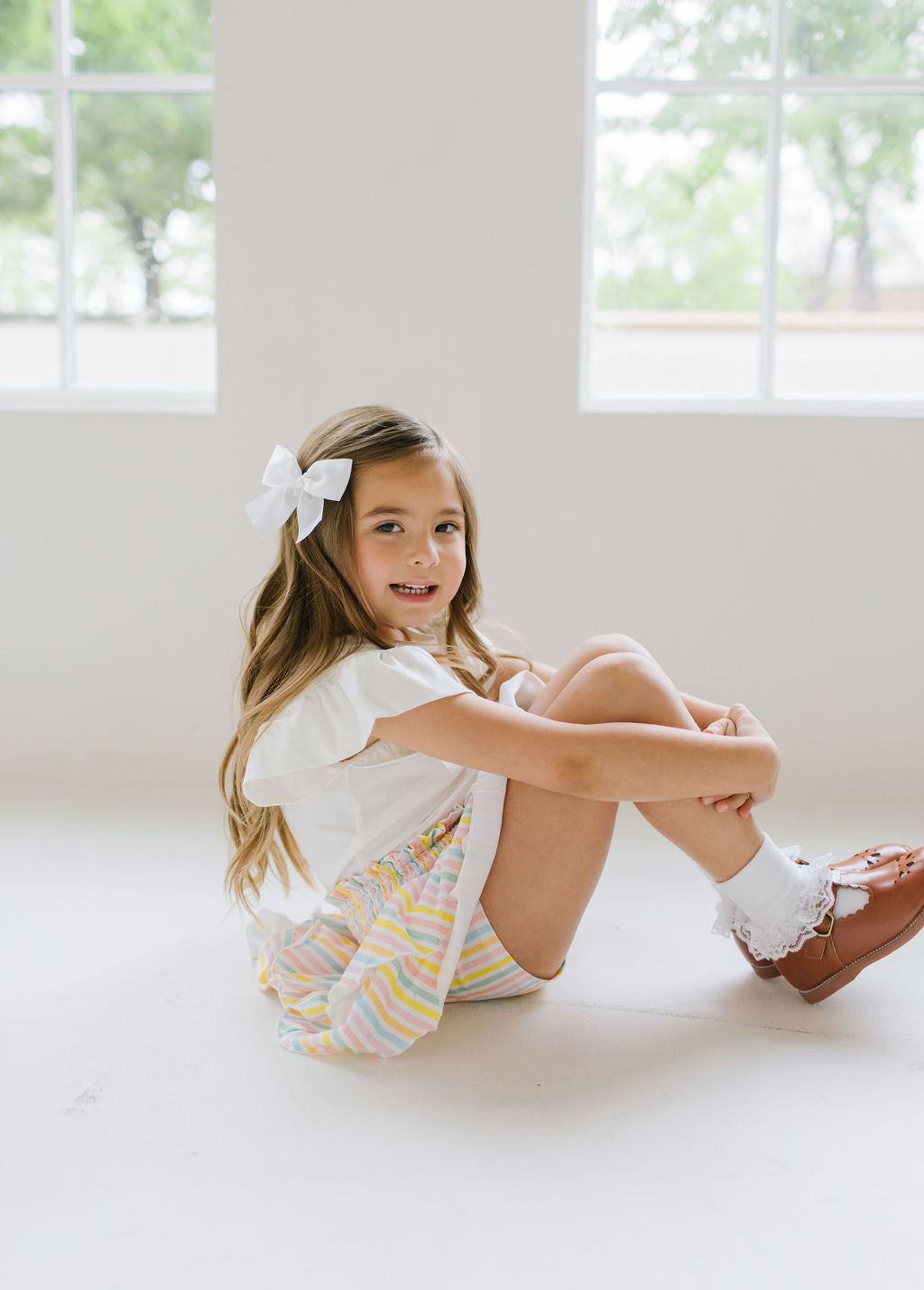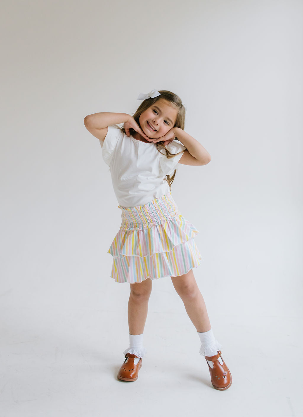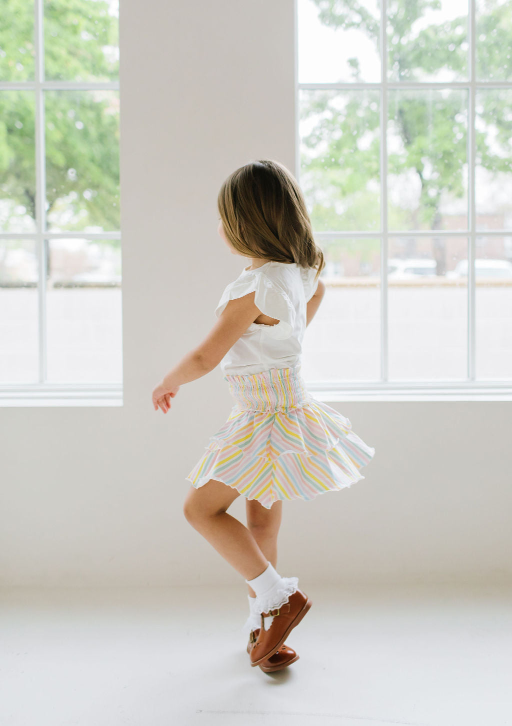 A fun and easy essential, our Ruffle Skort is made from our signature extra soft and stretchy fabric, perfect for play, twirls, and everyday adventures. Featuring a smocked elastic waistband for all-day comfort and extended wear, and a layered fabric skirt overlay, this skort combines style and practicality in one sweet piece.