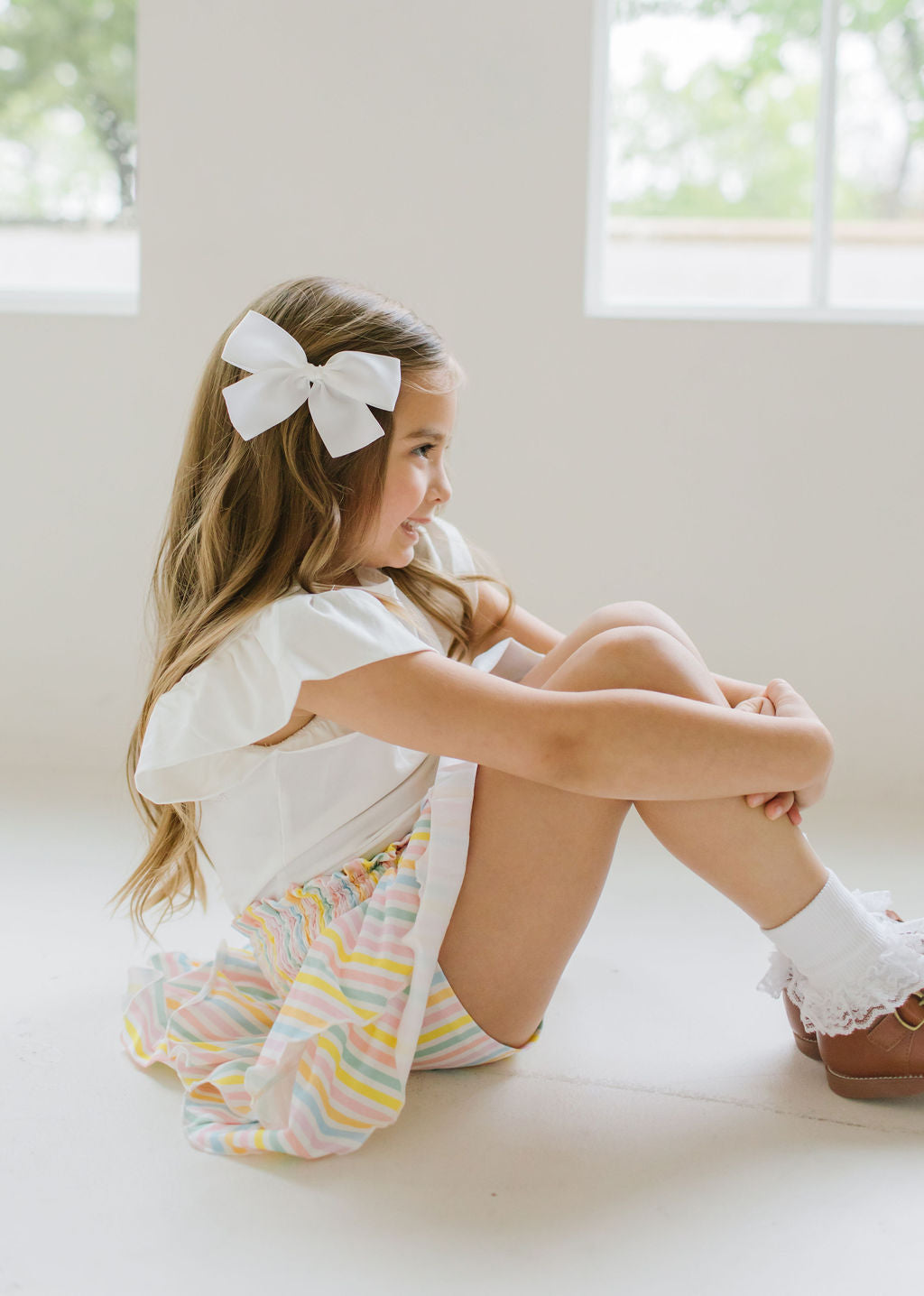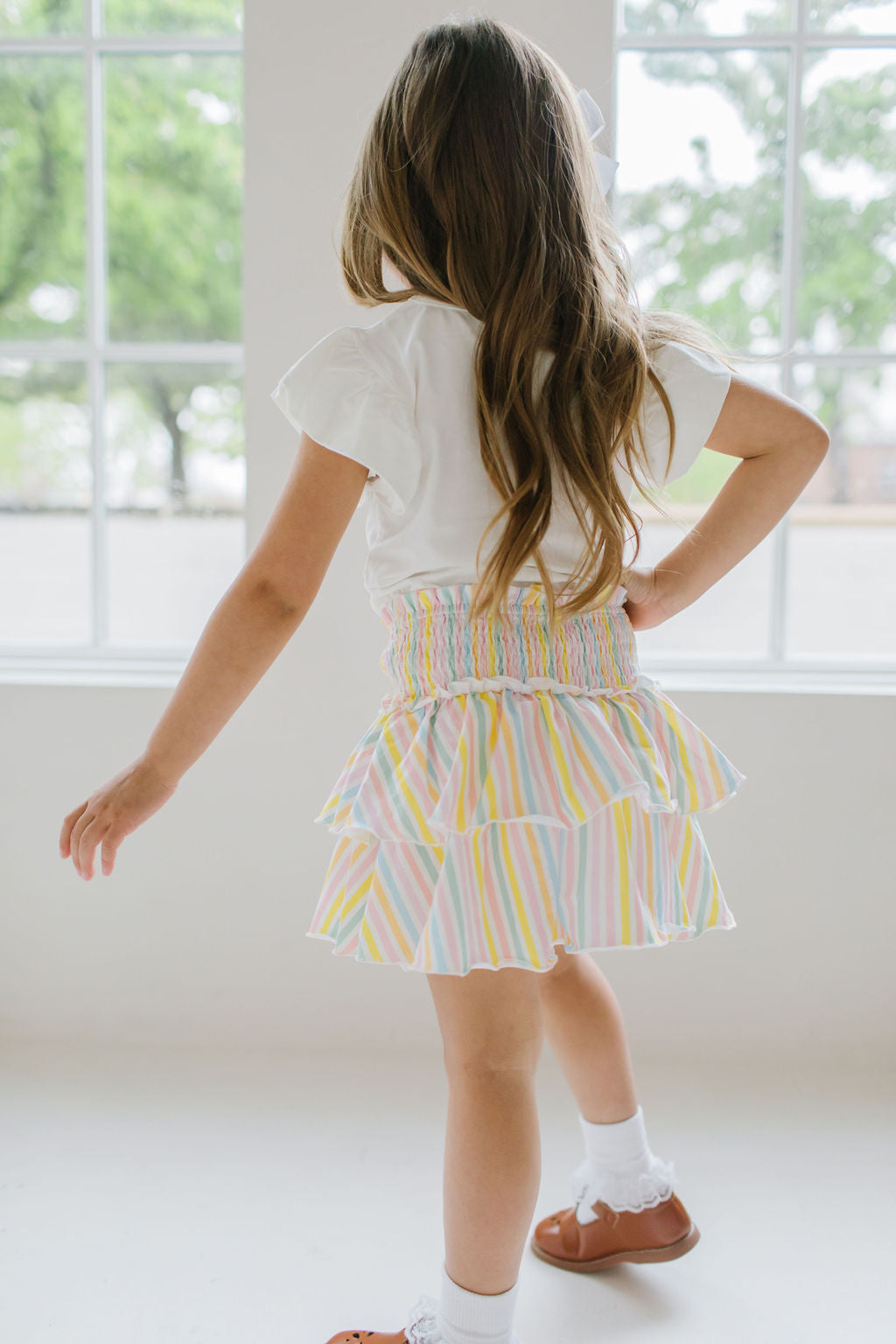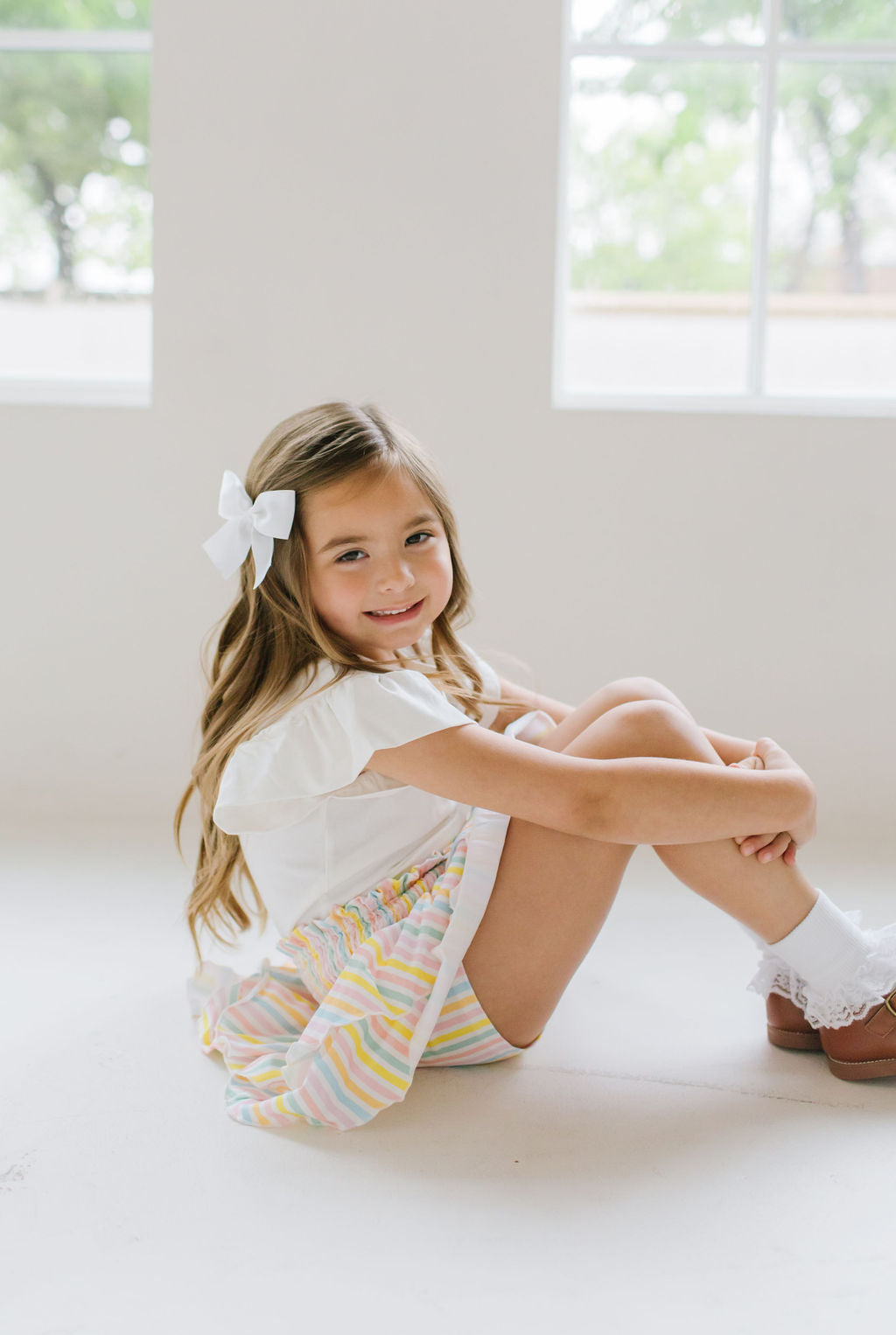 A fun and easy essential, our Ruffle Skort is made from our signature extra soft and stretchy fabric, perfect for play, twirls, and everyday adventures. Featuring a smocked elastic waistband for all-day comfort and extended wear, and a layered fabric skirt overlay, this skort combines style and practicality in one sweet piece.