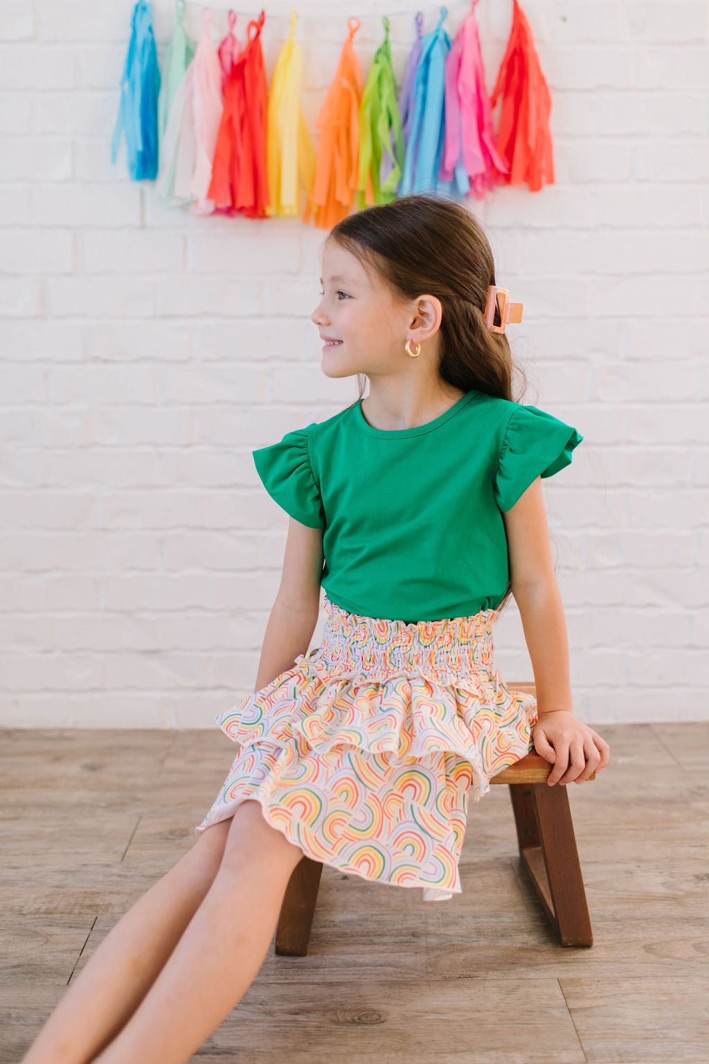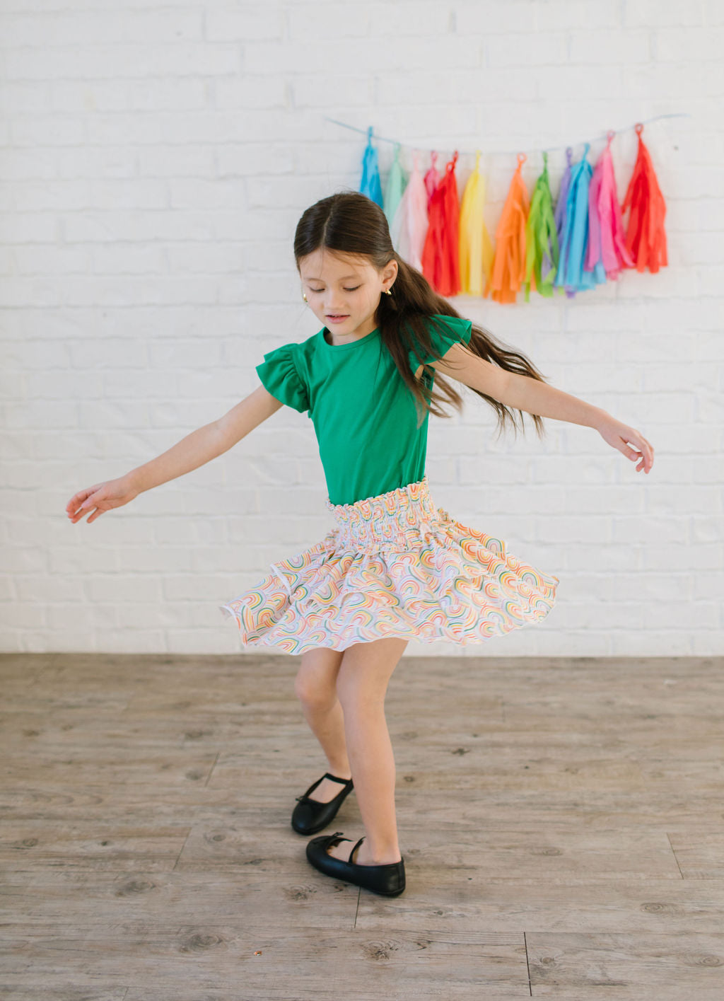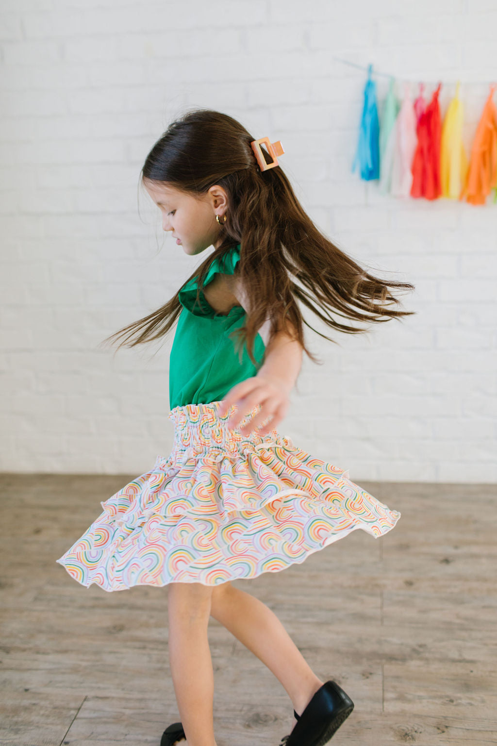 A fun and easy essential, our Ruffle Skirt is made from our signature extra soft and stretchy fabric, perfect for play, twirls, and everyday adventures. Featuring a smocked elastic waistband for all-day comfort and extended wear, and a layered fabric skirt overlay, this skirt combines style and practicality in one sweet piece.