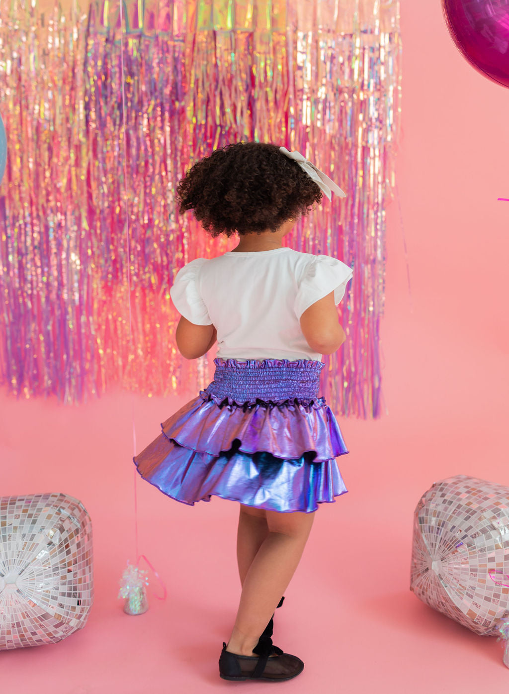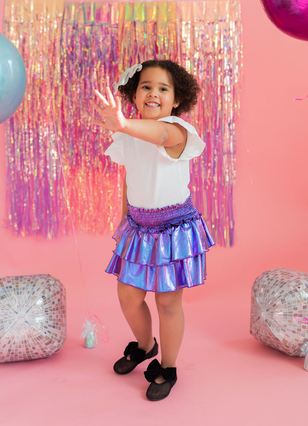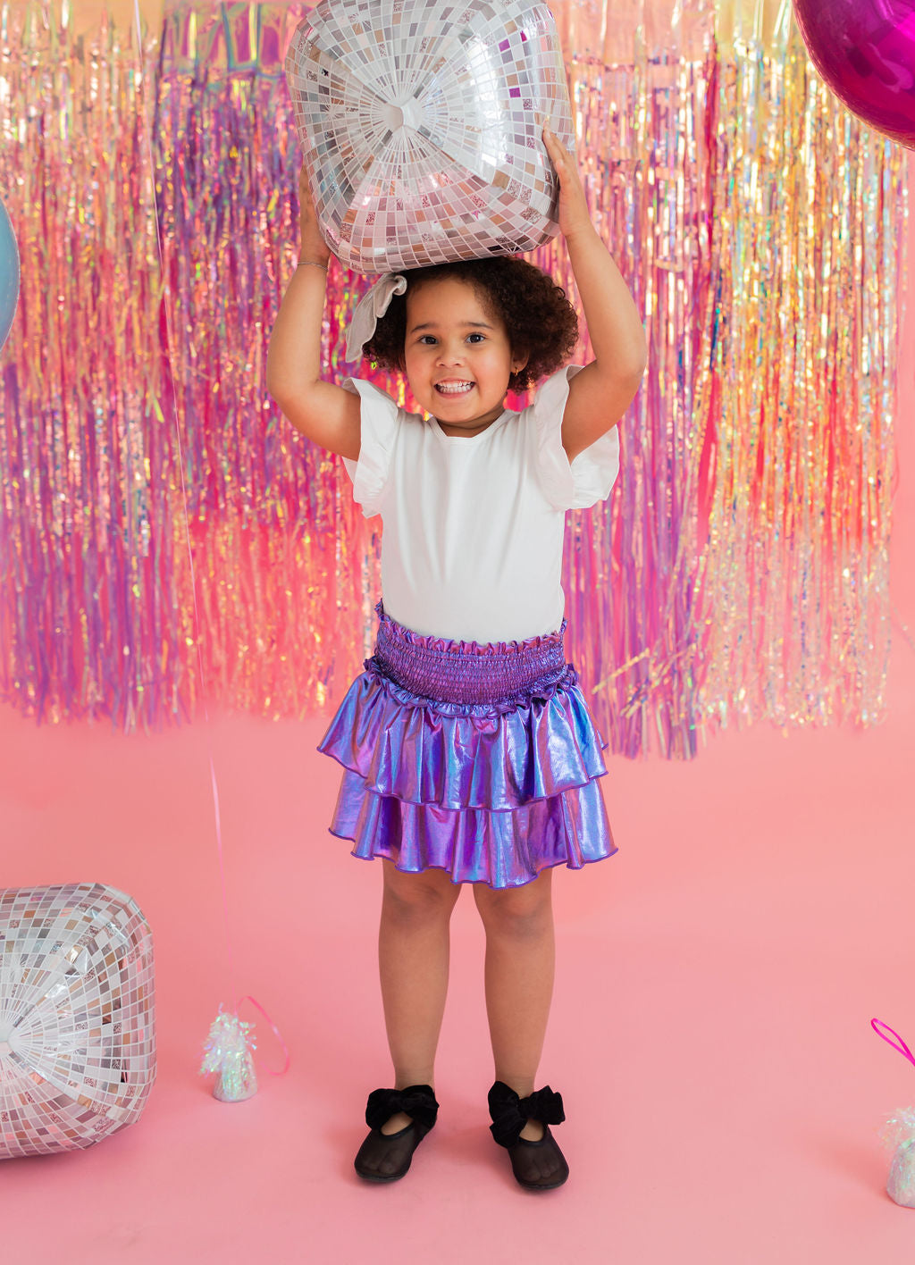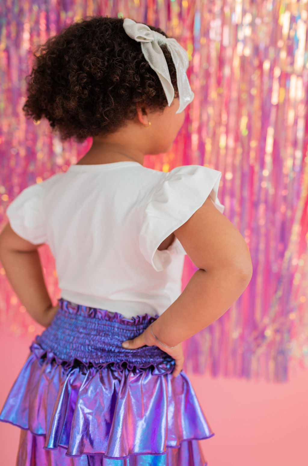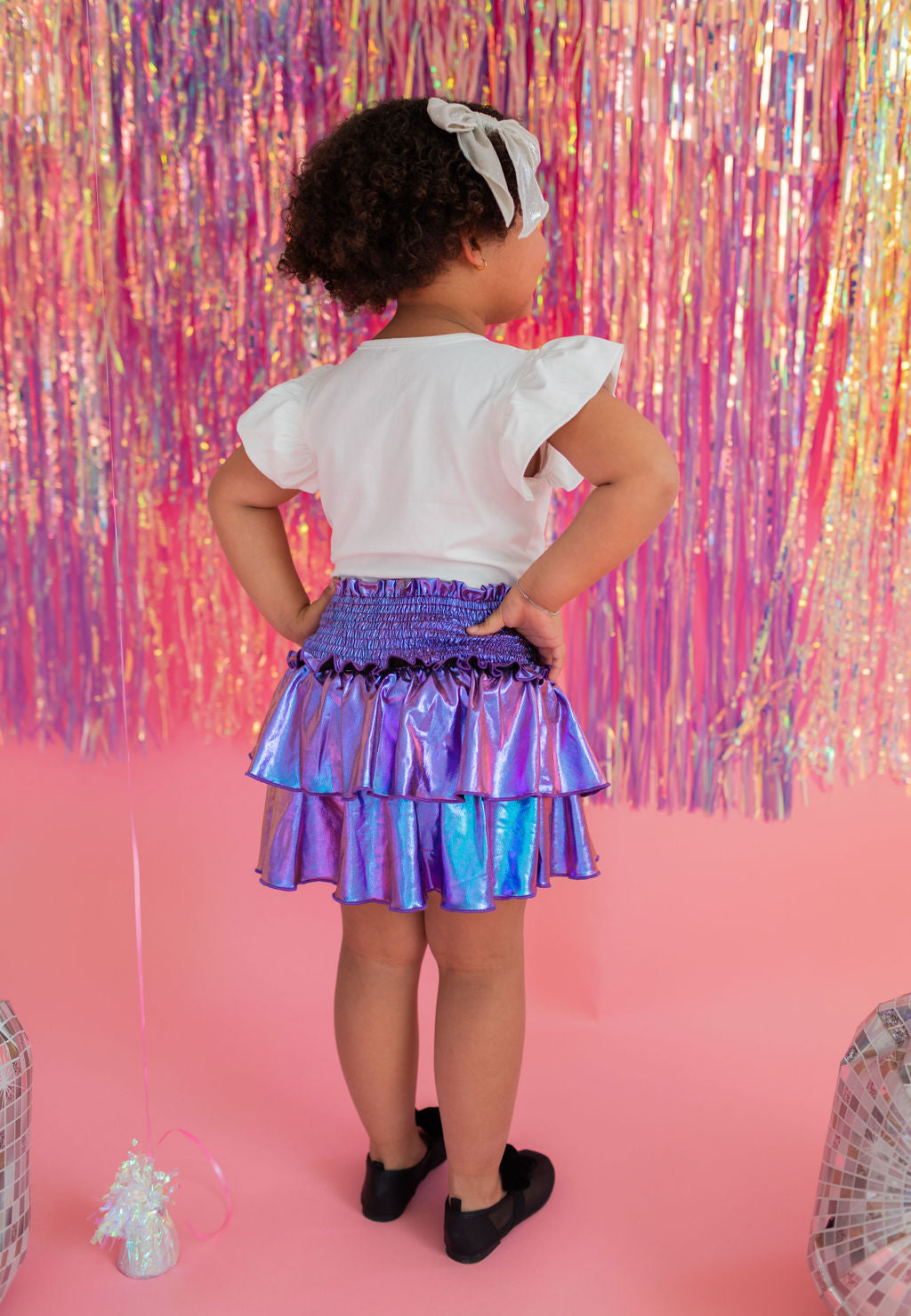 Add a little shimmer to their day with our Lamè Skirt! This fun and playful piece features a ruffled, shiny Lamè overlay with soft polyester shorts underneath for coverage and comfort. A comfortable smocked elastic waistband makes it easy to pull on and wear all day long. Perfect for parties, playdates, or adding sparkle to everyday looks.