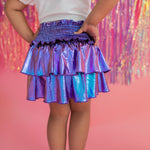 Ruffle Skort in Purple Lamè