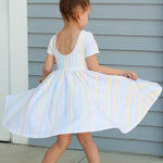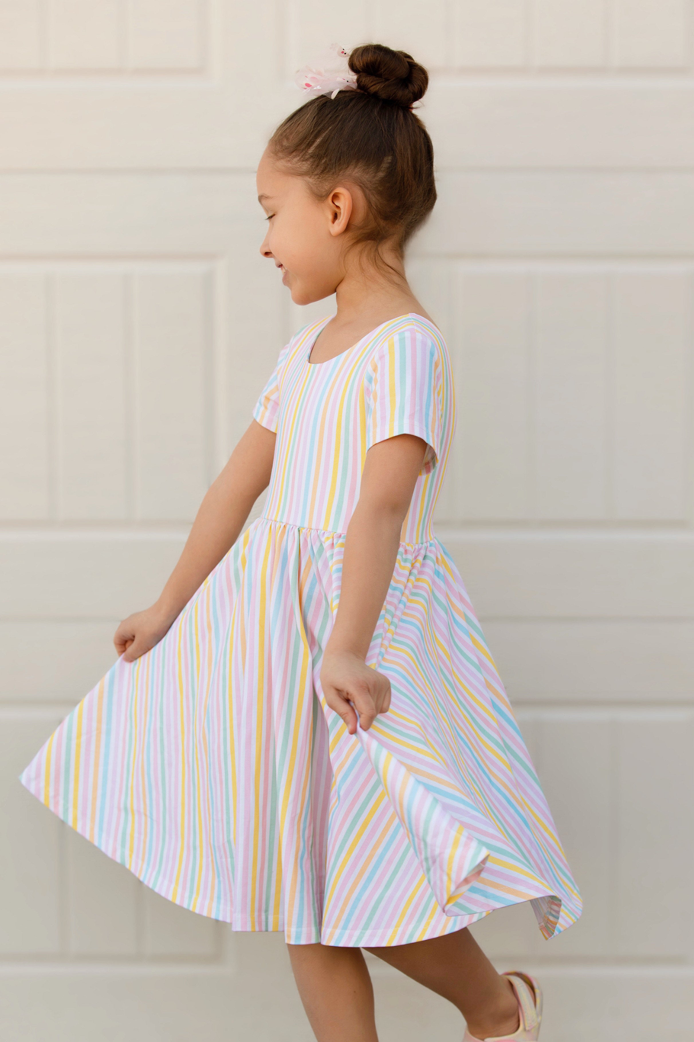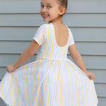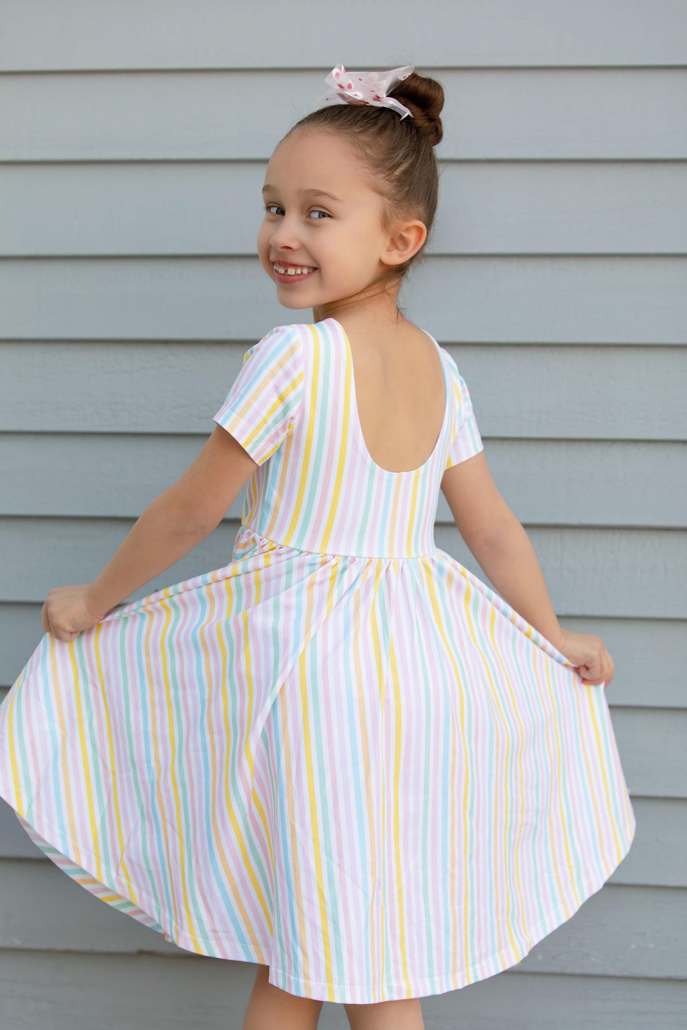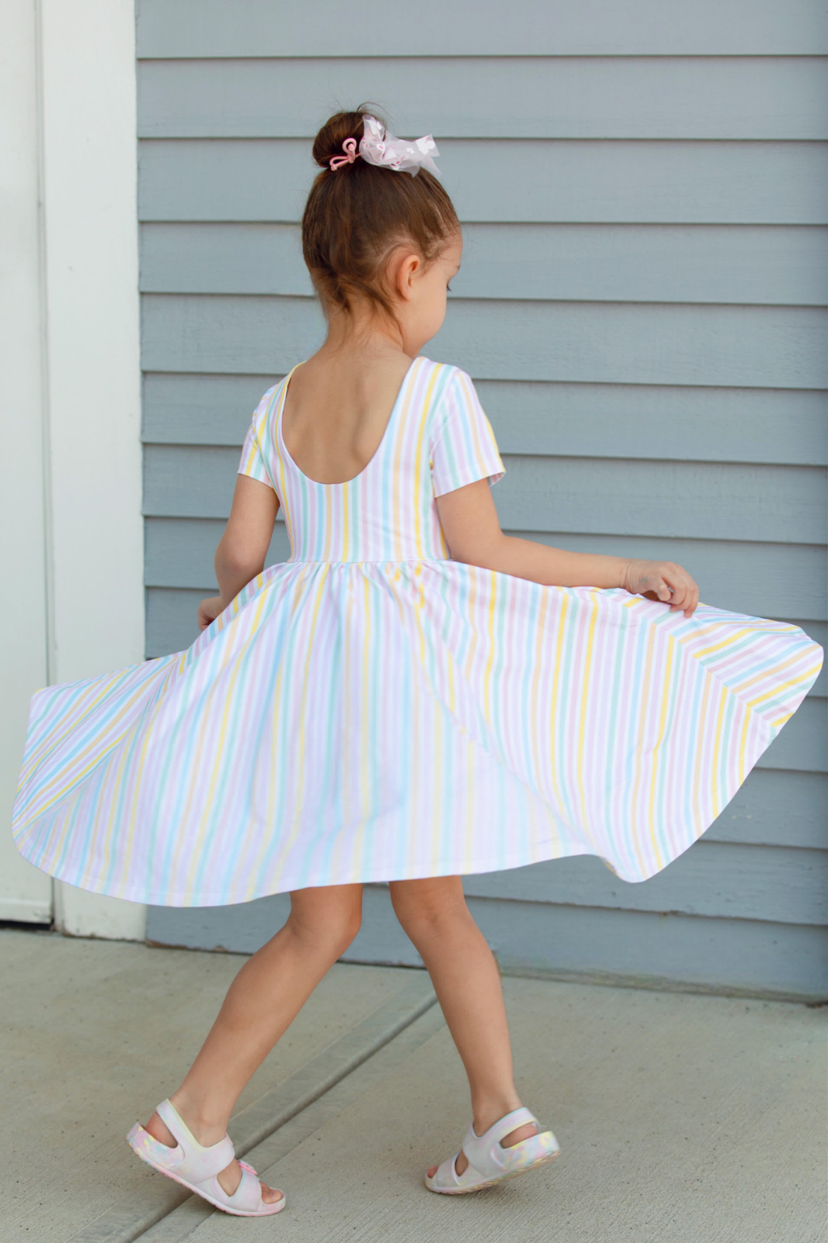 Our Classic Twirl Dress is all about timeless charm and everyday fun. Featuring a graceful scoop back, a lined bodice for comfort, and hidden inseam pockets to keep little treasures close, it’s designed for endless play and perfect twirls.