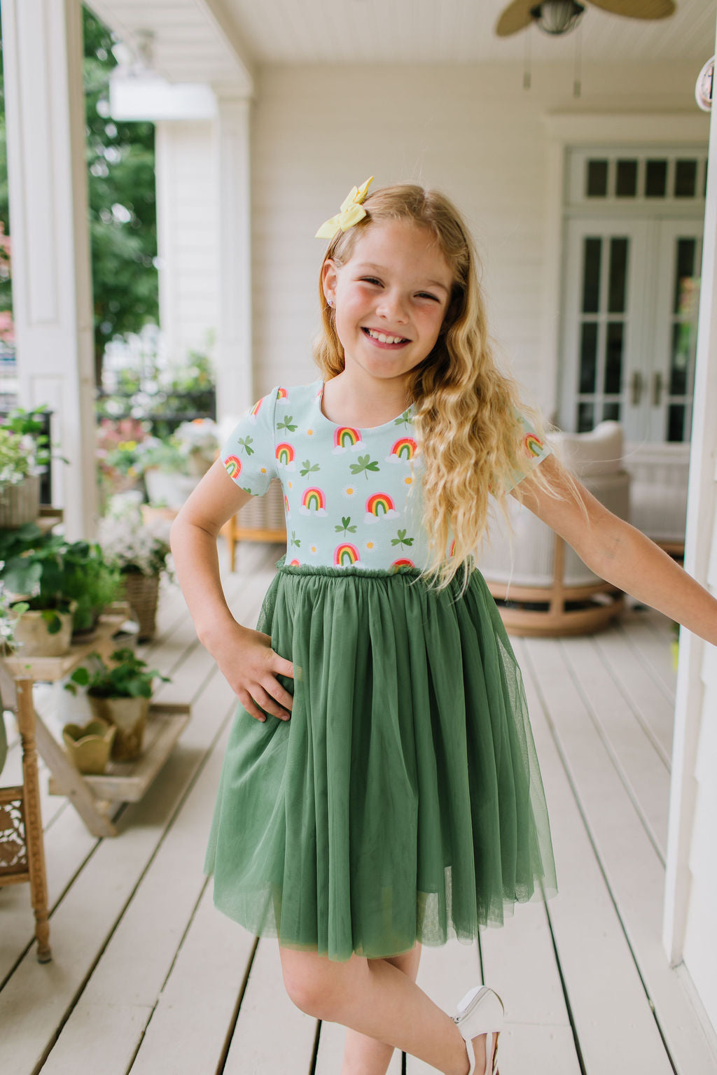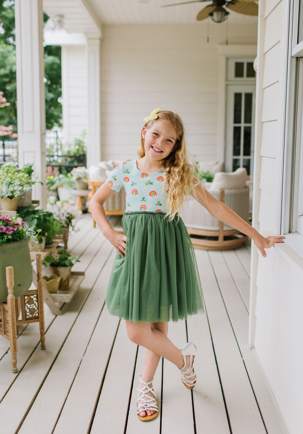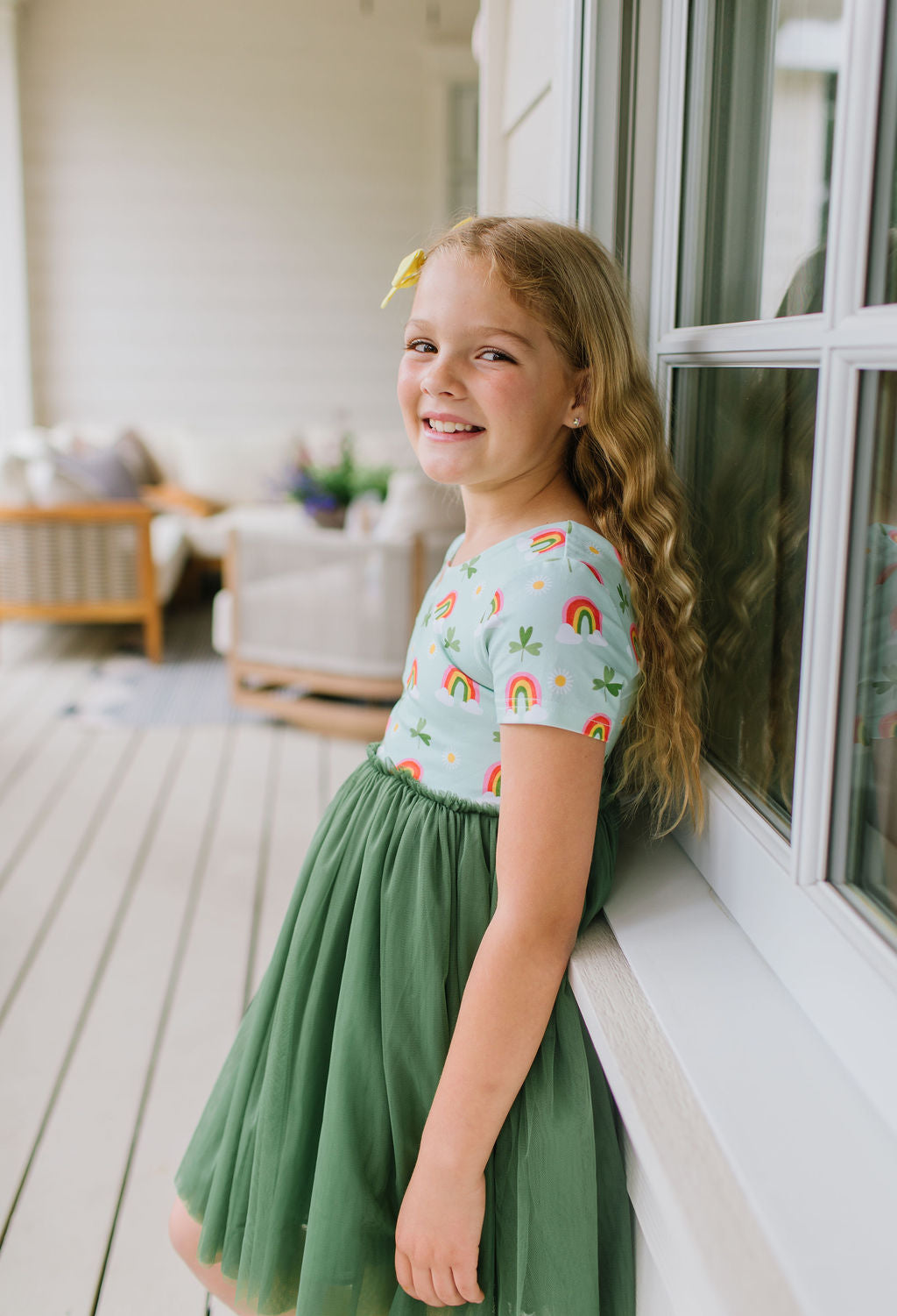 Our Tutu Dress is perfect for little ones who love to twirl and sparkle! Featuring a classic short sleeve printed bodice made from our signature extra soft cotton-spandex blend, this dress is as comfortable as it is magical. The scoop back adds a sweet touch, while the four layers of soft, full tulle create a dreamy, voluminous skirt made for twirling.
