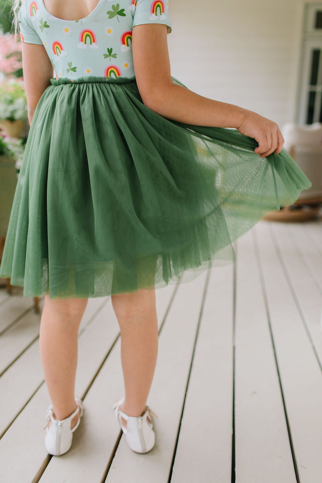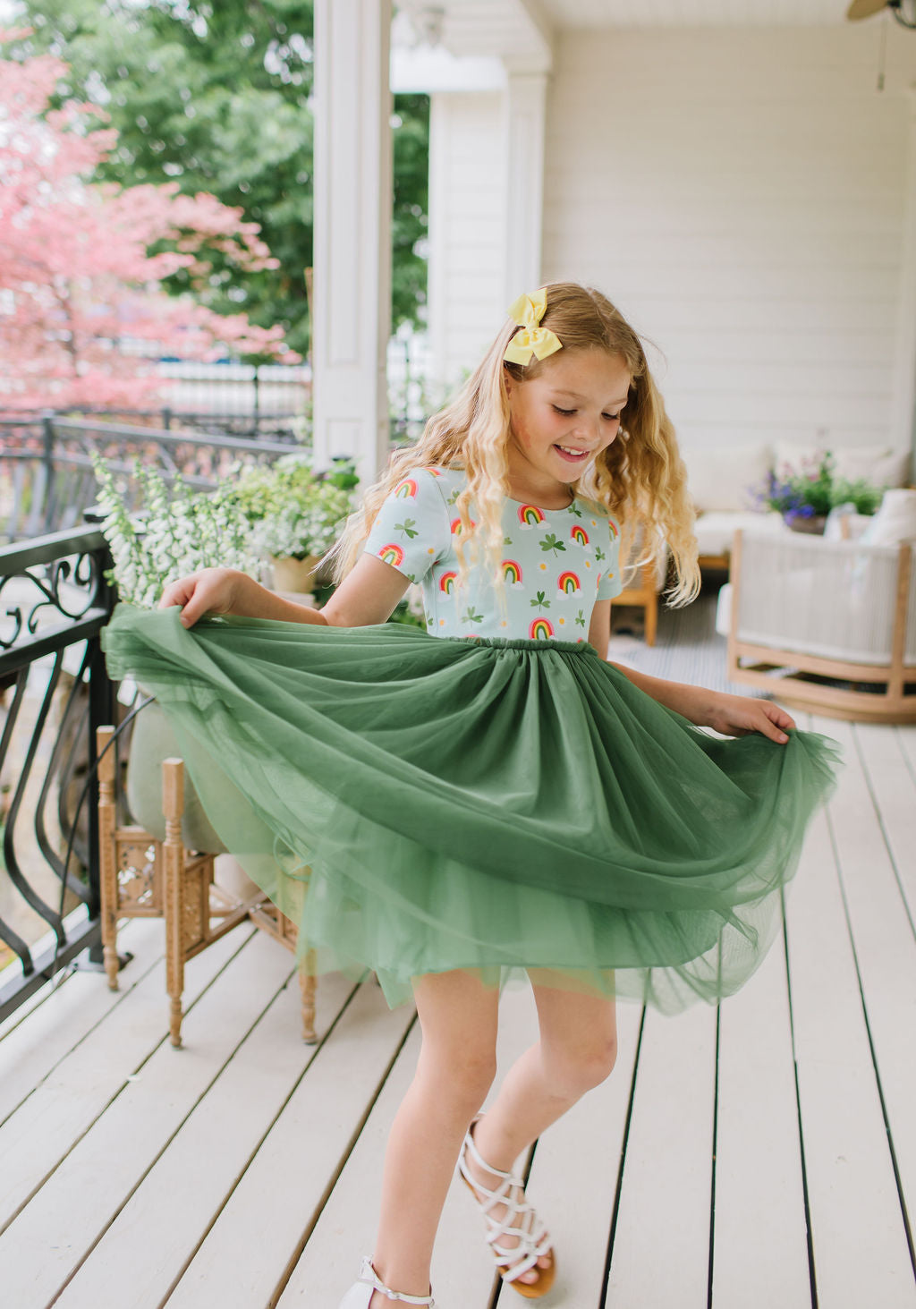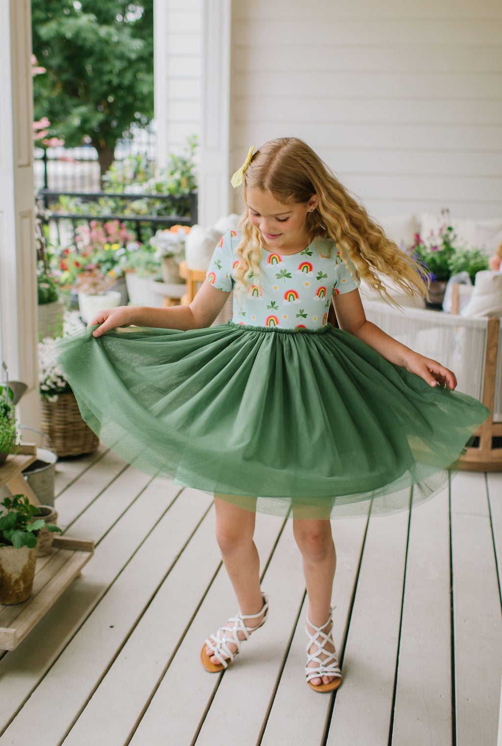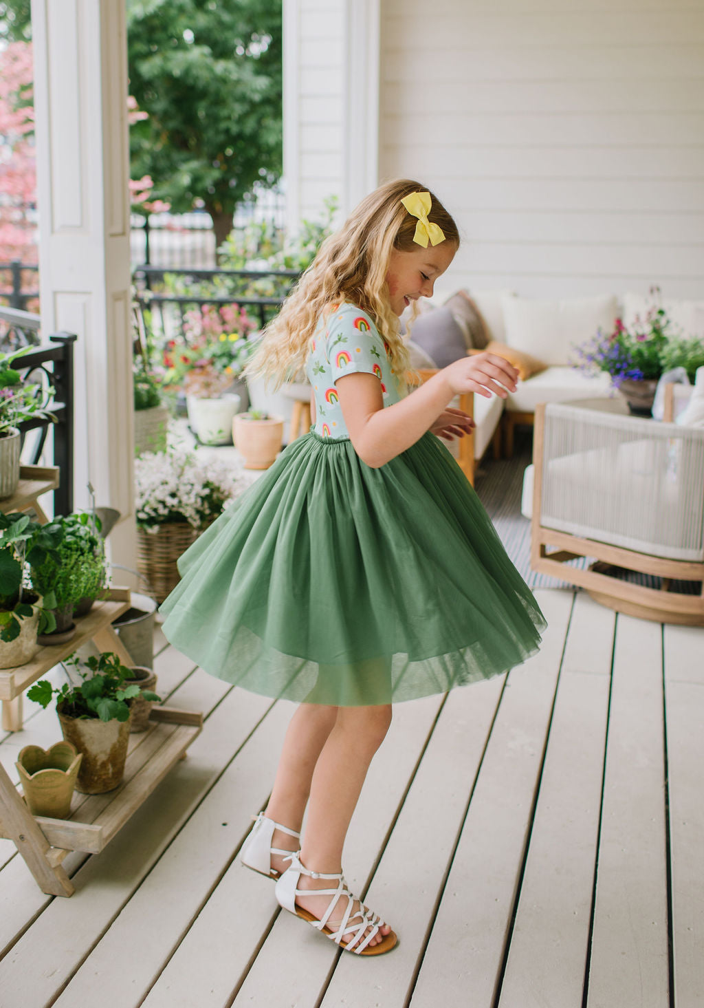 Our Tutu Dress is perfect for little ones who love to twirl and sparkle! Featuring a classic short sleeve printed bodice made from our signature extra soft cotton-spandex blend, this dress is as comfortable as it is magical. The scoop back adds a sweet touch, while the four layers of soft, full tulle create a dreamy, voluminous skirt made for twirling.