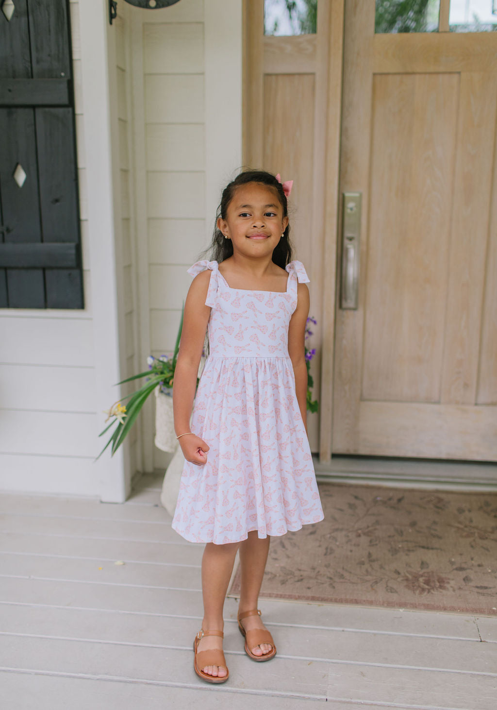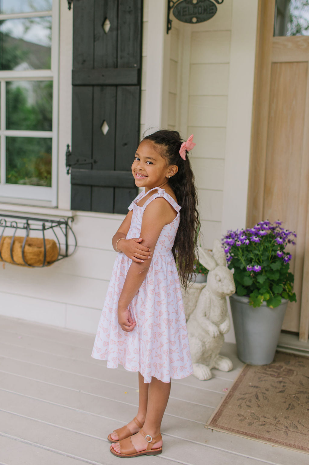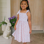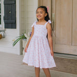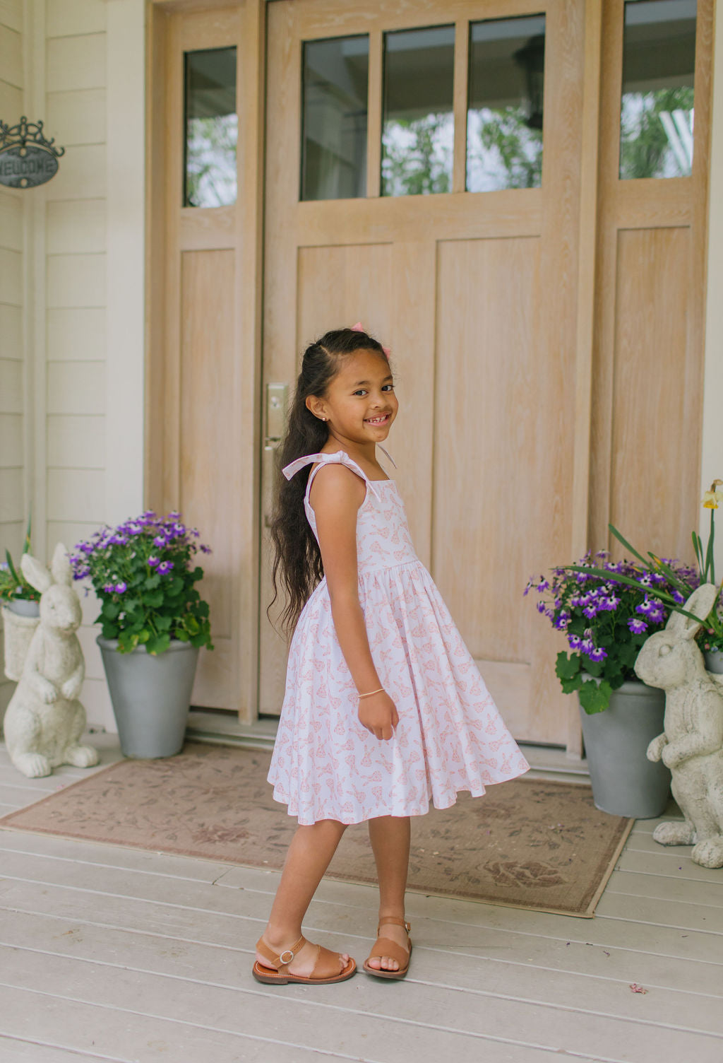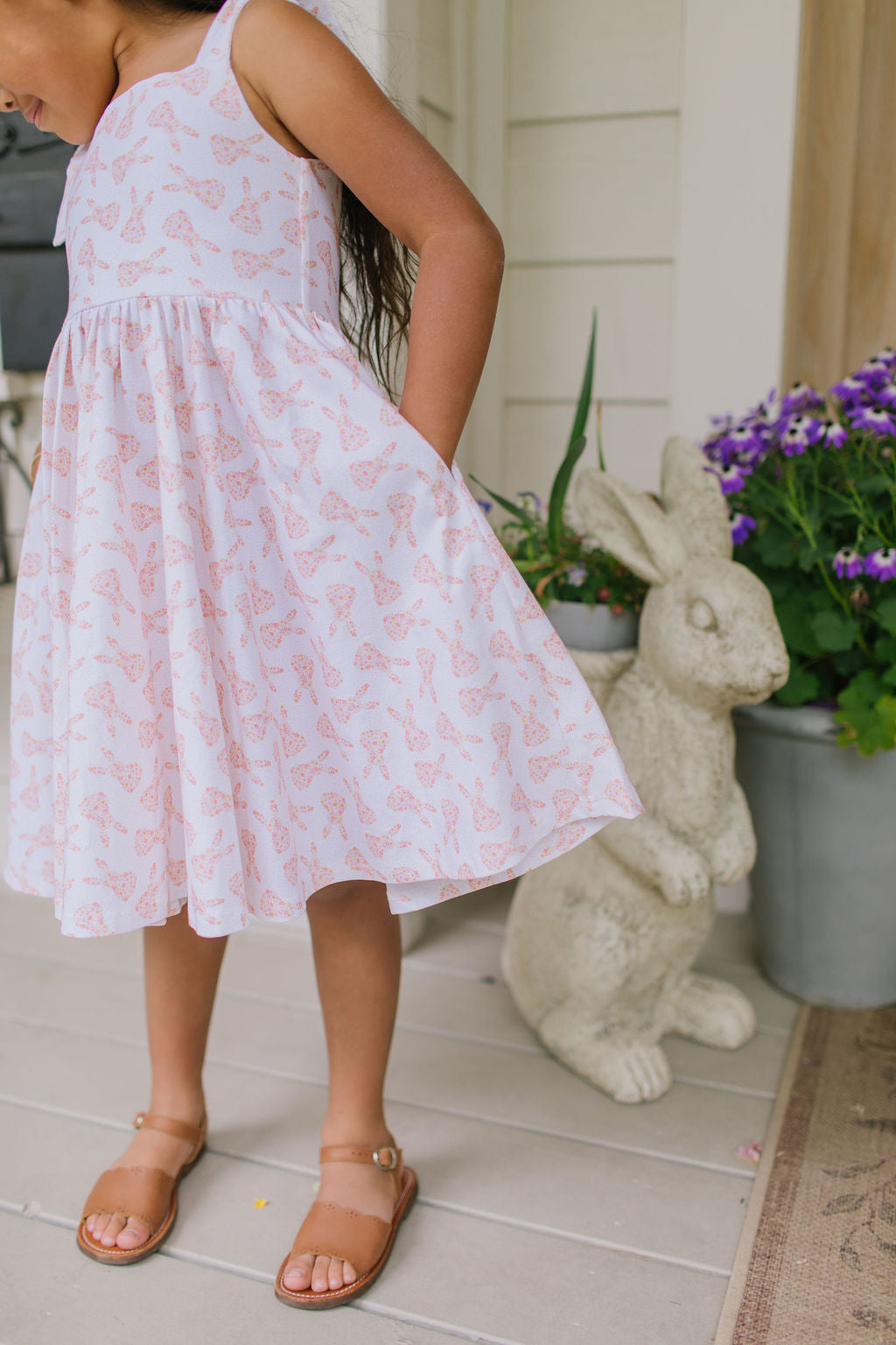 The Valerie Dress is a charming, warm-weather favorite featuring a square neckline and knotted tie straps for a playful yet classic look. Designed with a lined bodice, hidden inseam pockets, and a full circle skirt, it's made for twirling through sunny days in comfort and style.